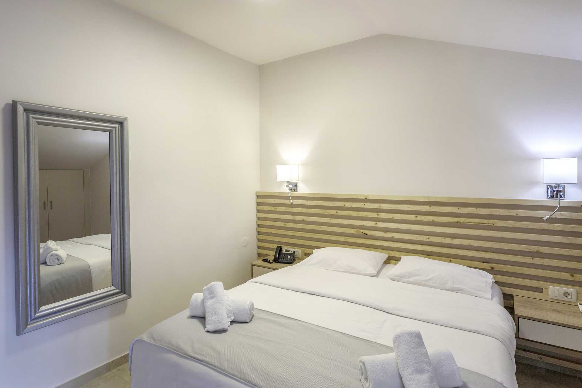 Kahden hengen huoneita, jotka sijaitsevat päärakennuksessa. Parivuode tai erilliset vuoteet. Jääkaappi. Tv kansainvälisillä kanavilla. Maksuton wifi, ilmastointi ja tallelokero. Hiustenkuivain. Suihku ja wc. Parveke. Siivous 7 krt/viikko.