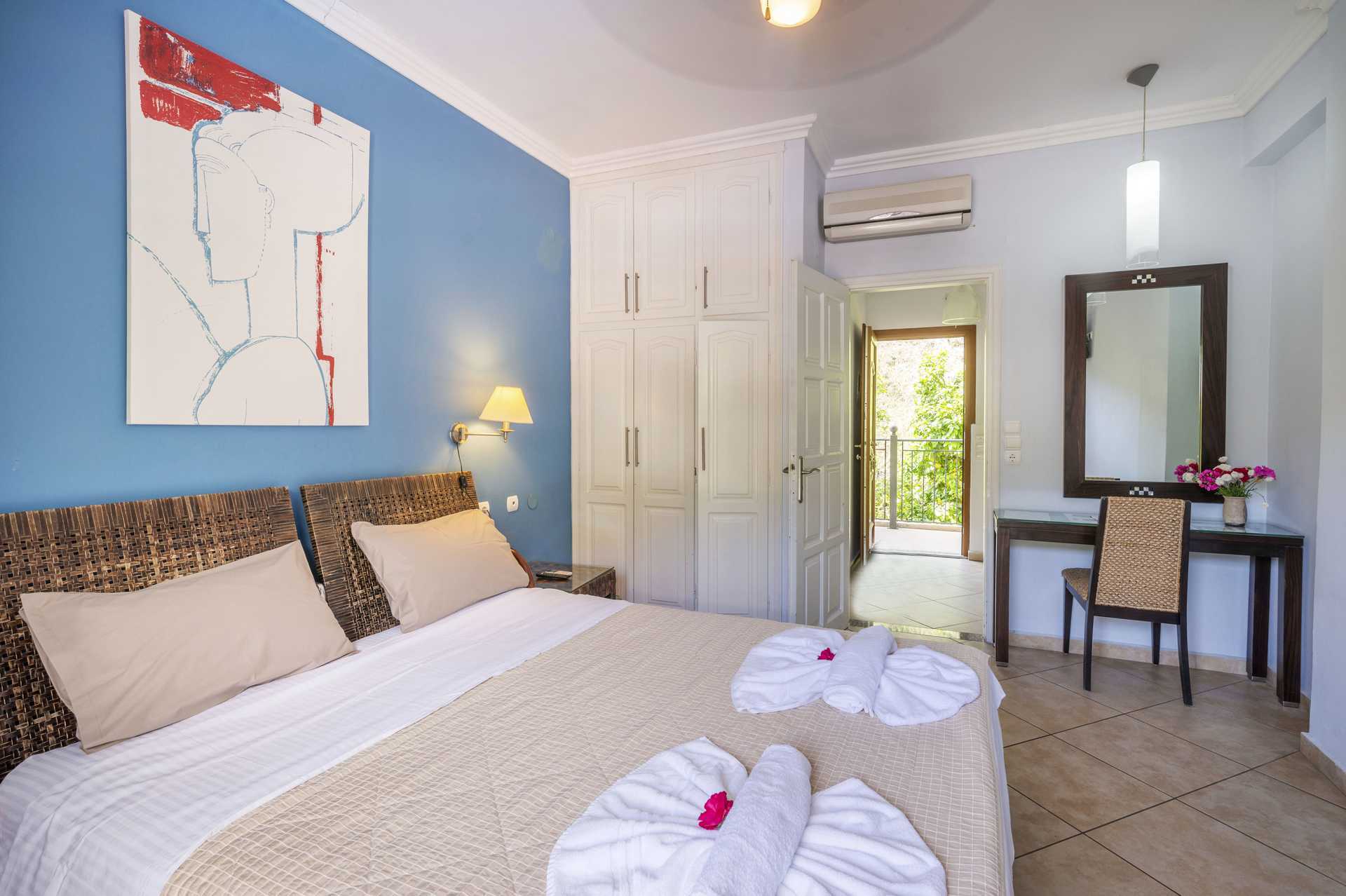 Yksinkertaisia yksiöitä, joissa parivuode tai kaksi erillistä vuodetta. Mahdollisuus lisävuoteeseen kokoontaitettavasta vuoteesta. Keittolevyt, jääkaappi, kahvinkeitin, vedenkeitin ja yksinkertainen keittovarustus. Uuni tai mikro. Ruokailutila parvekkeella. Tv kansainvälisillä kanavilla. Maksuton wifi, ilmastointi ja tallelokero. Kattotuuletin. Hiustenkuivain. Pieni kylpyhuone, jossa suihku ja wc. Parveke allasnäkymällä. Siivous 6 krt/viikko.