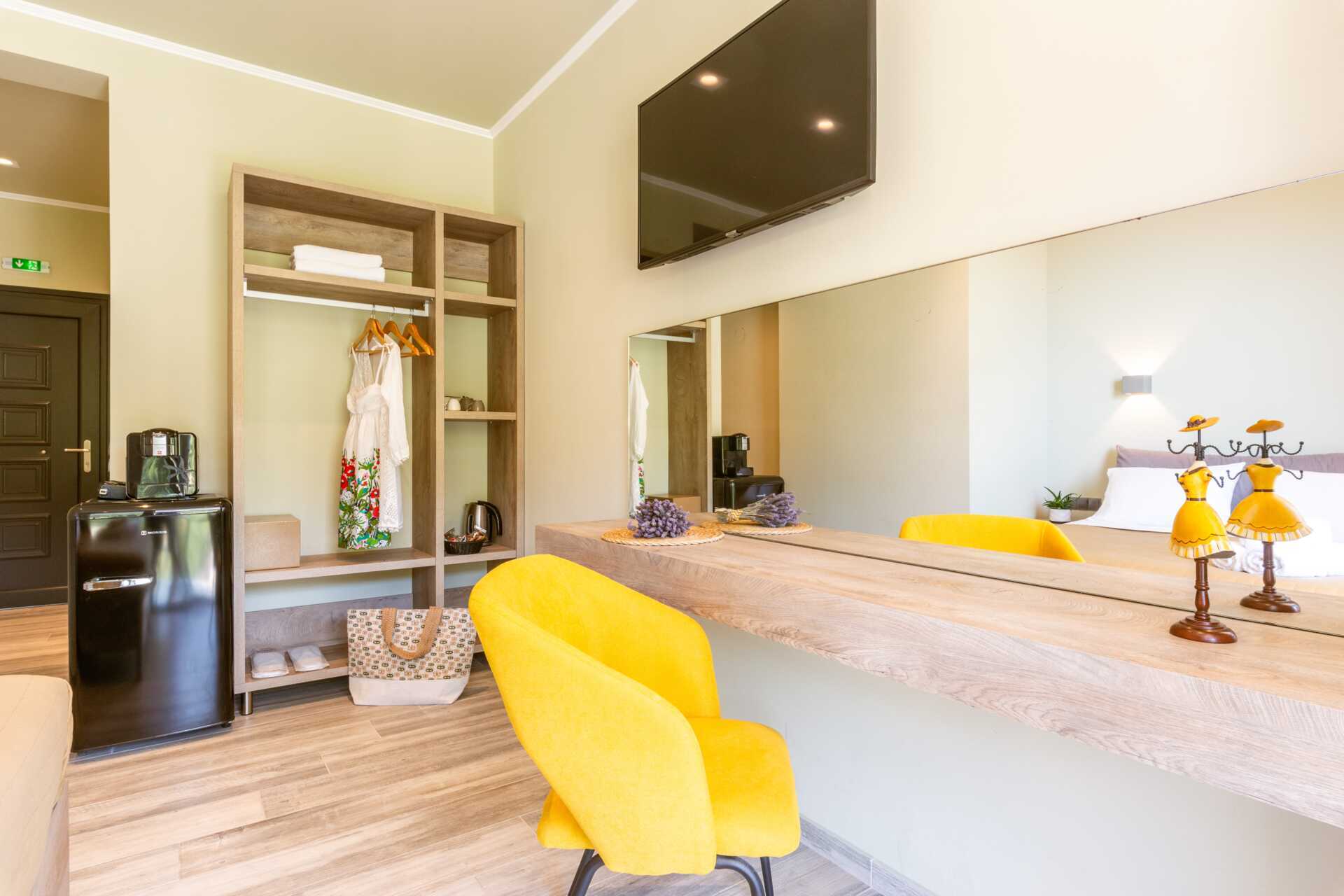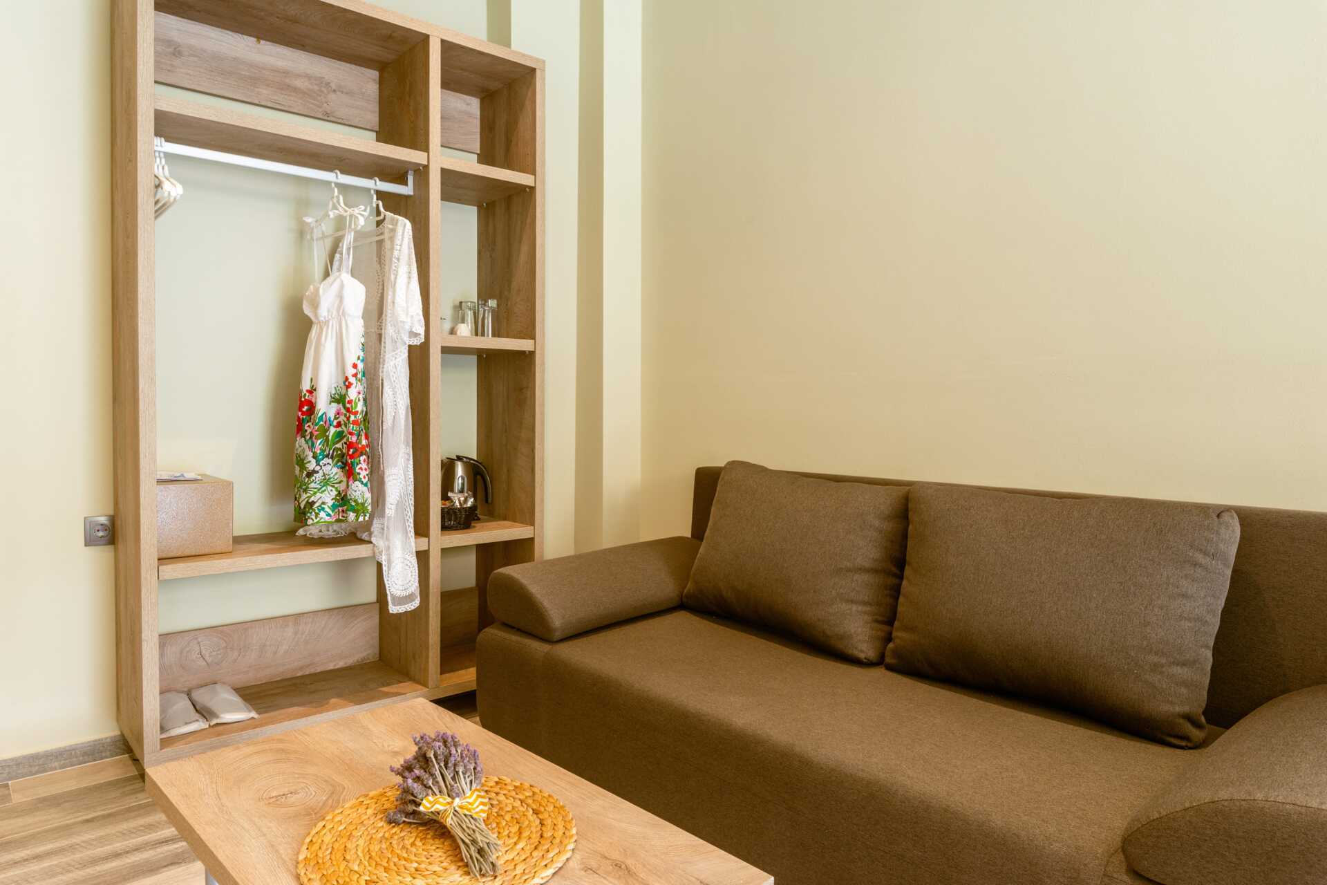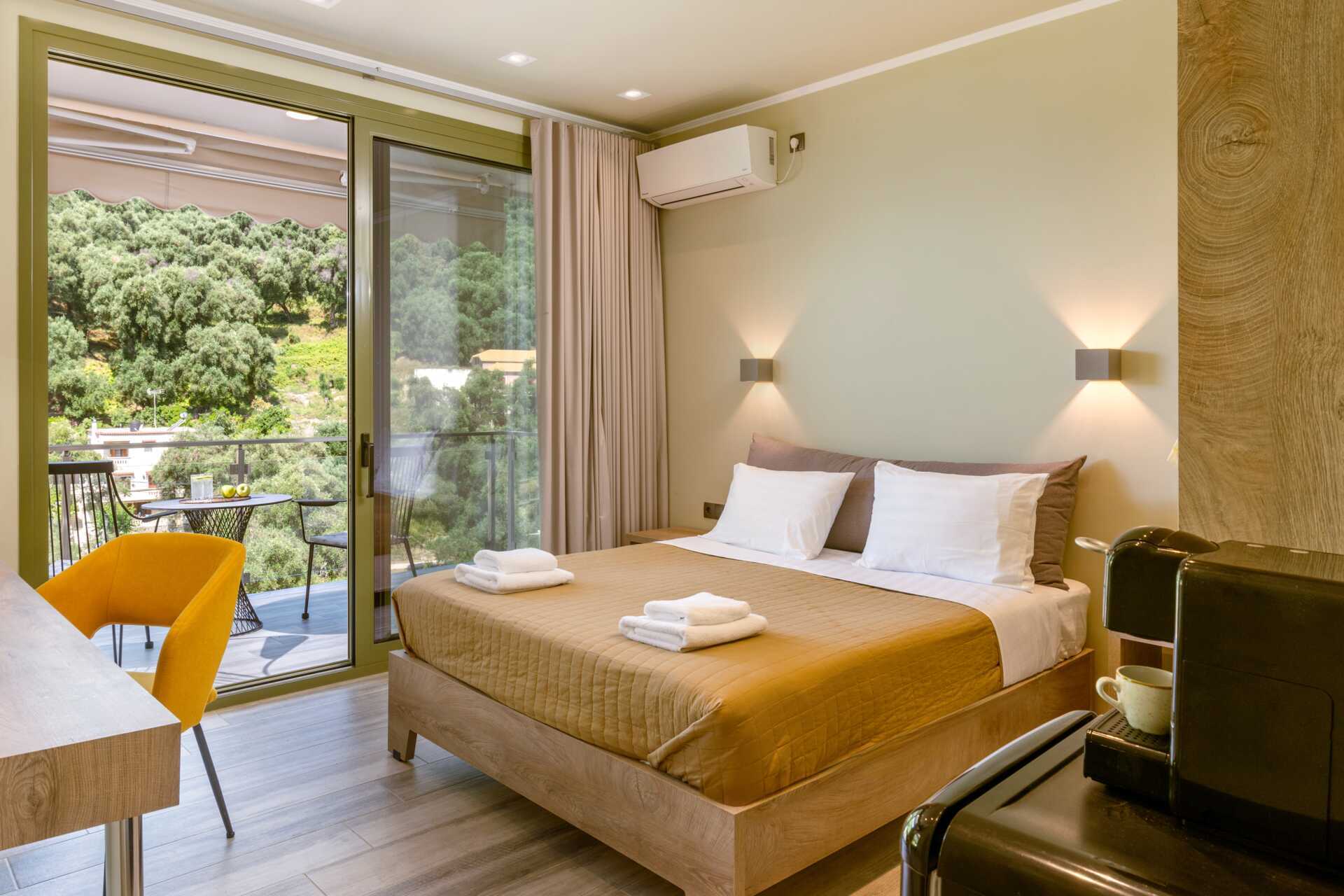 Kahden hengen huoneita parvekkeella, joista osasta rajoitettu merinäköala. Parivuode. Jääkaappi. Vedenkeitin. Kahvinkeitin. Maksuton wifi, ilmastointi ja tallelokero. Tv satelliittikanavilla. Hiustenkuivain. Amme/suihku ja wc. Siivous 7 krt/viikko. Alle 2-vuotiaat lapset lasketaan huoneen enimmäishenkilömäärään.
