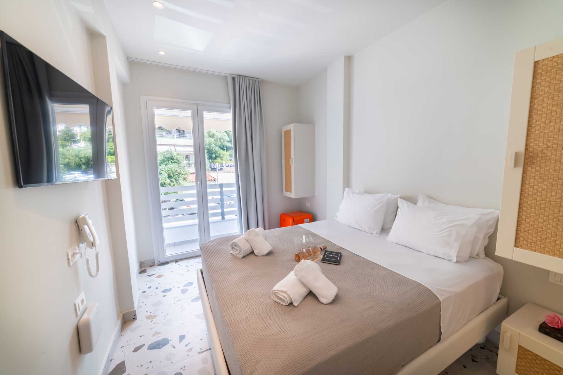 Kahden hengen huone parvekkeella. Parivuode. Maksuton wifi, ilmastointi ja tallelokero. Pieni jääkaappi. Vedenkeitin. Tv kansainvälisillä kanavilla. Hiustenkuivain. Kylpytakit ja tossut. Suihku ja wc. Siivous 7 krt/viikko.