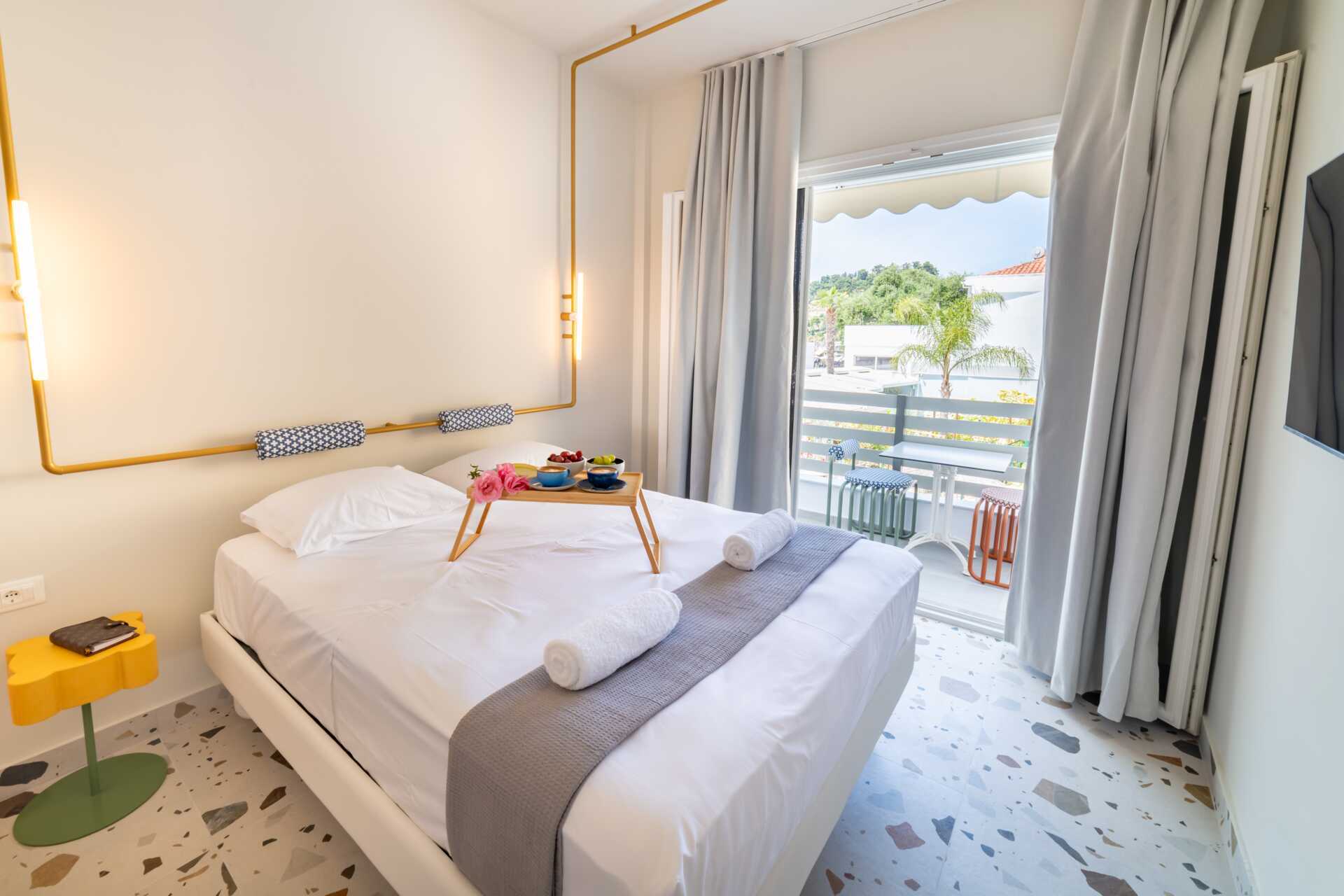 Superior-huone pienellä parvekkeella. Parivuode. Maksuton wifi, ilmastointi ja tallelokero. Pieni jääkaappi. Vedenkeitin. Tv kansainvälisillä kanavilla. Kylpytakit ja tossut. Hiustenkuivain. Suihku ja wc. Siivous 7 krt/viikko.