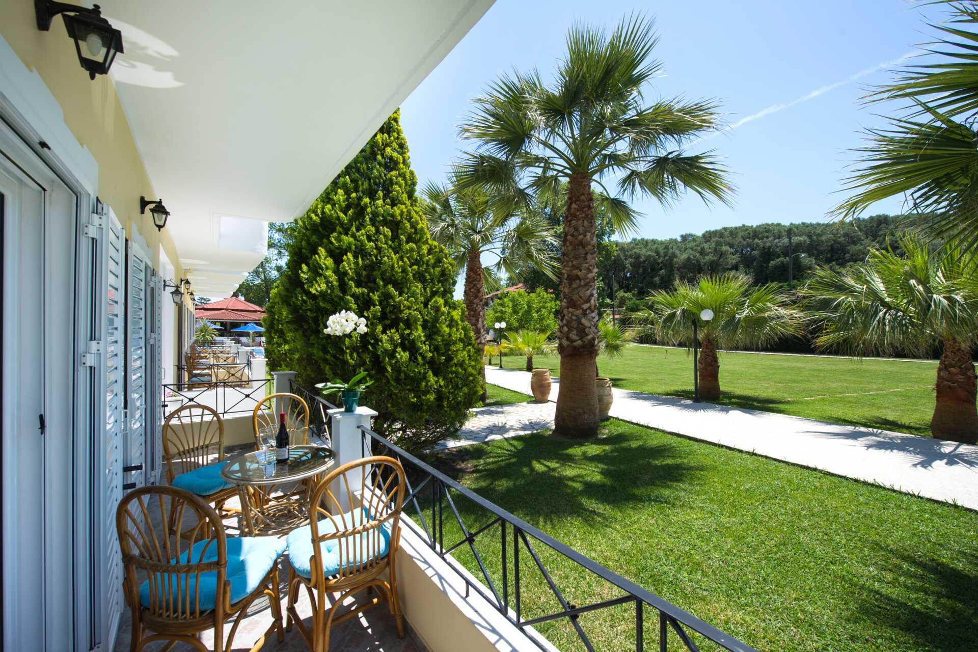 Superior yksiö parvekkeella tai terassilla ja näkymä puutarhaan. Yhdistetty makuuhuone ja minikeittiö. Parivuode tai kaksi yhden hengen sänkyä. Lisävuodemahdollisuus vuodesohvasta. Huomioithan, että huoneisto voi tuntua ahtaalta, jos käytetään lisävuodetta. Minikeittiössä jääkaappi, keittolevyt, kahvinkeitin, vedenkeitin ja yksinkertainen keittiövarustus. Ruokailutila parvekkeella tai terassilla. Maksuton wifi, ilmastointi ja tallelokero. Tv kansainvälisillä kanavilla. Hiustenkuivain. Kylpyhuoneessa kylpyamme tai suihku ja wc. Siivous 7 krt/viikko. Alle 2-vuotiaat lapset lasketaan lisävuoteella majoittuviksi henkilöiksi.