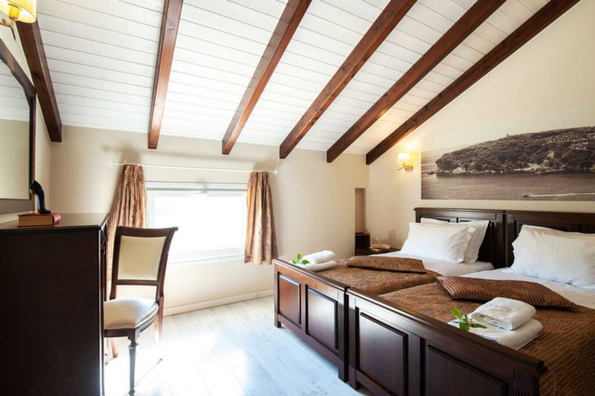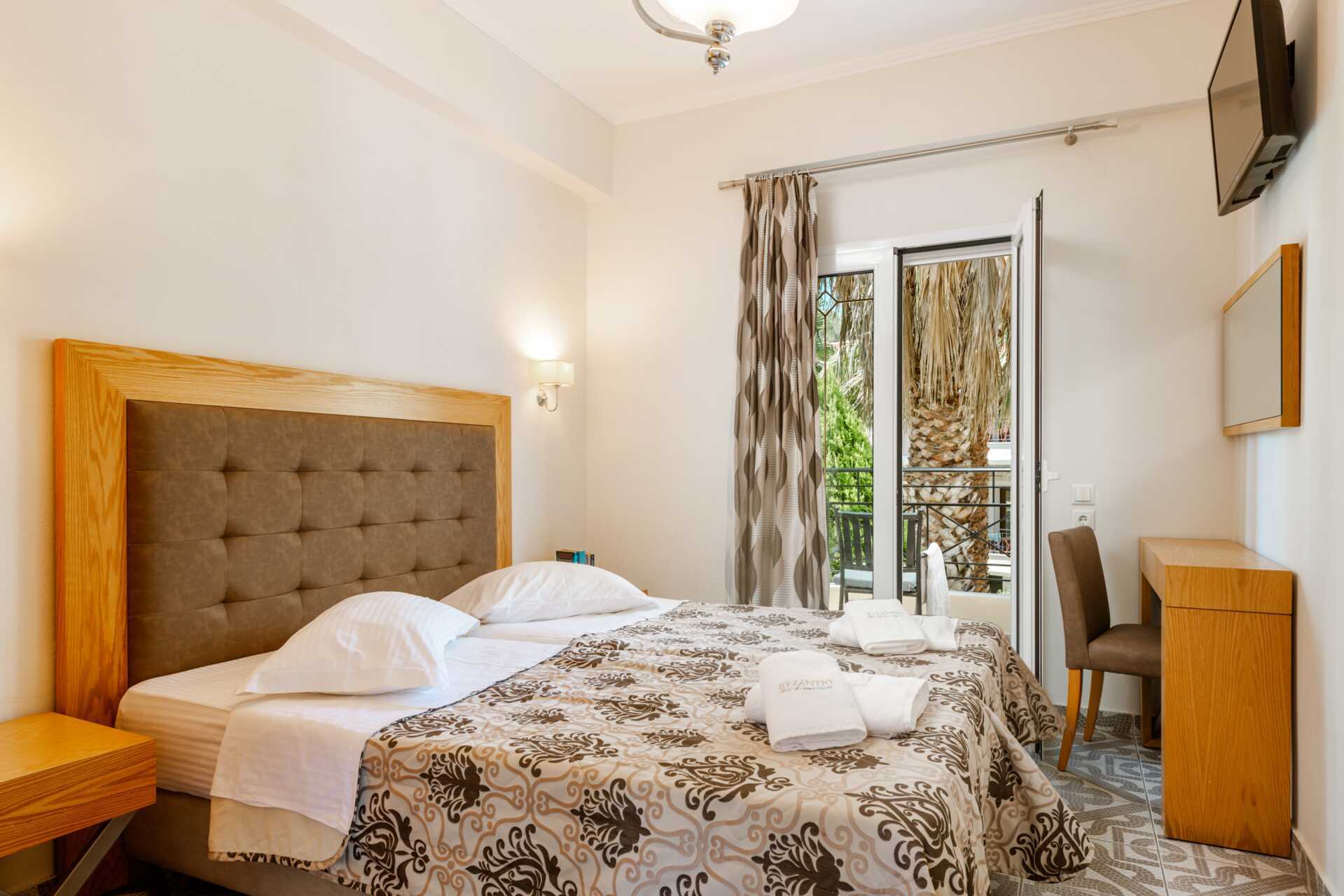 Deluxe-huone parvekkeella. Parivuode tai kaksi yhden hengen sänkyä. Huoneissa vuodesohva kolmelle hengelle. Maksuton wifi, ilmastointi ja tallelokero. Jääkaappi. Vedenkeitin. Espressokeitin, kapselit sisältyvät hintaan. Tv kansainvälisillä kanavilla. Kylpytakit ja tossut. Hiustenkuivain. Kylpyhuoneessa suihku ja wc. Siivous 7 krt/viikko. Alle 2-vuotiaat lapset lasketaan lisävuoteella majoittuviksi henkilöiksi.