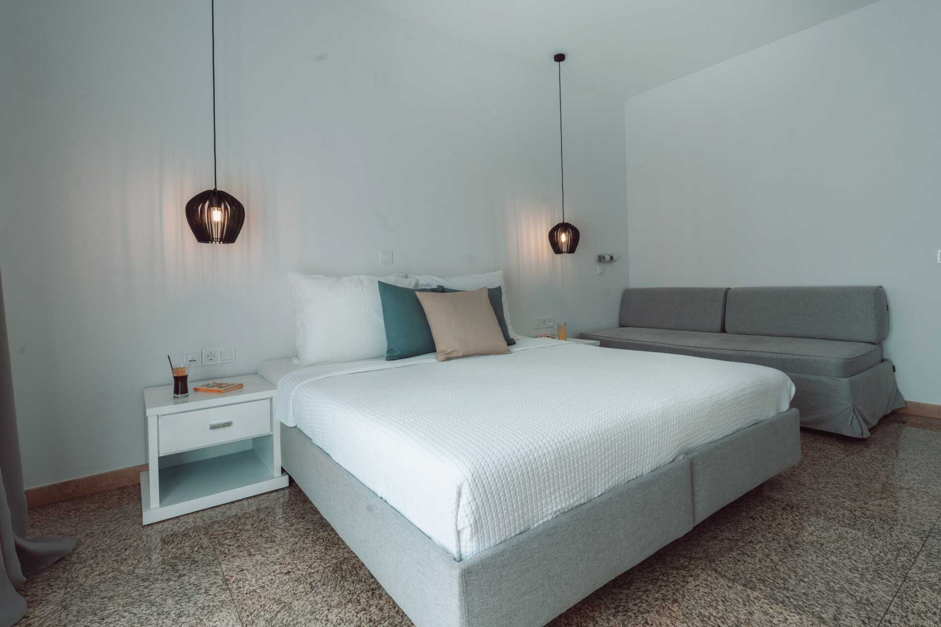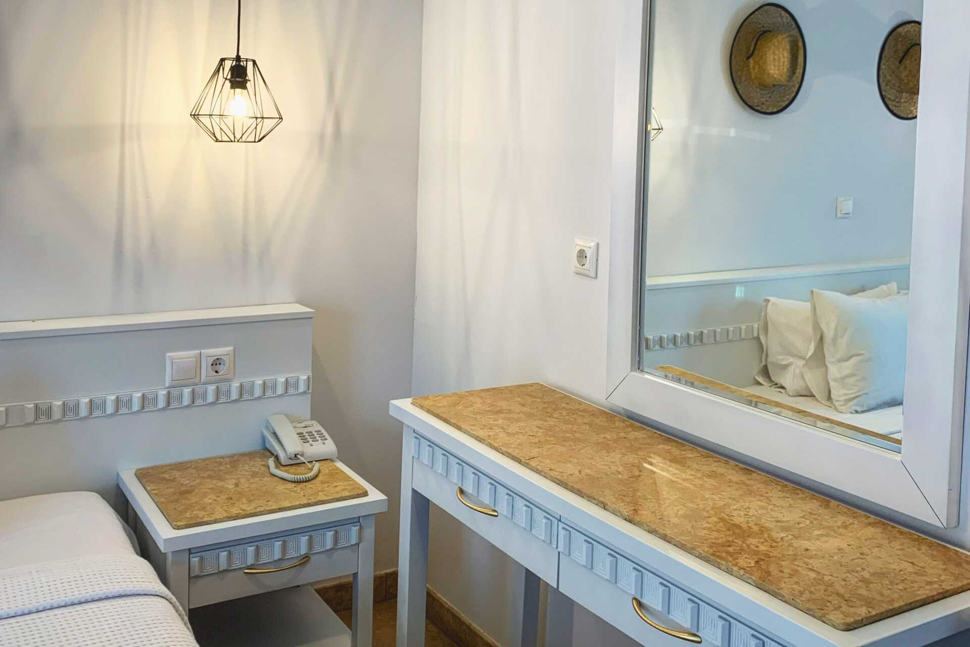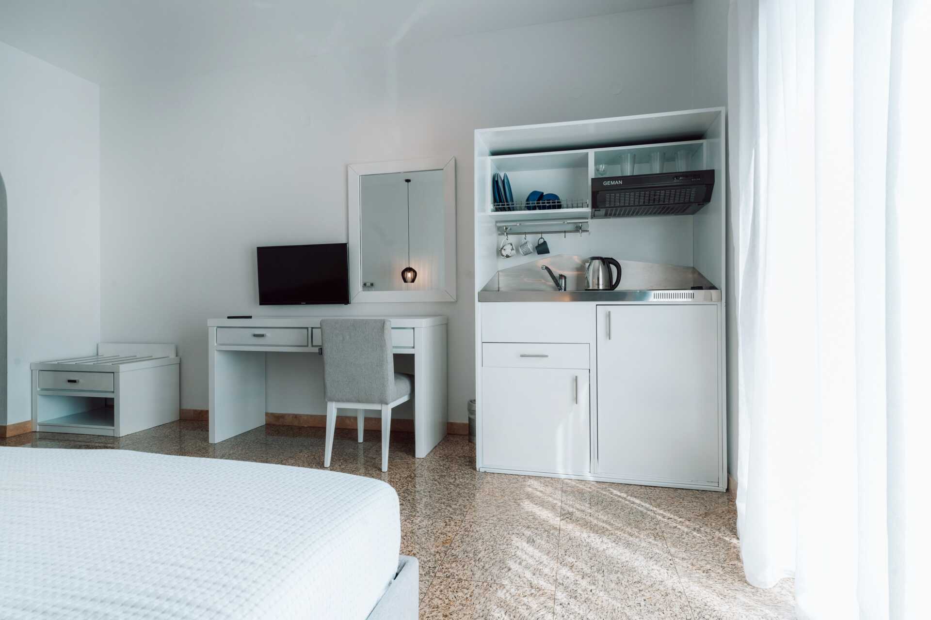 Yksiö terassilla, maaterassi tai parveke. Yhdistetty makuuhuone ja minikeittiö. Kaksi yhden hengen sänkyä. Minikeittiössä keittolevyt, jääkaappi, vedenkeitin ja yksinkertainen keittiövarustus. Maksuton wifi, tallelokero ja ilmastointi. Tv kansainvälisillä kanavilla. Hiustenkuivain. Kylpyhuoneessa suihku ja wc. Siivous 7 krt/viikko.