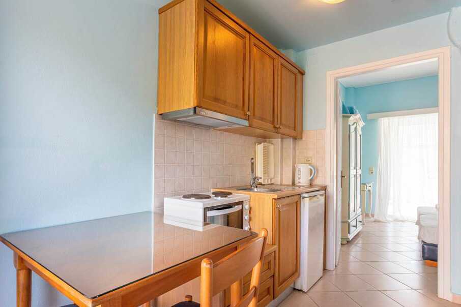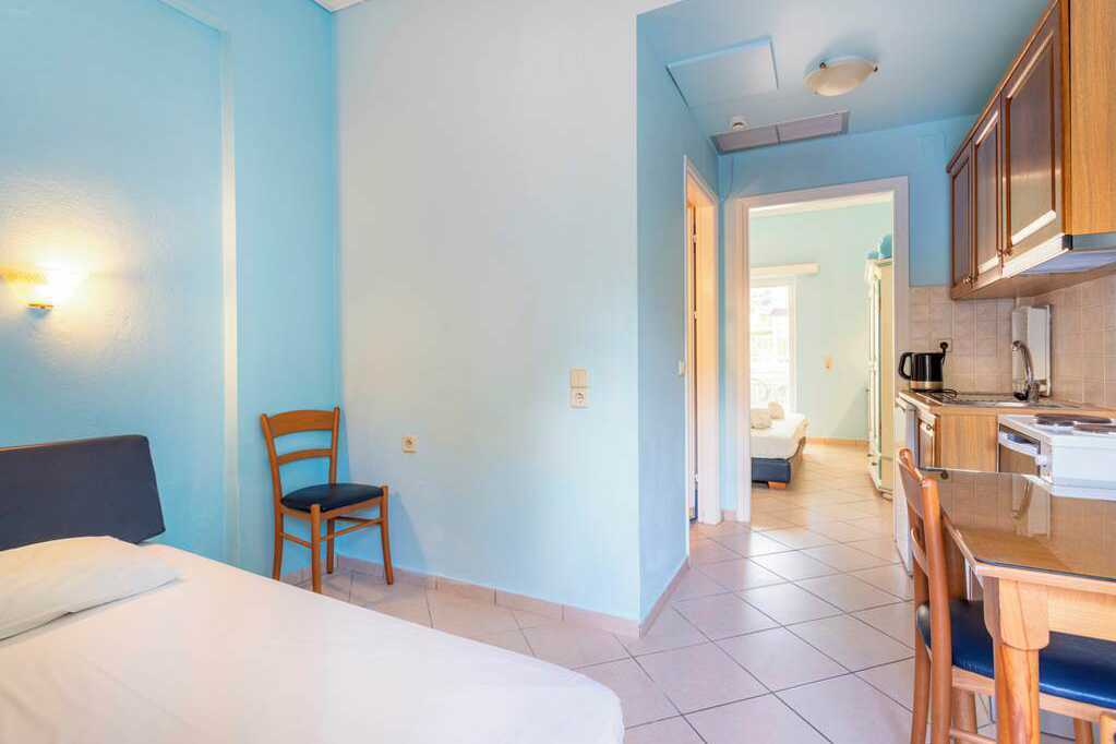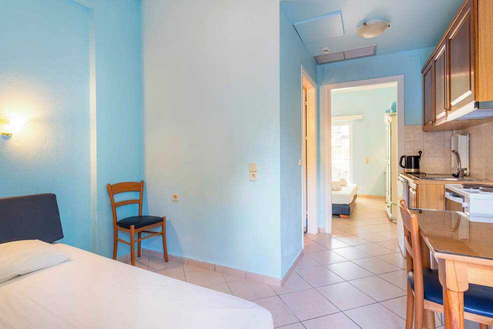 Yksiö, jossa on parveke tai maaterassi. Joiltakin parvekkeilta on näkymät uima-altaalle. Kaksi erillistä sänkyä ja mahdollisuus lisävuoteeseen vuodesohvassa. Minikeittiö, jossa jääkaappi, Keittolevyt, jääkaappi, vedenkeitin, kahvinkeitin ja yksinkertaiset keittiövälineet. Maksuton wifi, ilmastointi ja tallelokero. Tv paikallisilla kanavilla. Hiustenkuivain. Kylpyhuoneessa suihku ja wc. Siivous 6 krt/viikko.