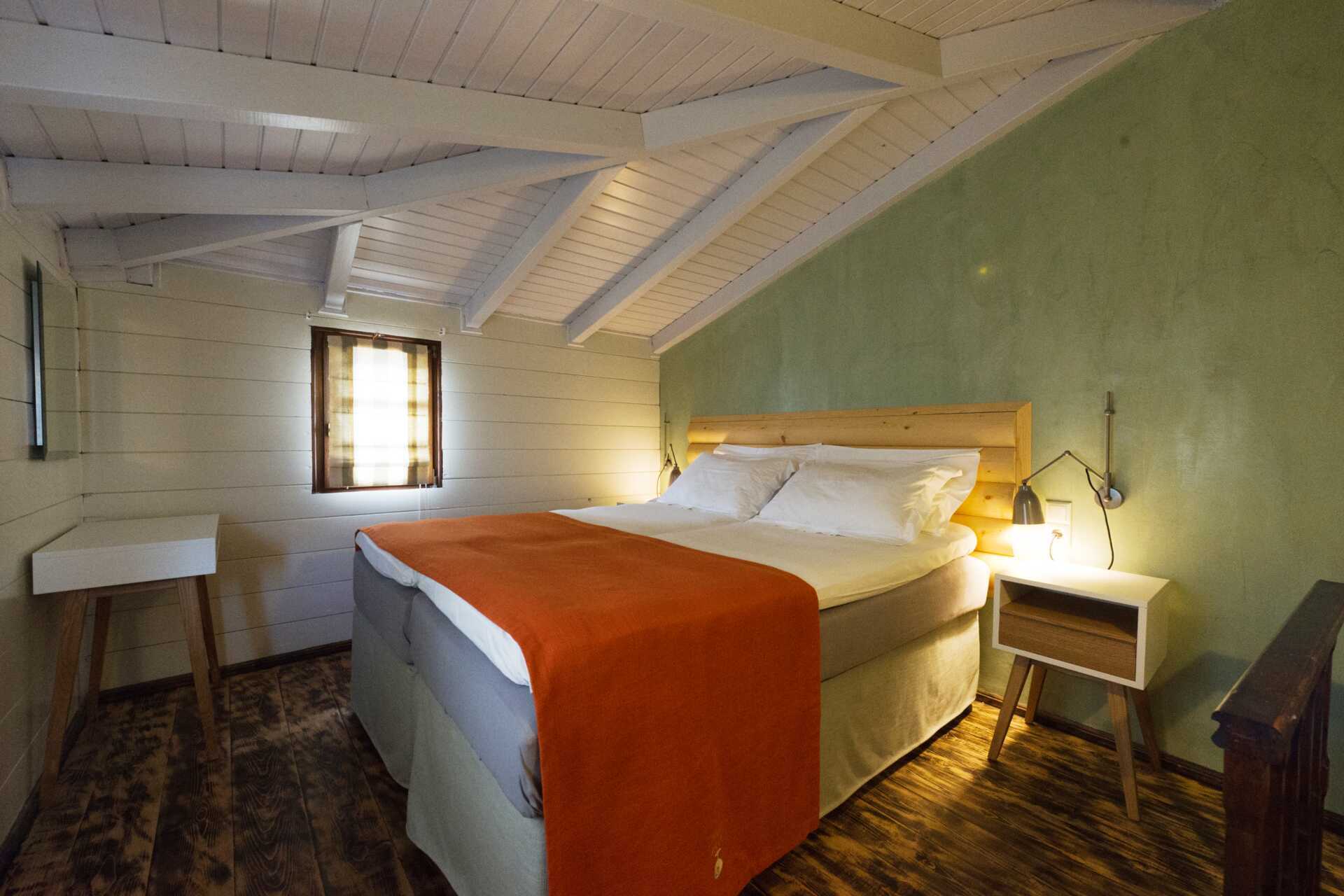 Kaksikerroksinen deluxe-huone parvekkeella. Sisäänkäyntikerroksessa on yhdistetty olohuone/minikeittiö ja portaat ylös parvelle, jossa on kaksi erillistä vuodetta. Parvelle johtavat portaat ovat melko jyrkät. Minikeittiössä keittolevyt, jääkaappi, kahvinkeitin ja yksinkertainen keittiövarustus. Maksuton wifi, ilmastointi ja tallelokero. Tv kansainvälisillä kanavilla. Hiustenkuivain. Suihku ja wc. Siivous 6 krt/viikko.