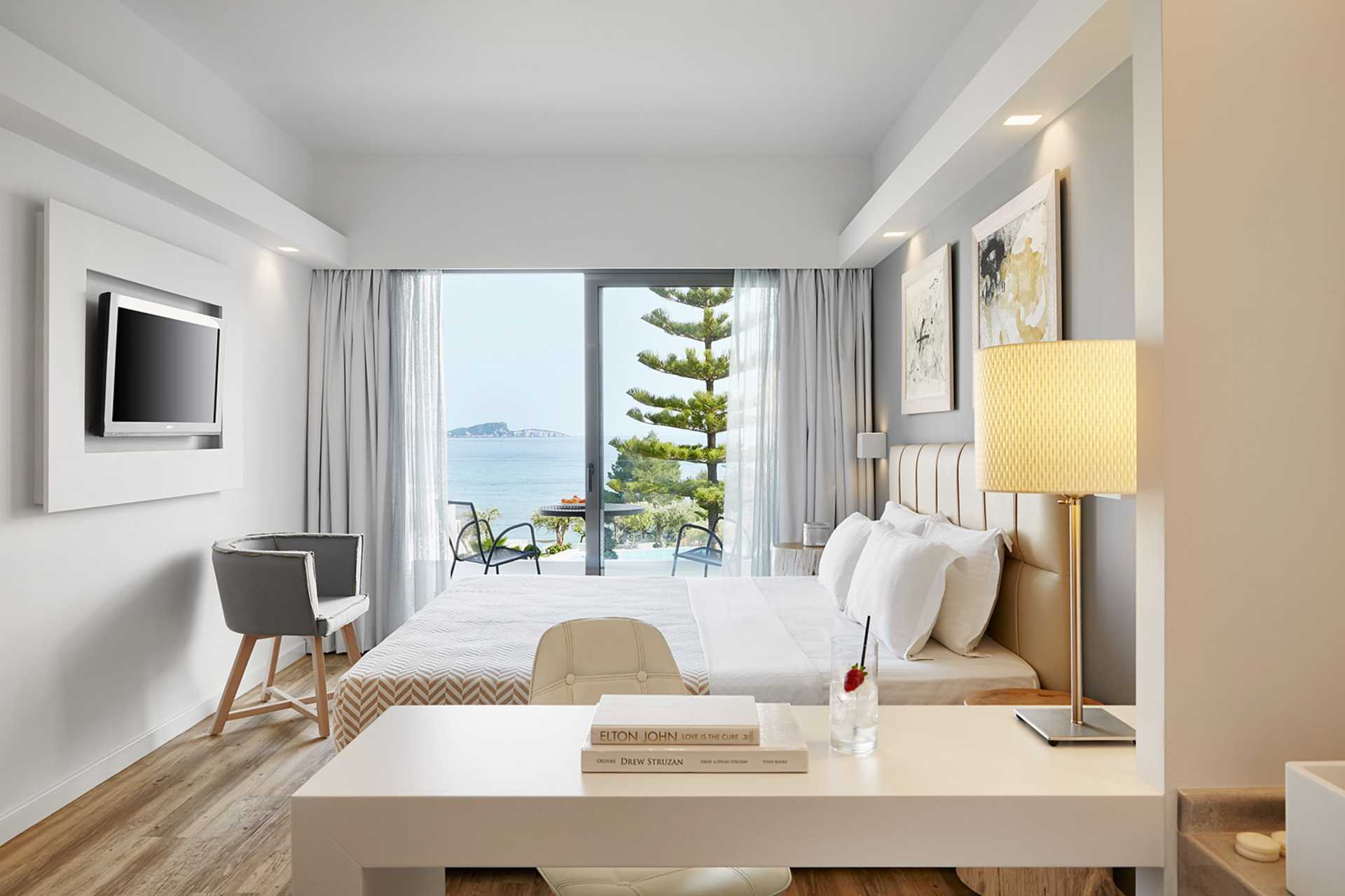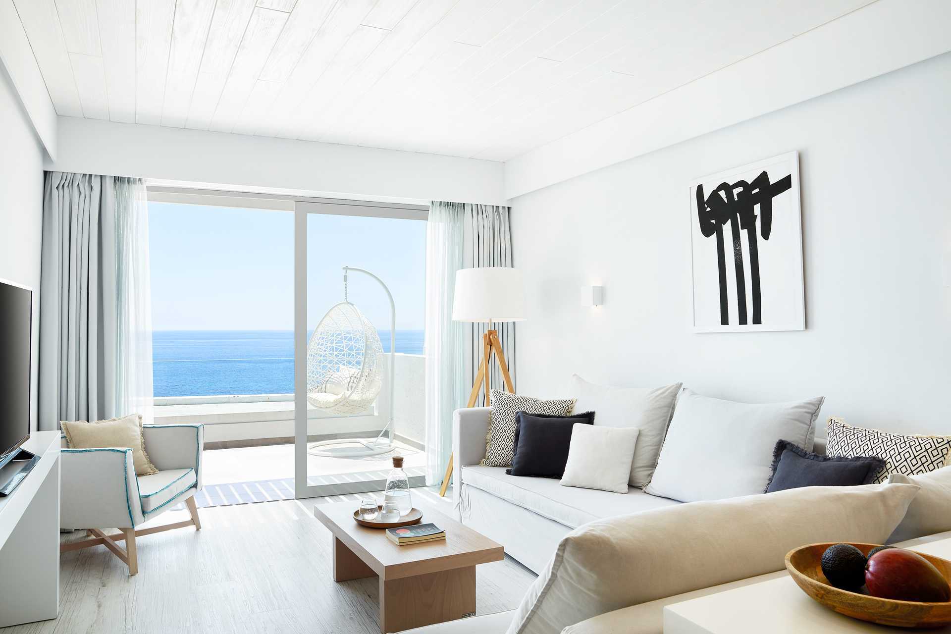 Superior-juniorsviitti parvekkeella tai terassilla ja merinäköalalla. Huoneet sijaitsevat päärakennuksessa uima-altaan vieressä ja niissä on kaksi osaa: makuuhuone ja olohuone, joka voidaan erottaa liukuovella. Parivuode tai kaksi yhden hengen sänkyä. Lisävuodemahdollisuus vuodesohvasta. Maksuton wifi, ilmastointi ja tallelokero. Jääkaappi. Tv kansainvälisillä kanavilla. Tohvelit. Hiustenkuivain. Suihku ja wc. Siivous 7 krt/viikko.