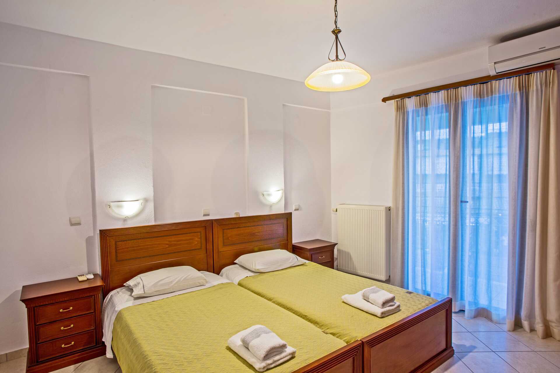 Kahden hengen huone parvekkeella. Parivuode tai kaksi yhden hengen sänkyä. Lisävuoteen mahdollisuus lapsille joissakin huoneissa. Huomioithan, että lisävuodetta käytettäessä huoneesta tulee ahdas. Maksuton wifi, ilmastointi ja tallelokero. Jääkaappi. Tv kansainvälisillä kanavilla. Hiustenkuivain. Suihku ja wc. Siivous 7 krt/viikko.