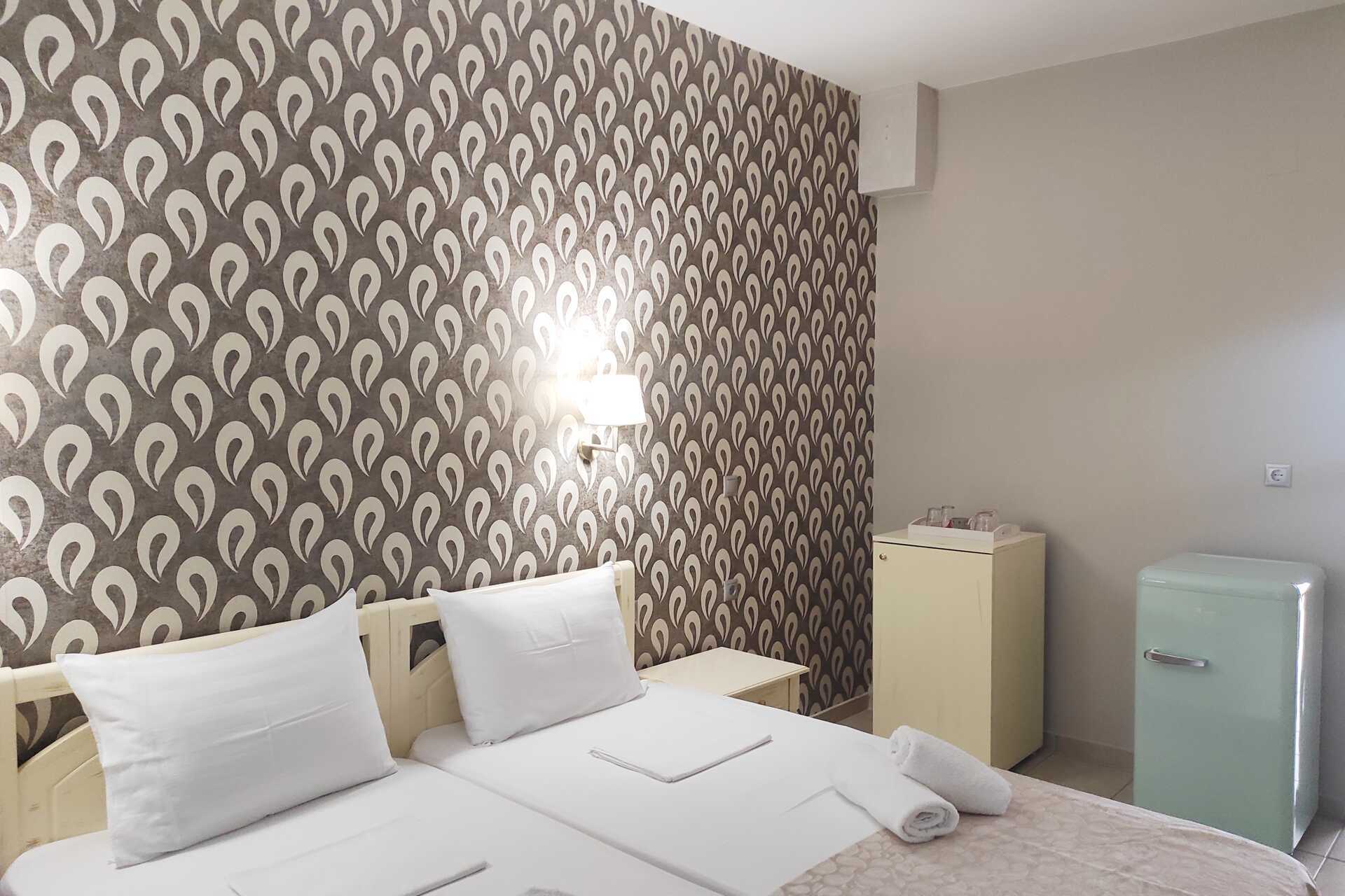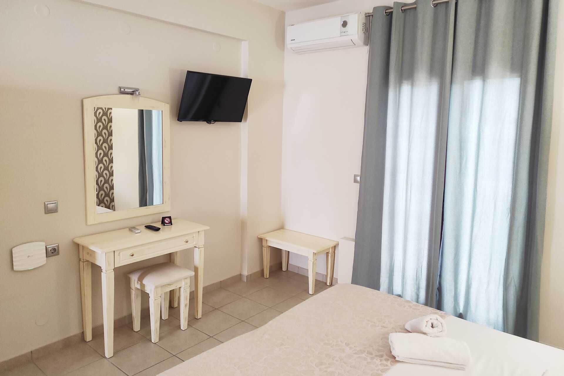 Parvekkeellinen yksiö. Makuuhuone yhdistetty minikeittiöön. Parivuode. Minikeittiössä keittolevyt, uuni, jääkaappi, kahvinkeitin, vedenkeitin ja yksinkertainen keittiövarustus. Maksuton wifi, ilmastointi ja tallelokero. Tv kansainvälisillä kanavilla. Hiustenkuivain. Kylpyhuoneessa suihku ja wc. Siivous 6 krt/viikko.