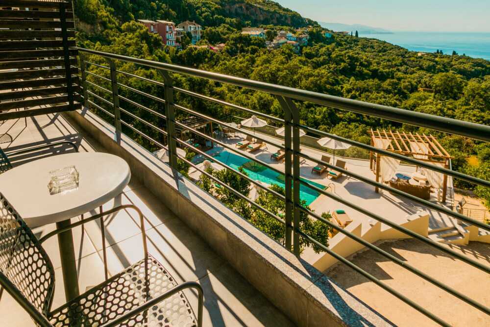Deluxe-huone parvekkeella, osassa merinäköala. Parivuode. Wifi, ilmastointi ja tallelokero sisältyvät hintaan. Jääkaappi. Tv kansainvälisillä kanavilla. Tohvelit. Hiustenkuivaaja. Suihku ja wc. Siivous 6 krt/viikko.