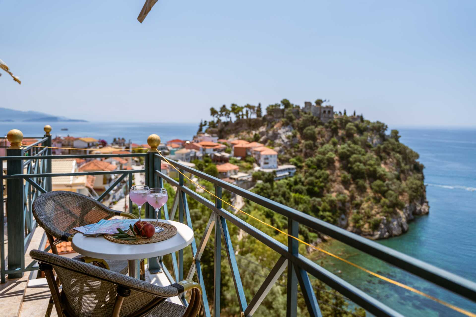 Sviittejä, joissa on parveke merinäköalalla. Parivuode tai kaksi yhden hengen vuodetta. Maksuton wifi ja ilmastointi. Tallelokero lisämaksusta. Jääkaappi. Tv kansainvälisillä kanavilla. Hiustenkuivain. Suihku ja wc. Siivous 7 krt/viikko.
