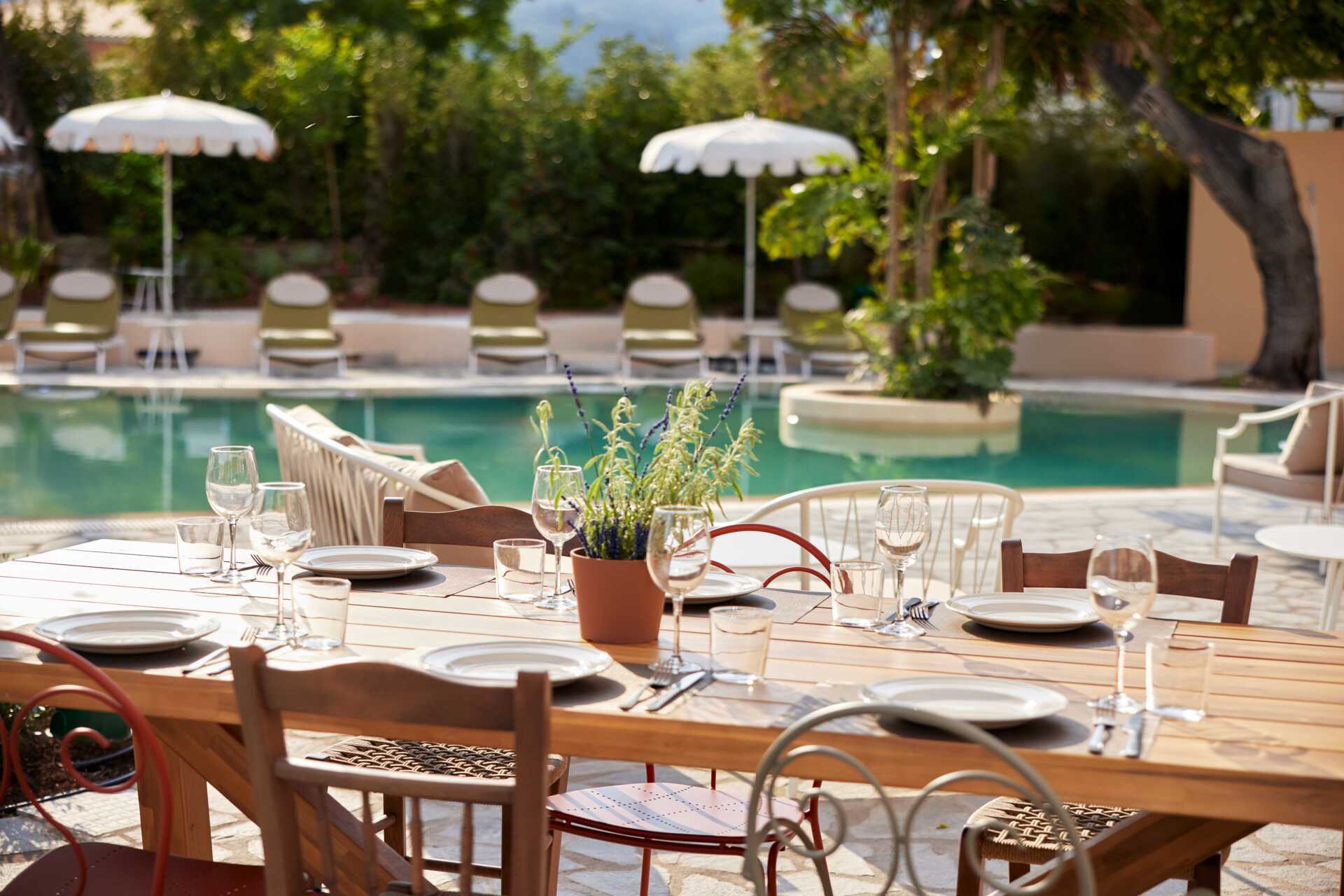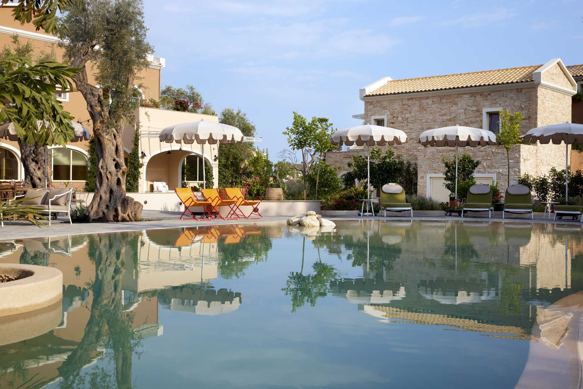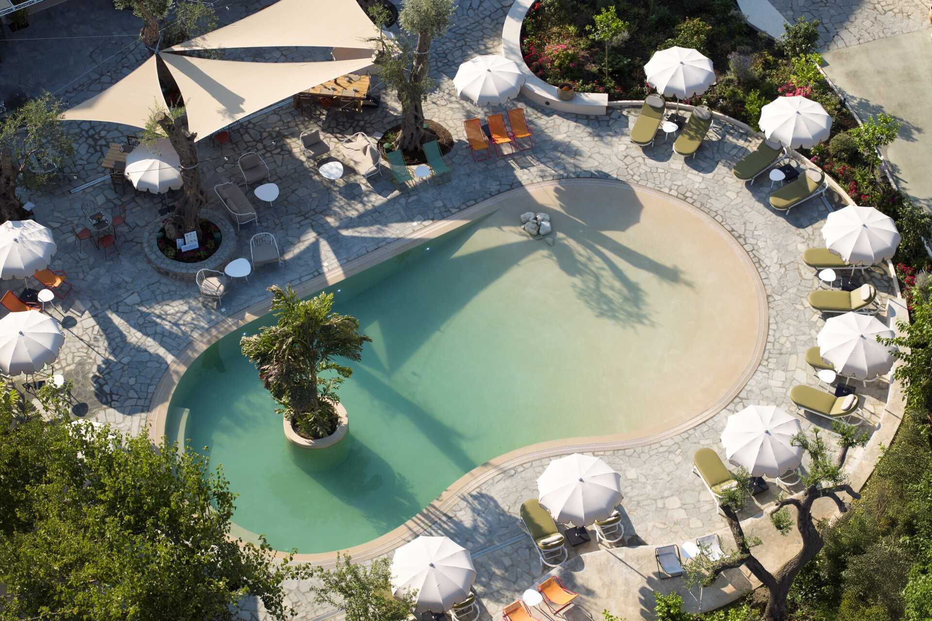 Upea puutarha ja ihania rauhallisia allasalueita. Pargan paras ranta ja omat tuolit plussaa.