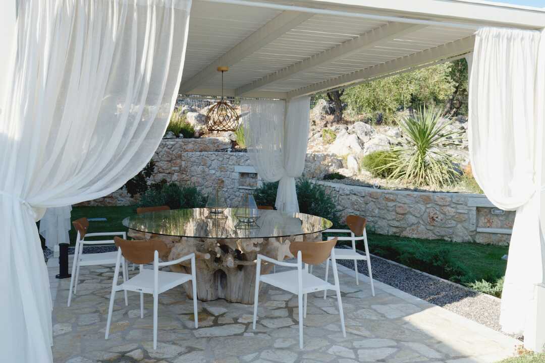 Suuri puutarha, jossa infinity-allas ja terassilla on aurinkotuoleja sekä tuoleja ja pöytiä, jotka voidaan suojata verhoilla miellyttävää varjoa varten. Puutarhassa on myös grillipaikka, mukavat aurinkovuoteet ja erillinen ruokailutila, joka voidaan myös suojata verhoilla. Ulkosuihku. Allaspyyhkeet sisältyvät hintaan.