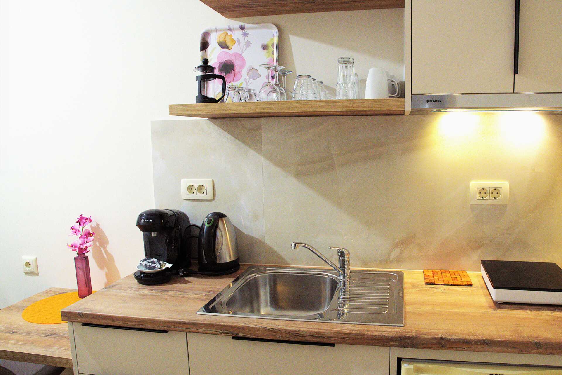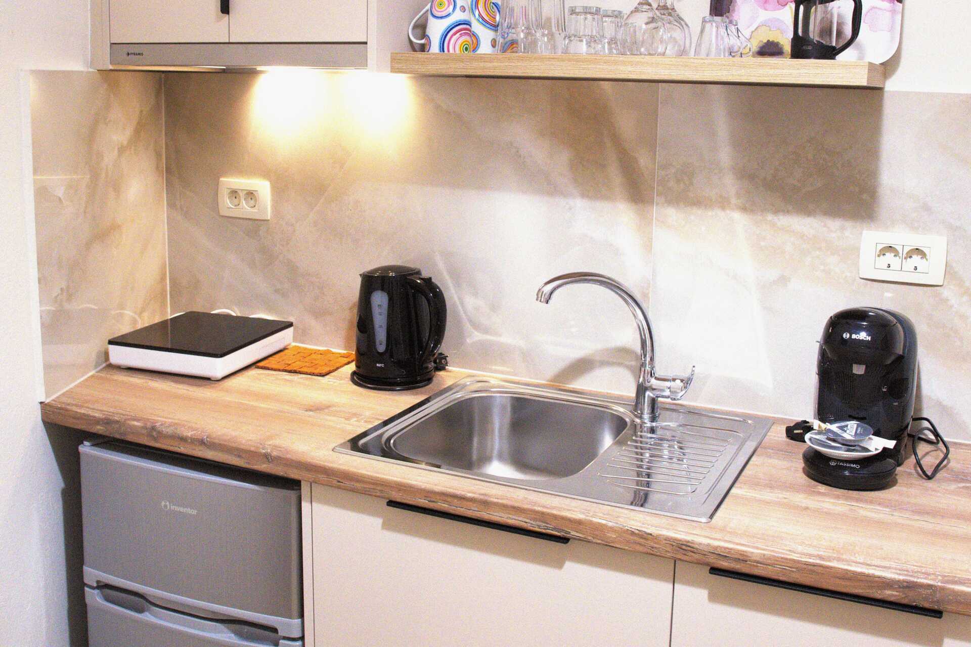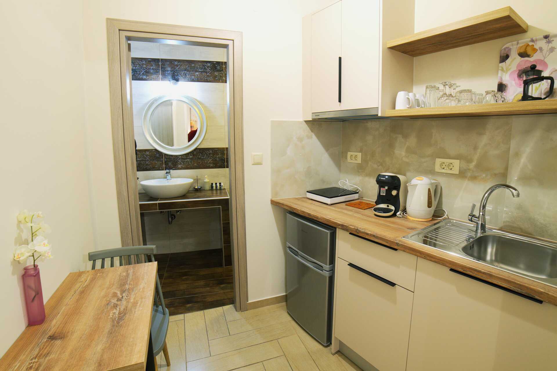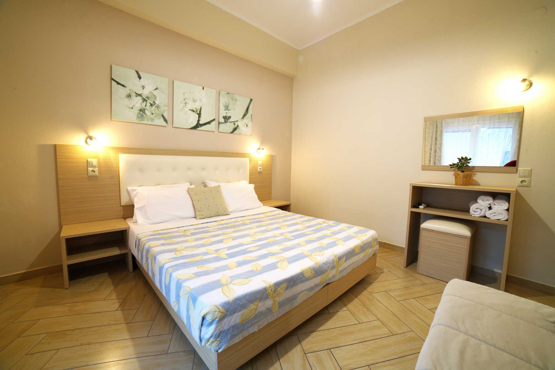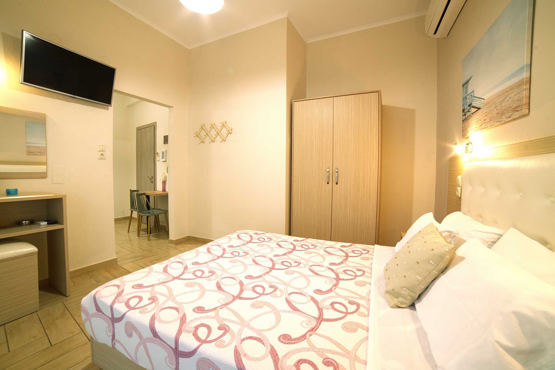 Yksiö parvekkeella. Yhdistetty makuuhuone ja minikeittiö. Parivuode. Minikeittiö, jossa keittolevyt, jääkaappi, vedenkeitin, kahvinkeitin ja yksinkertainen keittiövarustus. Maksuton wifi, ilmastointi ja tallelokero. Hiustenkuivain. Suihku ja wc. Siivous 5 krt/viikko.