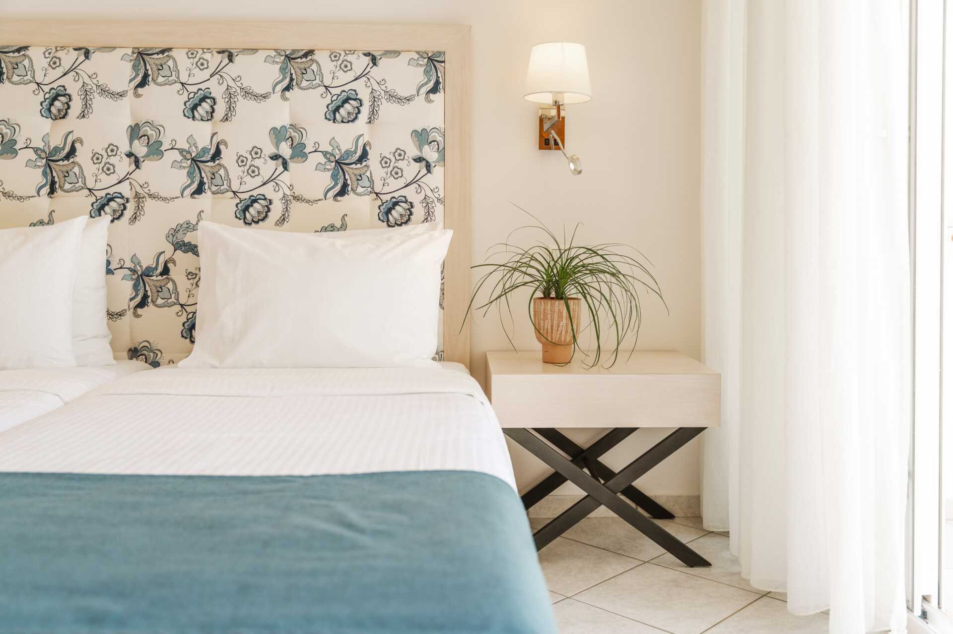Kahden hengen huoneessa on parveke näköalalla puutarhaan, vuorille tai kaupunkiin. Parivuode tai kaksi yhden hengen sänkyä. Maksuton wifi ja ilmastointi. Tallelokero lisämaksusta. Jääkaappi. Vedenkeitin. Tv kansainvälisillä kanavilla. Hiustenkuivain. Suihku ja wc. Joissakin kahden hengen huoneissa on pieni kylpyhuone. Siivous 7 krt/viikko.
