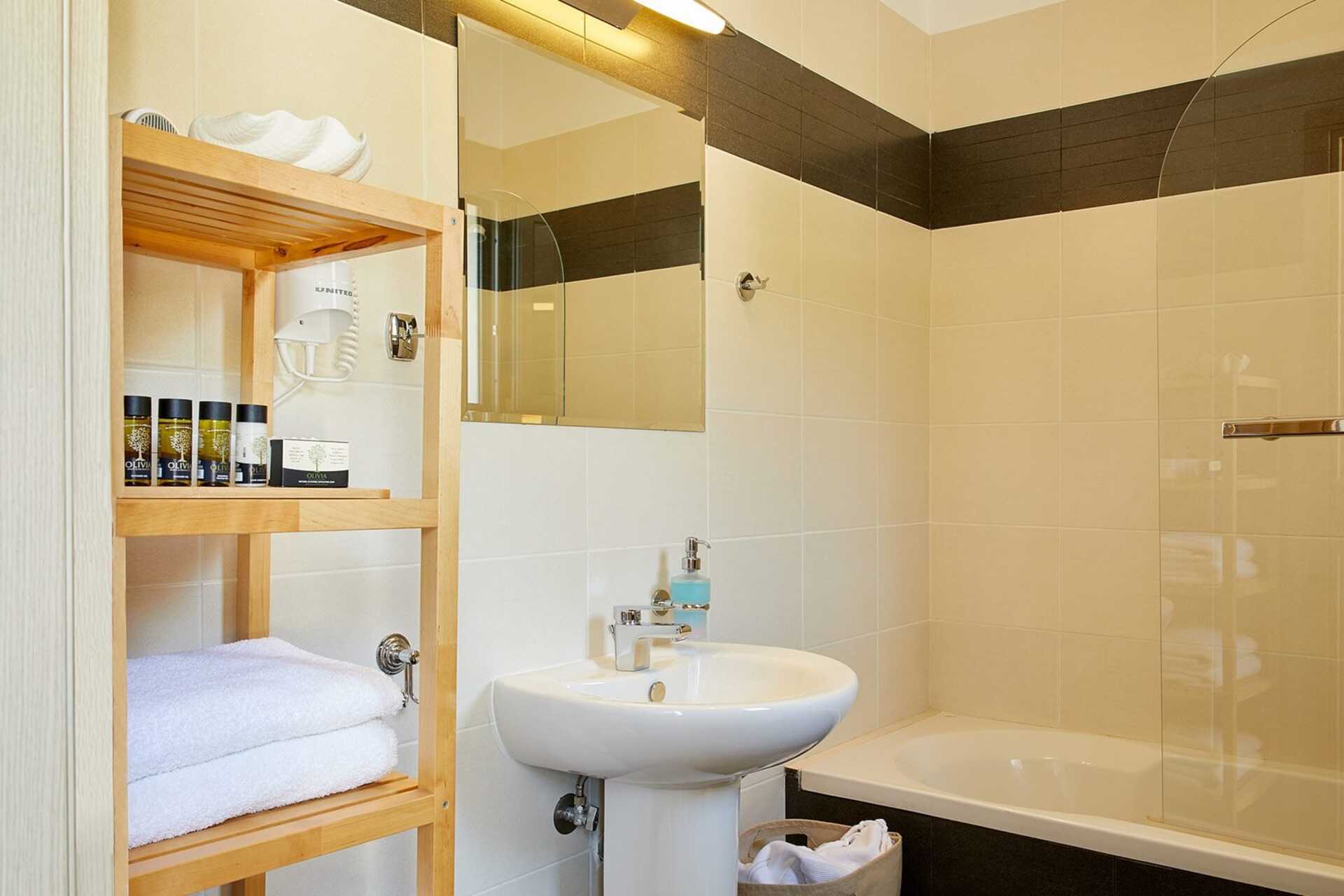 Kaksioita, joissa on parveke. Makuuhuone ja yhdistetty olohuone ja minikeittiö. Parivuode. Lisävuodemahdollisuus vuodesohvasta. Maksuton wifi, ilmastointi ja tallelokero. Minikeittiö, jossa on jääkaappi, keittolevyt, vedenkeitin, Nespresso-kahvinkeitin ja yksinkertainen keittiövarustus. Tv kansainvälisillä kanavilla. Hiustenkuivain. Kylpytakit ja tossut. Kylpyamme ja wc. Siivous 7 krt/viikko.