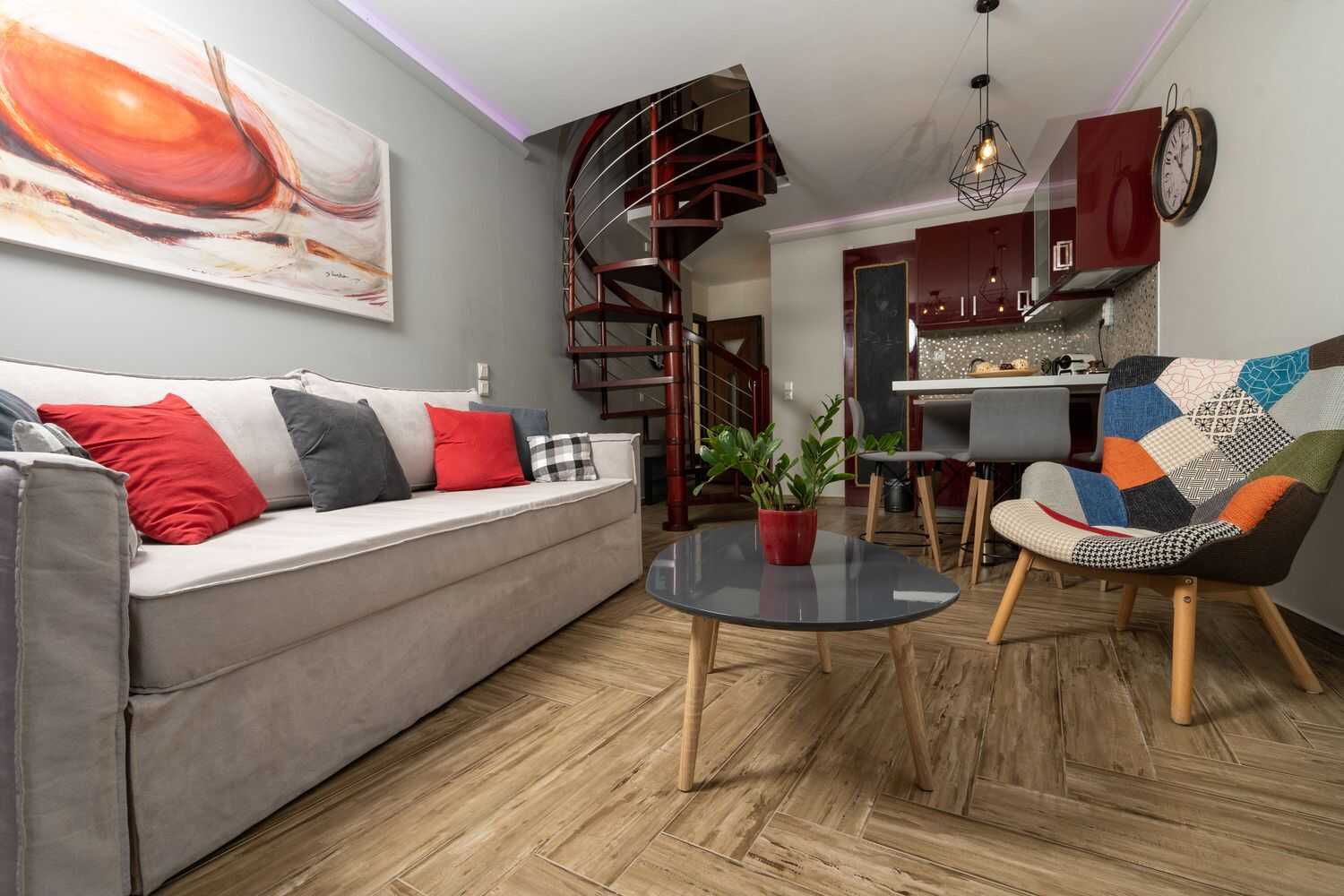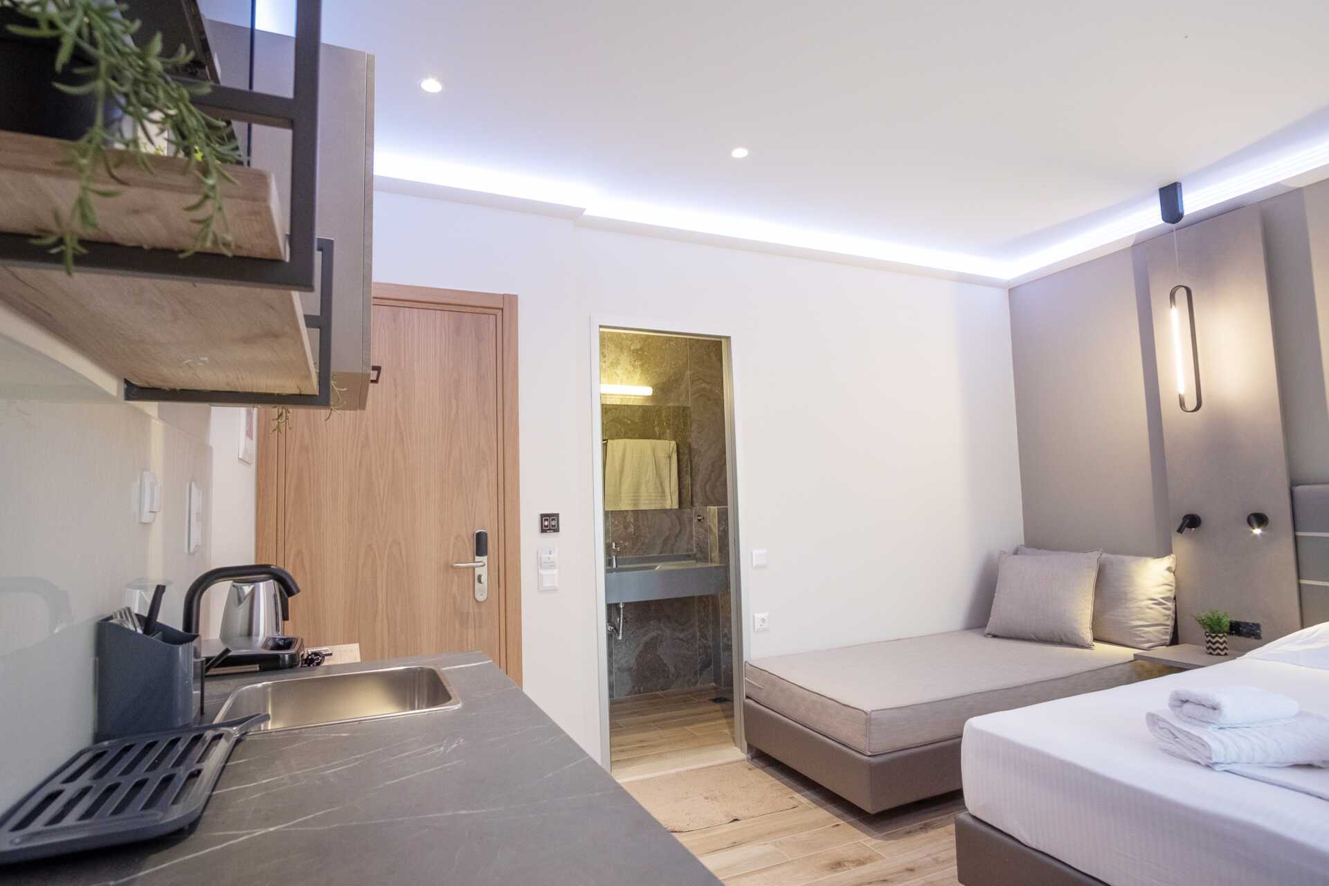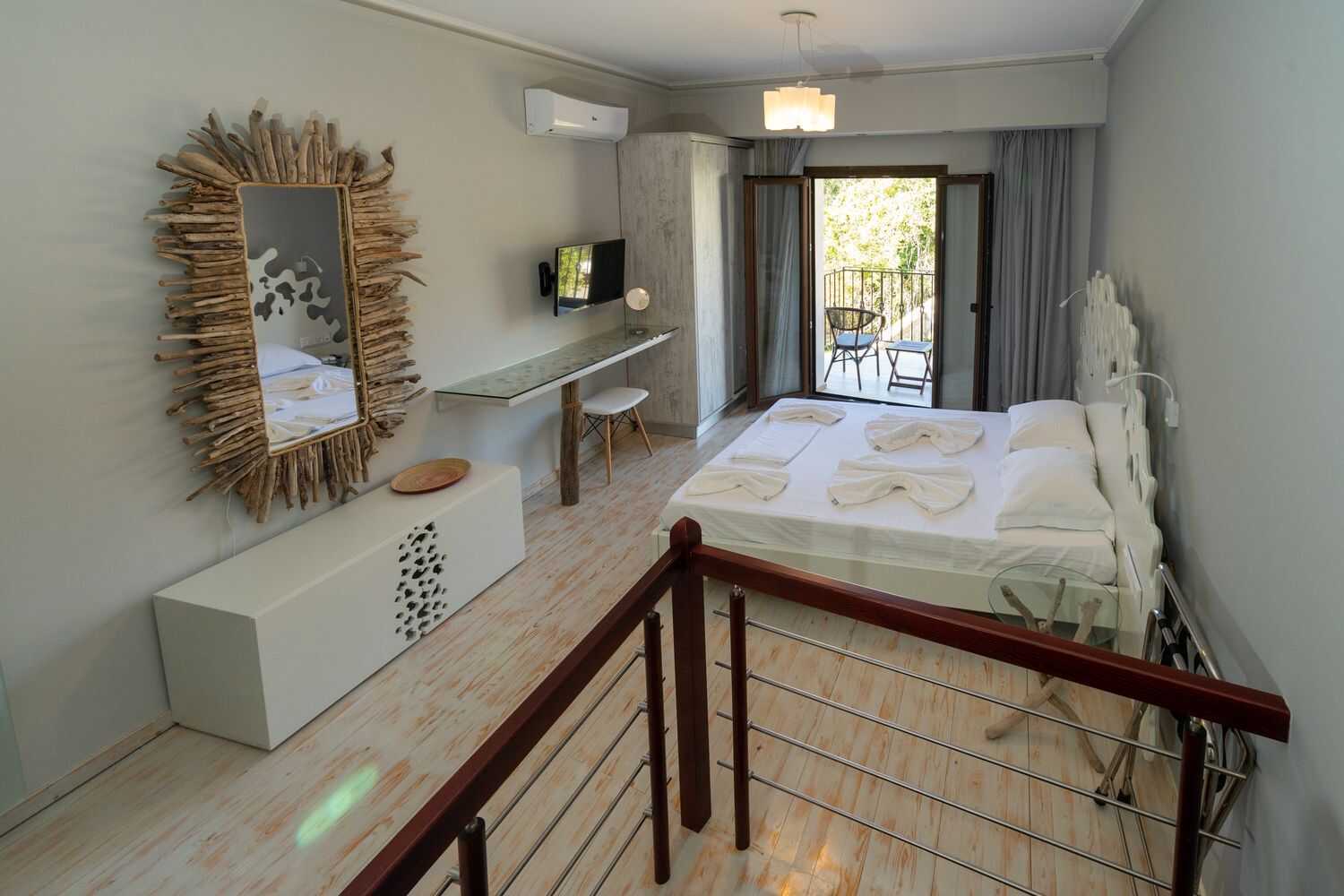 Parvekkeellinen kaksikerroksinen yksiö Sisääntulokerroksessa on yhdistetty olohuone ja minikeittiö, kylpyhuone ja mahdollisuus saada lisävuode vuodesohvalla. Yläkerrassa on parvi, jossa kylpyhuone ja parivuode. Kerrosten välissä kapeat kierreportaat. Minikeittiö, jossa keittolevyt, jääkaappi, vedenkeitin, kahvinkeitin, voileipägrilli, leivänpaahdin ja yksinkertaiset keittiövarusteet. Maksuton wifi ja ilmastointi. Tv paikallisilla kanavilla. Hiustenkuivain. Kaksi kylpyhuonetta, joissa on suihku ja wc. Siivous 7 krt/viikko.