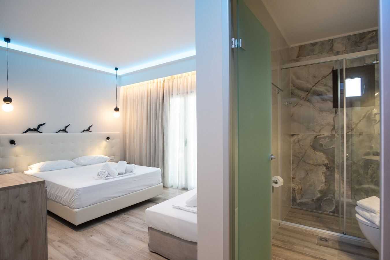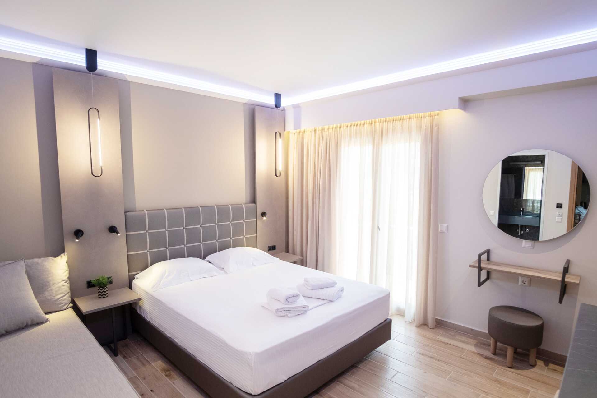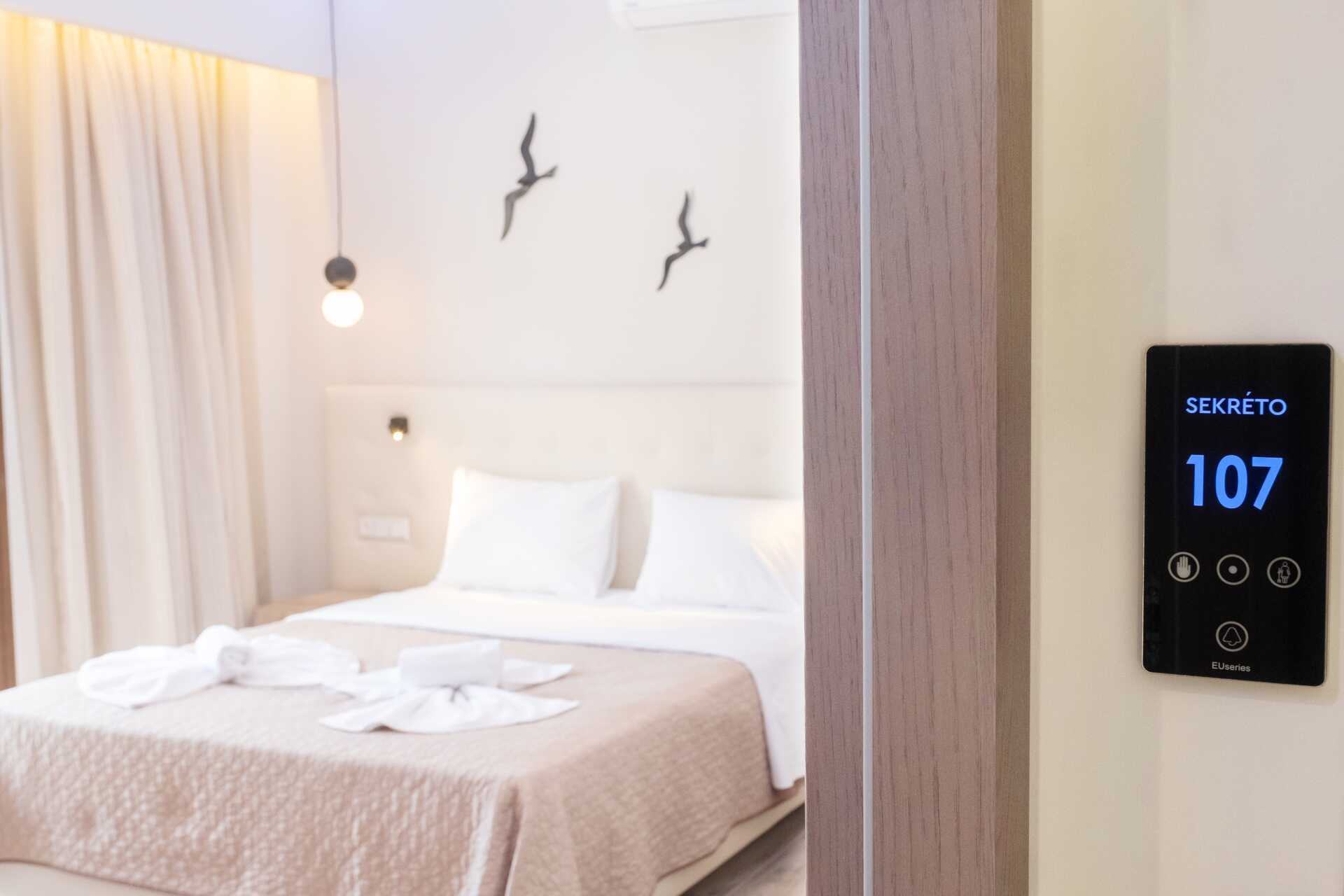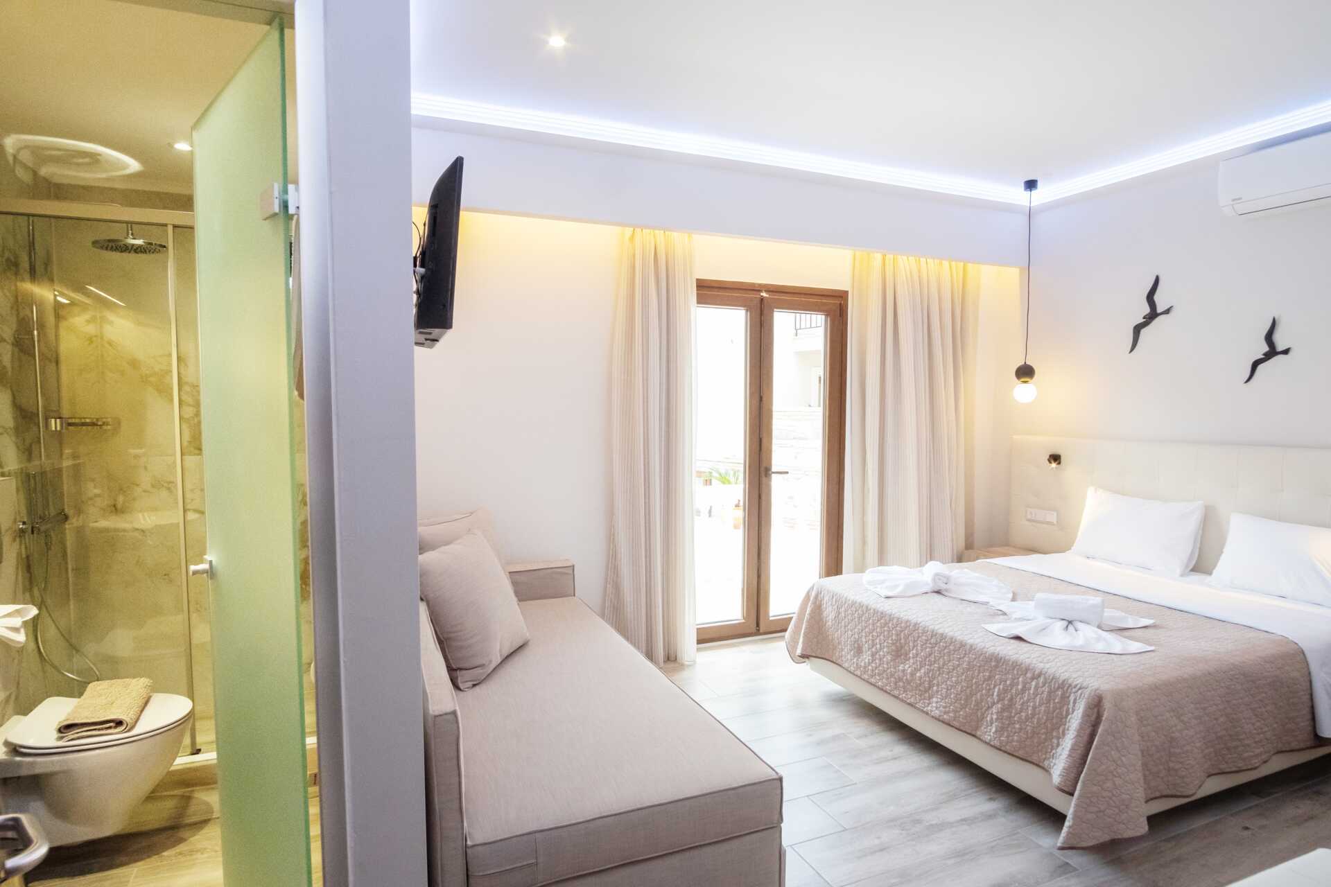 Remontoitu kahden hengen huone parvekkeella. Parivuode. Mahdollisuus saada lisävuode vuodesohvaan tai päivävuoteeseen. Maksuton wifi ja ilmastointi. Jääkaappi, vedenkeitin, kahvinkeitin ja voileipägrilli. Tv paikallisilla kanavilla. Hiustenkuivain. Kylpyhuoneessa suihku ja wc. Siivous 7 krt/viikko.