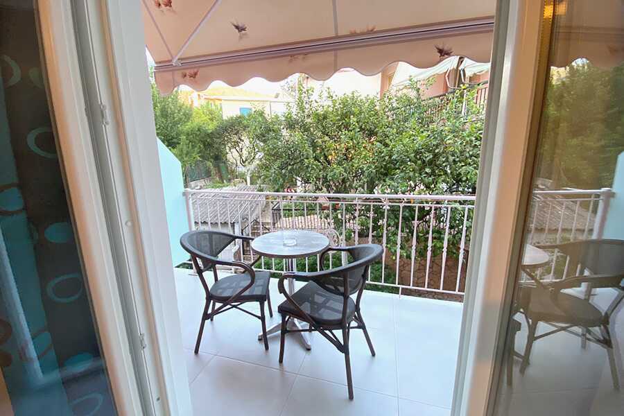 Kolmio maaterassilla. Kaksi makuuhuonetta ja keittiö ruokailutilalla. Jokaisessa makuuhuoneessa parivuode. Maksuton wifi. Ilmastointi ja tallelokero lisämaksusta. Keittiö, jossa jääkaappi, keittolevyt ja yksinkertainen keittiövarustus. Tv kansainvälisillä kanavilla. Kylpyhuoneessa suihku ja wc. Siivous 7 krt/viikko. Alle 2-vuotiaat lapset lasketaan lisävuoteella majoittuviksi henkilöiksi.
