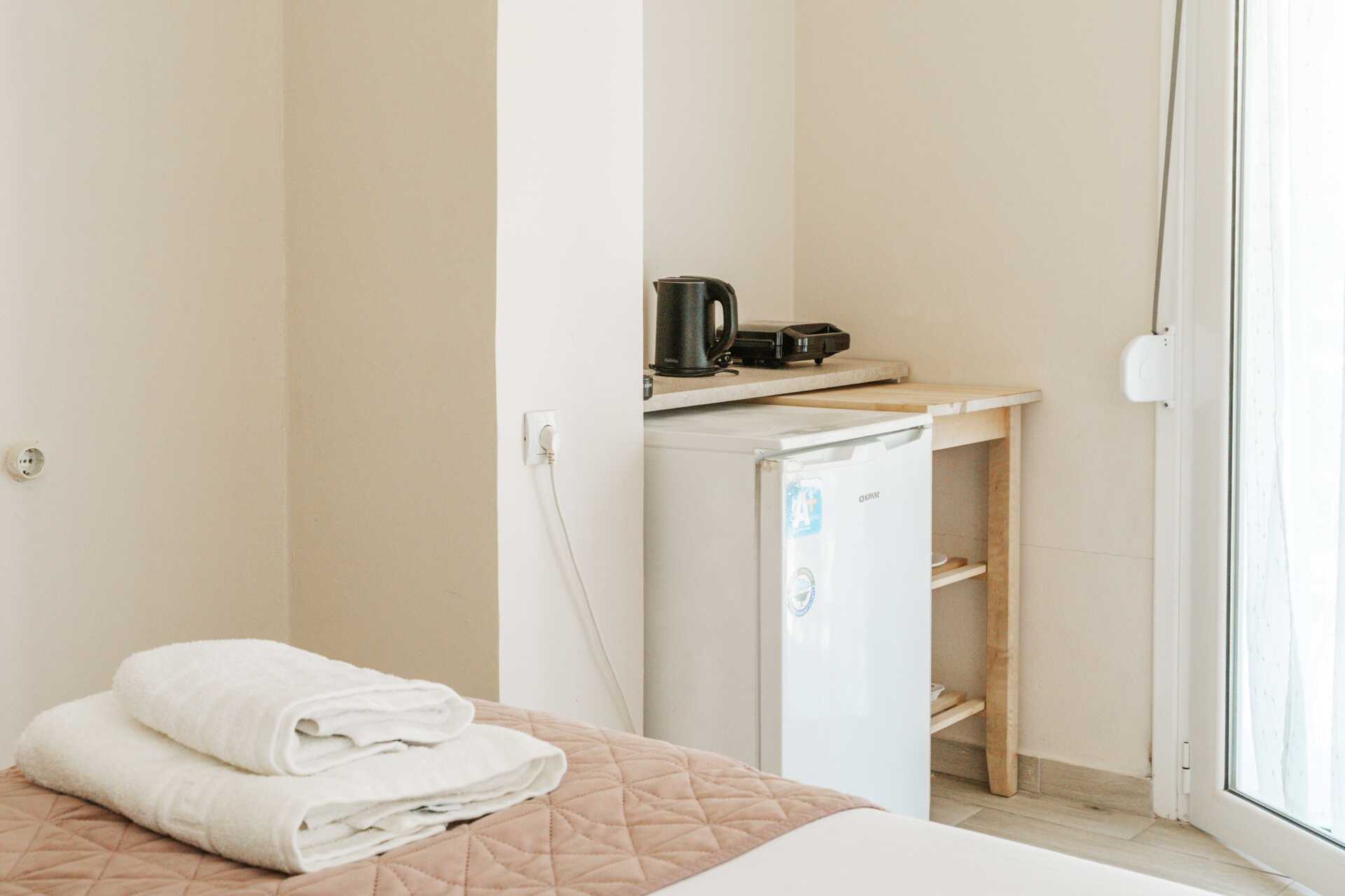 Kahden hengen huoneessa on parveke. Maksuton wifi, ilmastointi ja tallelokero. Tv kansainvälisillä kanavilla. Hiustenkuivain. Kylpyhuoneessa suihku ja wc. Siivous 6 krt/viikko.