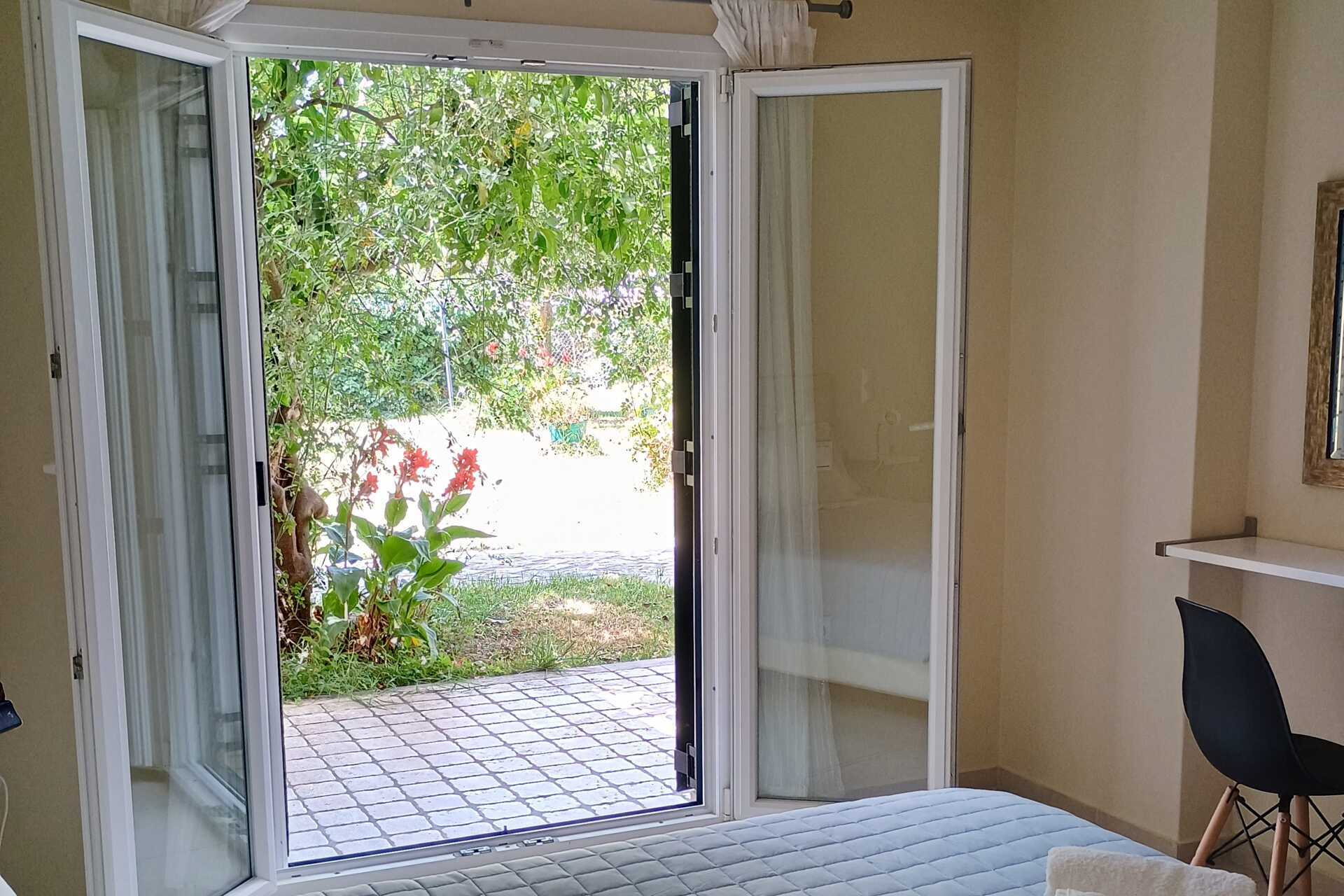 Kaksio jossa maaterassi Makuuhuone sekä yhdistetty olohuone ja minikeittiö. Yksi parivuode tai kaksi erillistä vuodetta. Minikeittiössä keittolevyt, uuni, jääkaappi, vedenkeitin, mikro ja yksinkertainen keittiövarustus. Maksuton wifi. Ilmastointi ja tallelokero lisämaksusta. Tv kansainvälisillä kanavilla. Kylpyhuoneessa suihku ja wc. Siivous 6 krt/viikko. Alle 2-vuotiaat lapset lasketaan lisävuoteella majoittuviksi henkilöiksi.