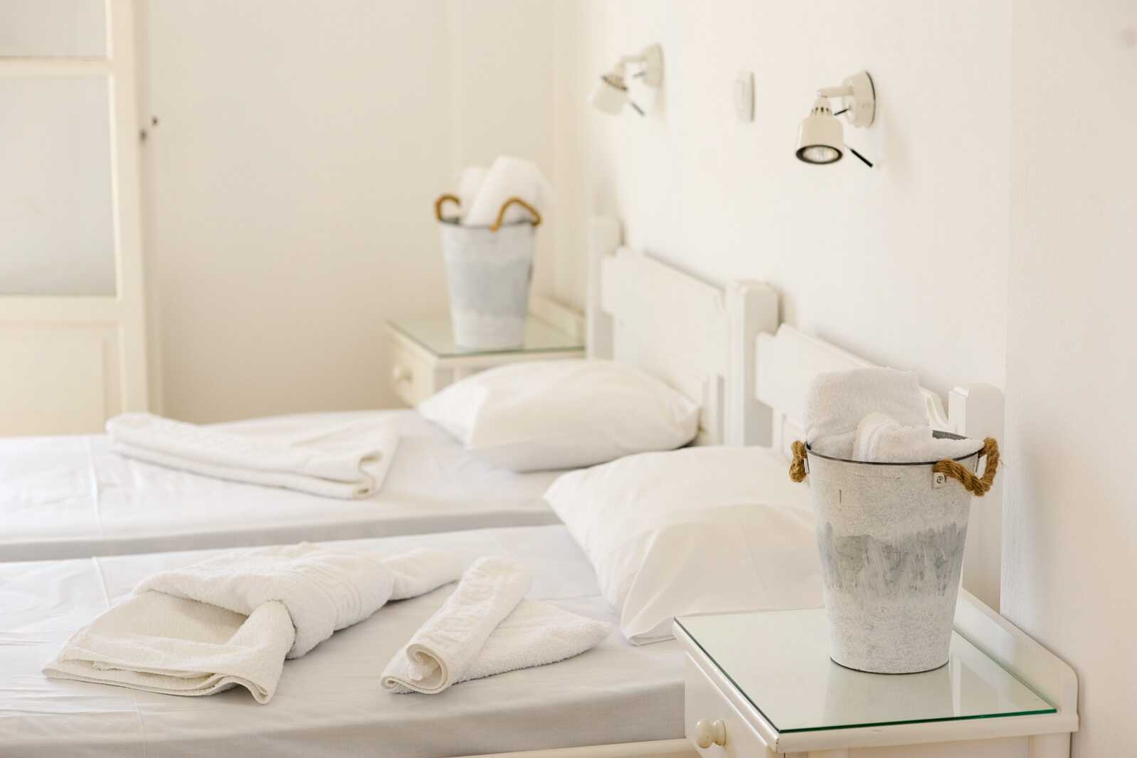 Kahden hengen huone parvekkeella. Parivuode tai kaksi yhden hengen sänkyä. lisävuodemahdollisuus yhden hengen vuoteeseen, levitettävään nojatuoliin tai olemassa oleviin vuoteisiin. Maksuton wifi ja ilmastointi. Jääkaappi. Tv kansainvälisillä kanavilla. Hiustenkuivain. Kylpyhuoneessa suihku ja wc. Siivous 7 krt/viikko. Alle 2-vuotiaat lapset lasketaan lisävuoteella majoittuviksi henkilöiksi.