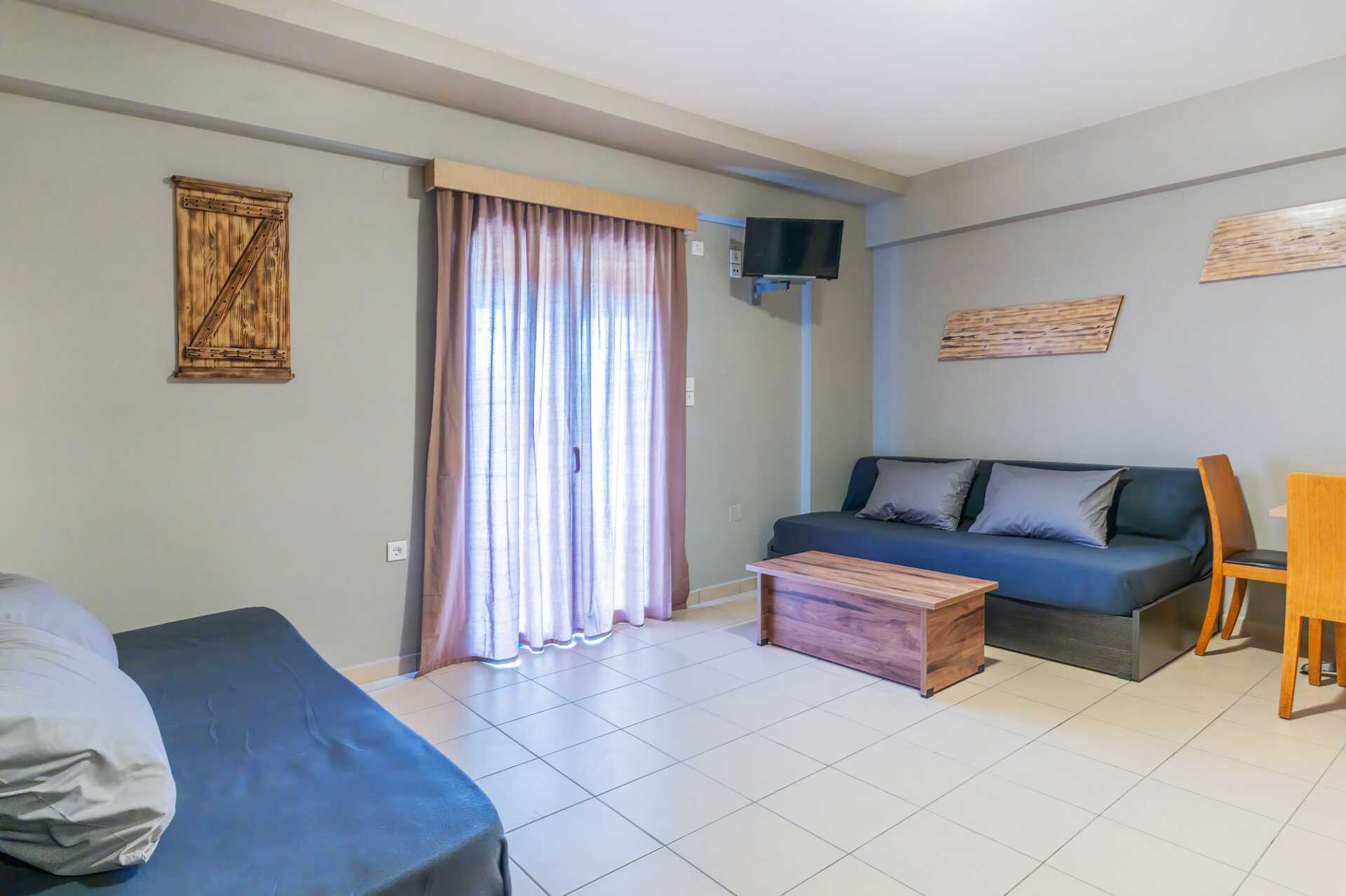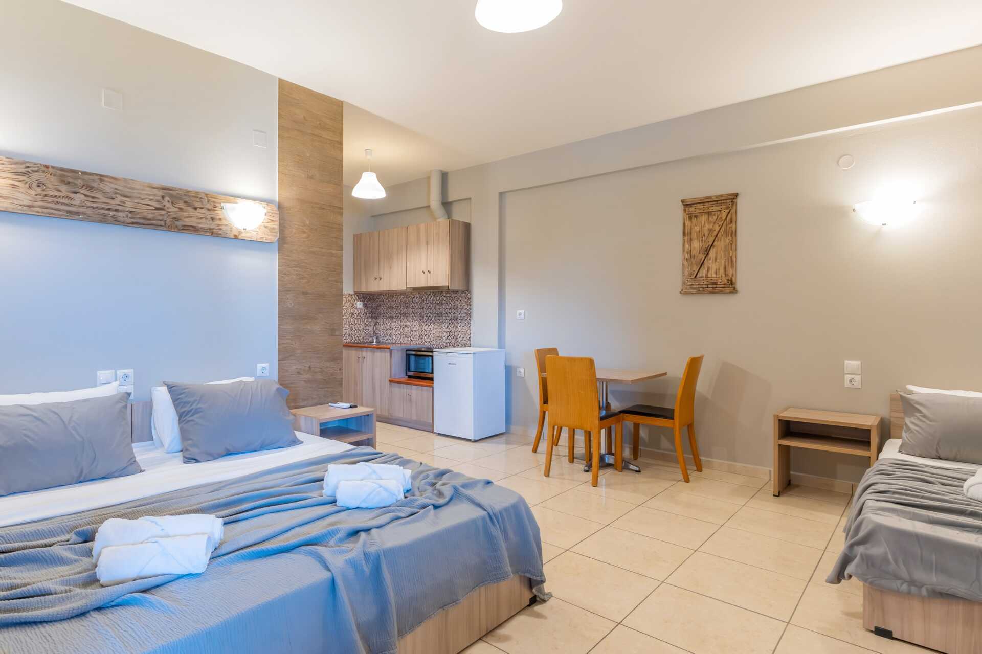 Yksiö parvekkeella. Yhdistetty makuuhuone ja minikeittiö. Parivuode tai kaksi erillistä vuodetta. Lisävuodemahdollisuus yhden hengen vuoteesta. Minikeittiö, jossa jääkaappi, liesi, vedenkeitin ja yksinkertainen keittiövarustus. Maksuton wifi, ilmastointi ja tallelokero. Tv paikallisilla kanavilla. Hiustenkuivain. Suihku ja wc. Siivous 5 krt/viikko.