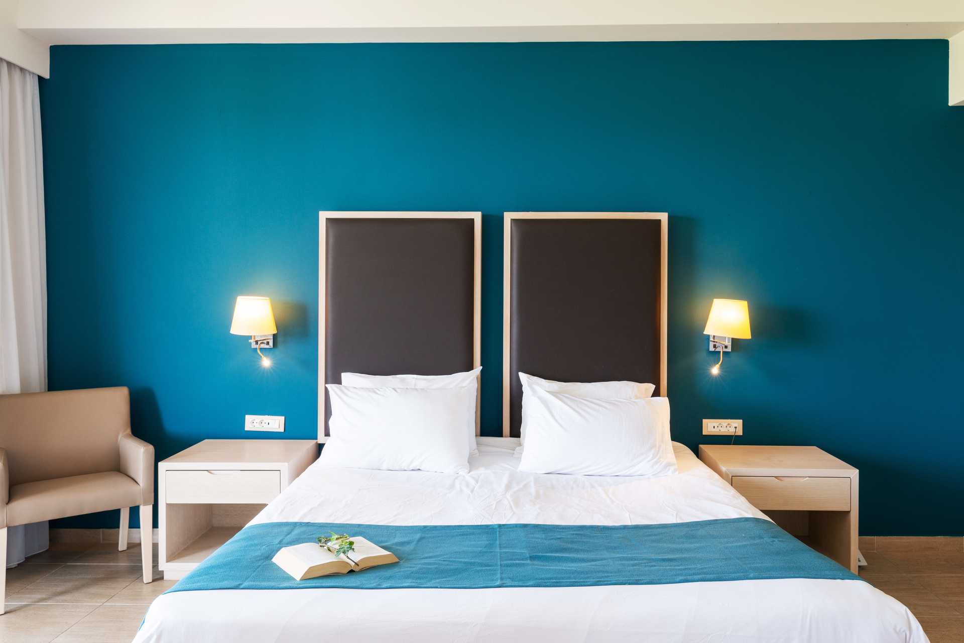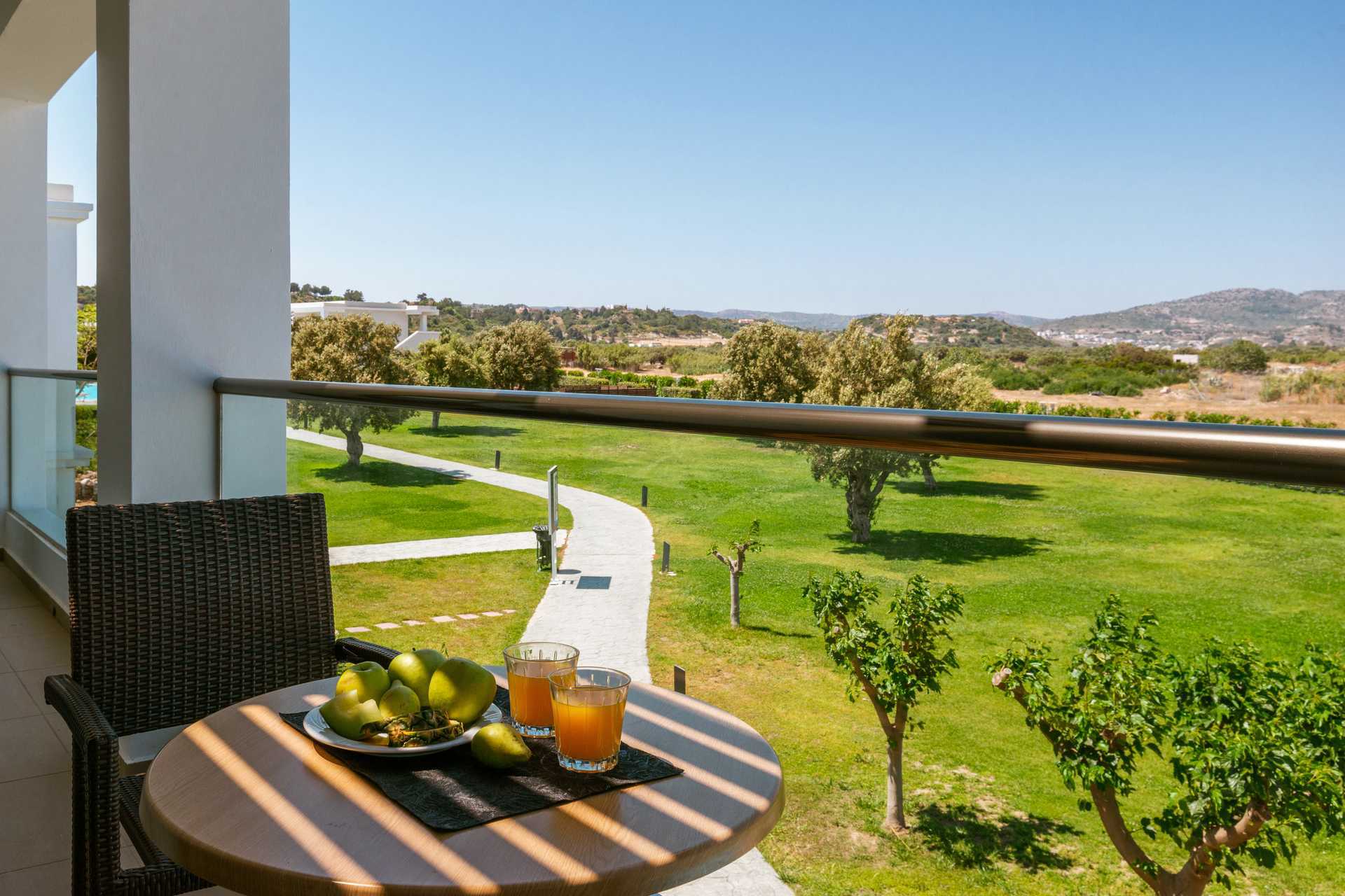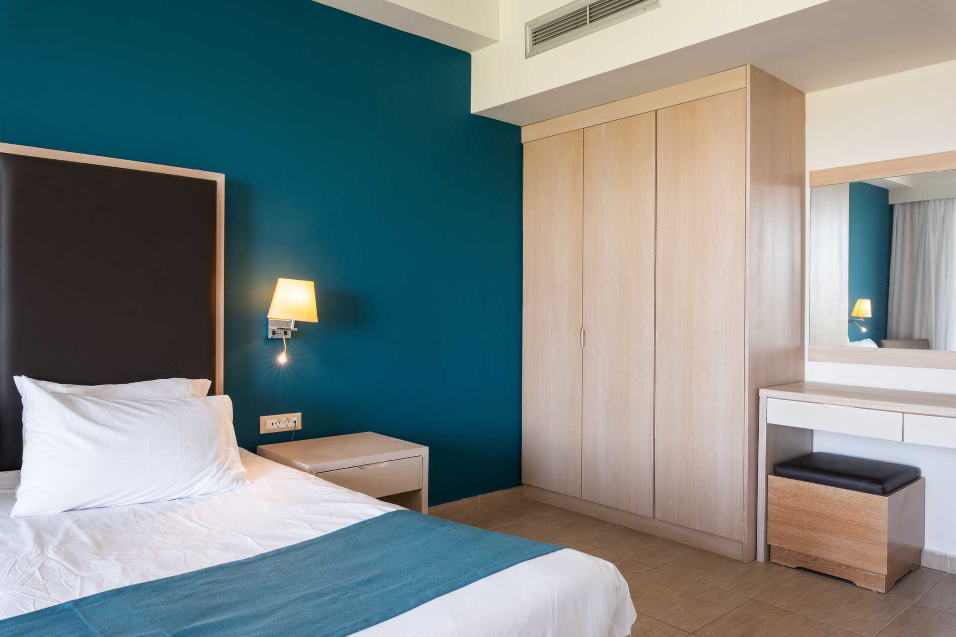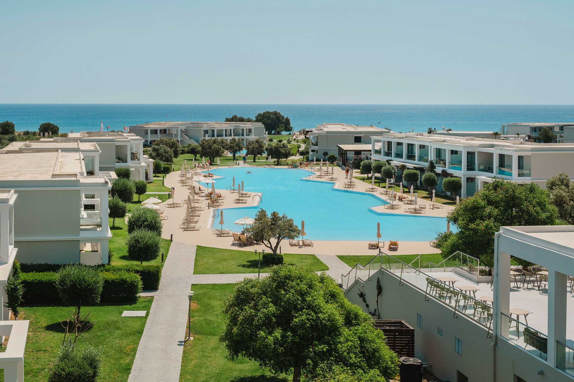 Kahden hengen huoneita, joissa on parveke tai maaterassi. Osasta parvekkeista allasnäkymä, merinäköala tai rajoitettu merinäköala. Parivuode tai kaksi yhden hengen vuodetta. Lisävuodemahdollisuus vuodesohvasta. Maksuton wifi, ilmastointi ja tallelokero. Jääkaappi. Vedenkeitin. Tv kansainvälisillä kanavilla. Hiustenkuivain. Amme/suihku ja wc. Siivous 7 krt/viikko.