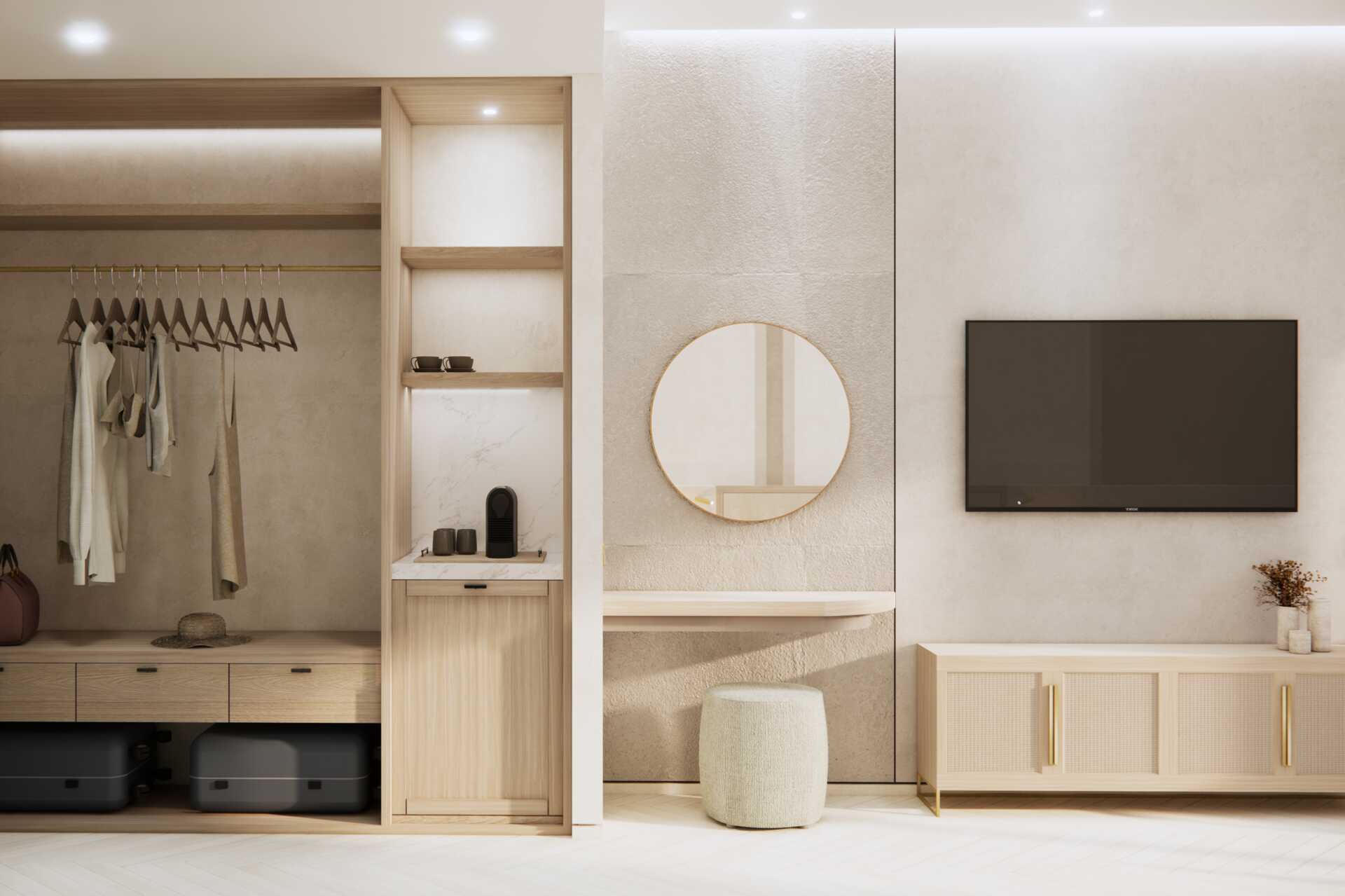 Kahden hengen huone, ulkotila omalla altaalla Parivuode. Lisävuodemahdollisuus kokoontaitettavasta nojatuolista. Maksuton wifi, ilmastointi ja tallelokero. Jääkaappi. Tv kansainvälisillä kanavilla. Kylpytakit ja tossut. Hiustenkuivain. Suihku ja wc. Siivous 7 krt/viikko.