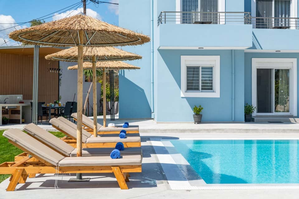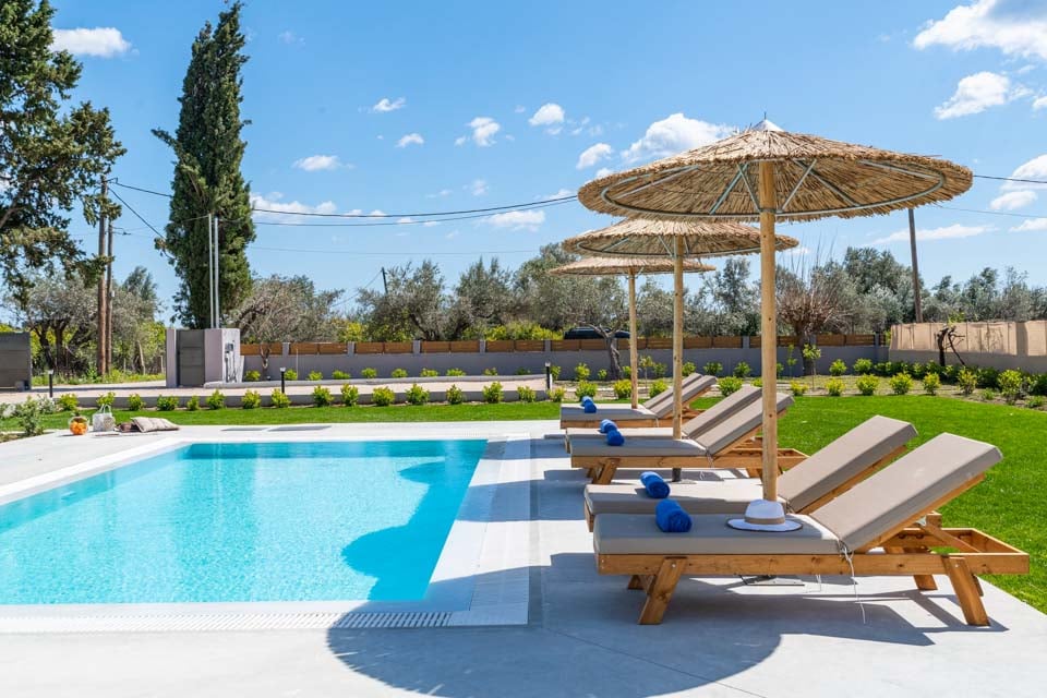 Puutarhan keskipisteenä on yksityinen uima-allas ja aurinkotuoleja. Ulkona sijaitsevan ruokailuterassin ansiosta, jossa voit valmistaa ja grillata aterioita, voit vaivattomasti viettää koko päivän Villa Ethriassa.