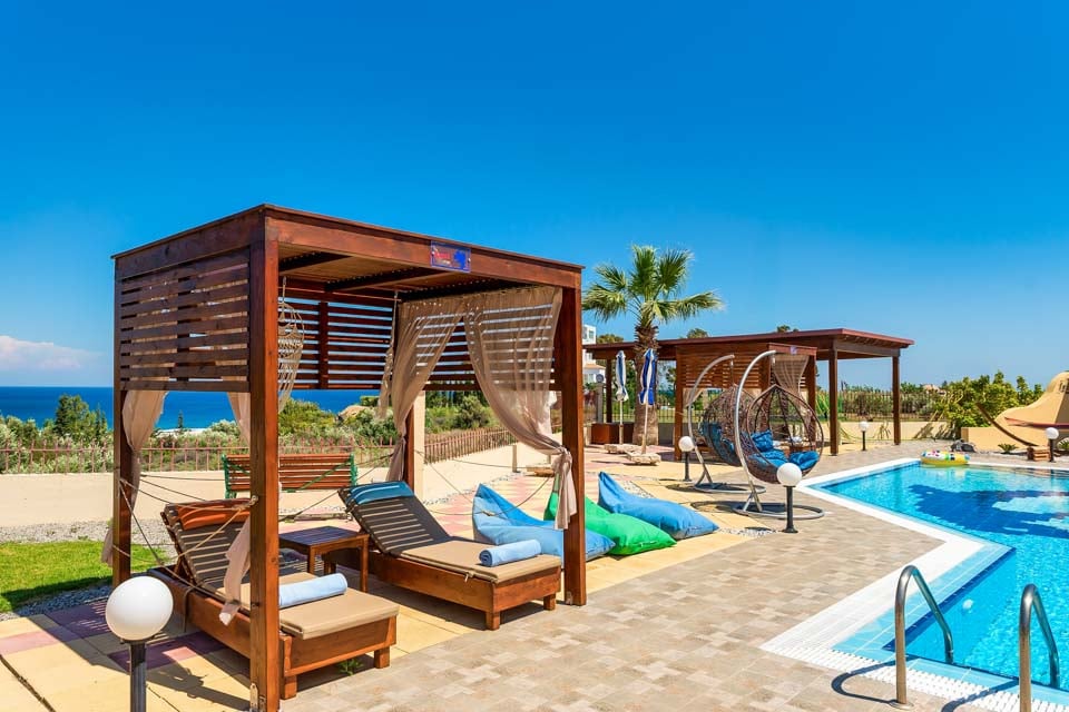Tässä tilavassa kuuden makuuhuoneen huvilassa on täysin varusteltu päärakennus, johon kuuluu tilava olohuone, hyvin varusteltu keittiö ja kaksi makuuhuonetta (toisessa niistä on oma kylpyhuone hierovalla suihkulla). Huvilan sivulla on erillinen lisärakennus, jossa on pieni oleskelualue, kahden hengen makuuhuone, kylpyhuone ja kahden hengen makuuhuone erillisellä vuoteella avoimella parvella oleskelualueen yläpuolella. Lisärakennuksessa on kaksi makuuhuonetta ja suihkuhuone. Kaikki majoitustilat ovat täysin ilmastoituja, ja WiFi on käytettävissä koko rakennuksessa. Ulkona sinua odottaa suuri yksityinen uima-allas, jota ympäröi tilava nurmikkoinen puutarha ja suuri katettu pergola, jossa on tiilistä tehty grilli niille, jotka haluavat ruokailla ulkona, sekä baari ja upea poreallas nautinnoksesi.