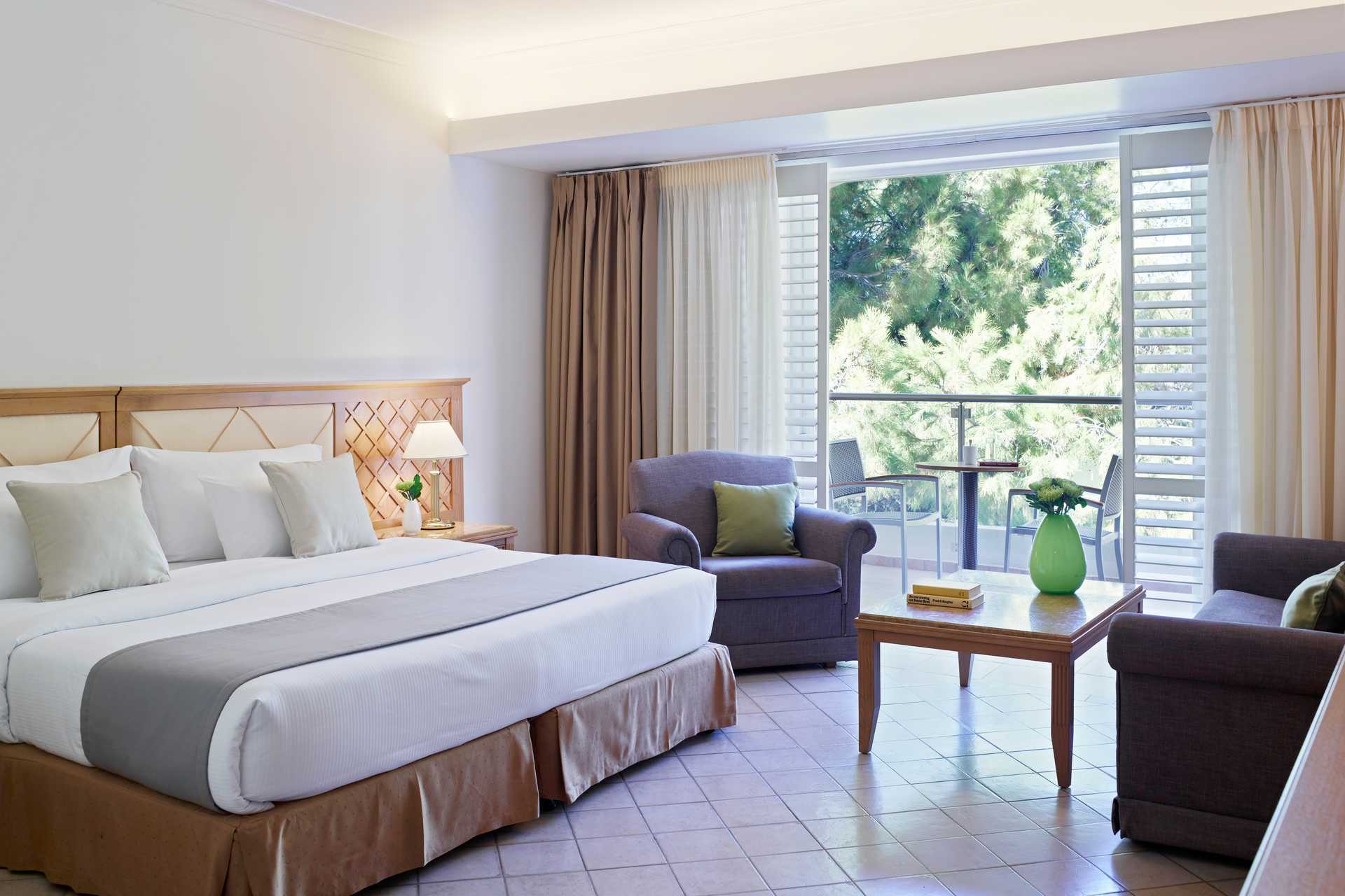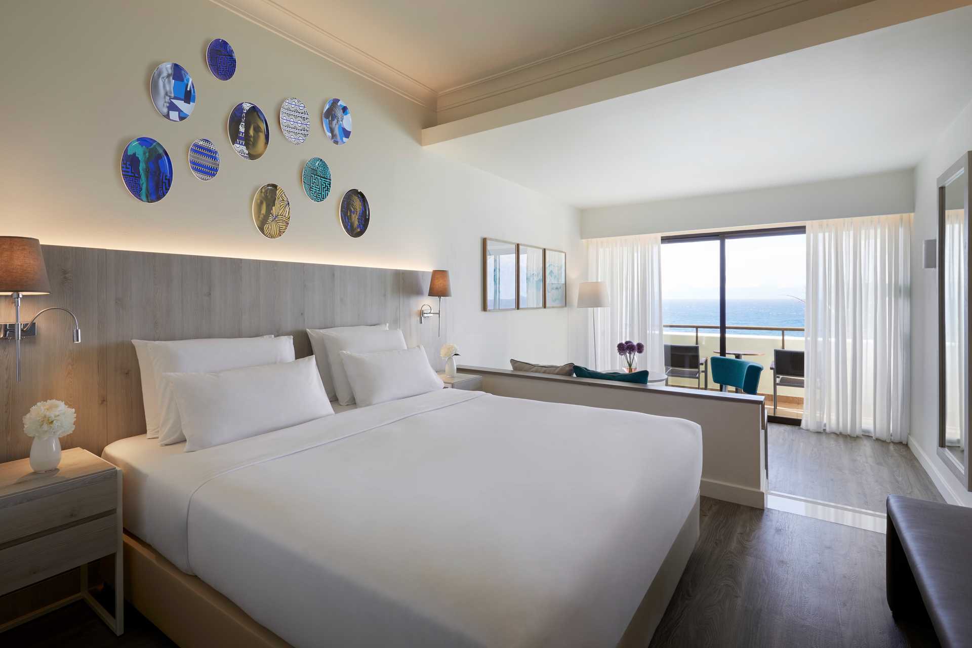 Sviitti parvekkeella ja merinäköalalla. Parivuode tai kaksi yhden hengen sänkyä. Lisävuodemahdollisuus vuodesohvasta. Maksuton wifi, ilmastointi ja tallelokero. Jääkaappi. Vedenkeitin, kahvia ja teetä. Tv kansainvälisillä kanavilla. Kylpytakit ja tossut. Hiustenkuivain. Kylpyhuoneessa kylpyamme tai suihku ja wc. Siivous 7 krt/viikko. Alle 2-vuotiaat lapset lasketaan lisävuoteella majoittuviksi henkilöiksi.
