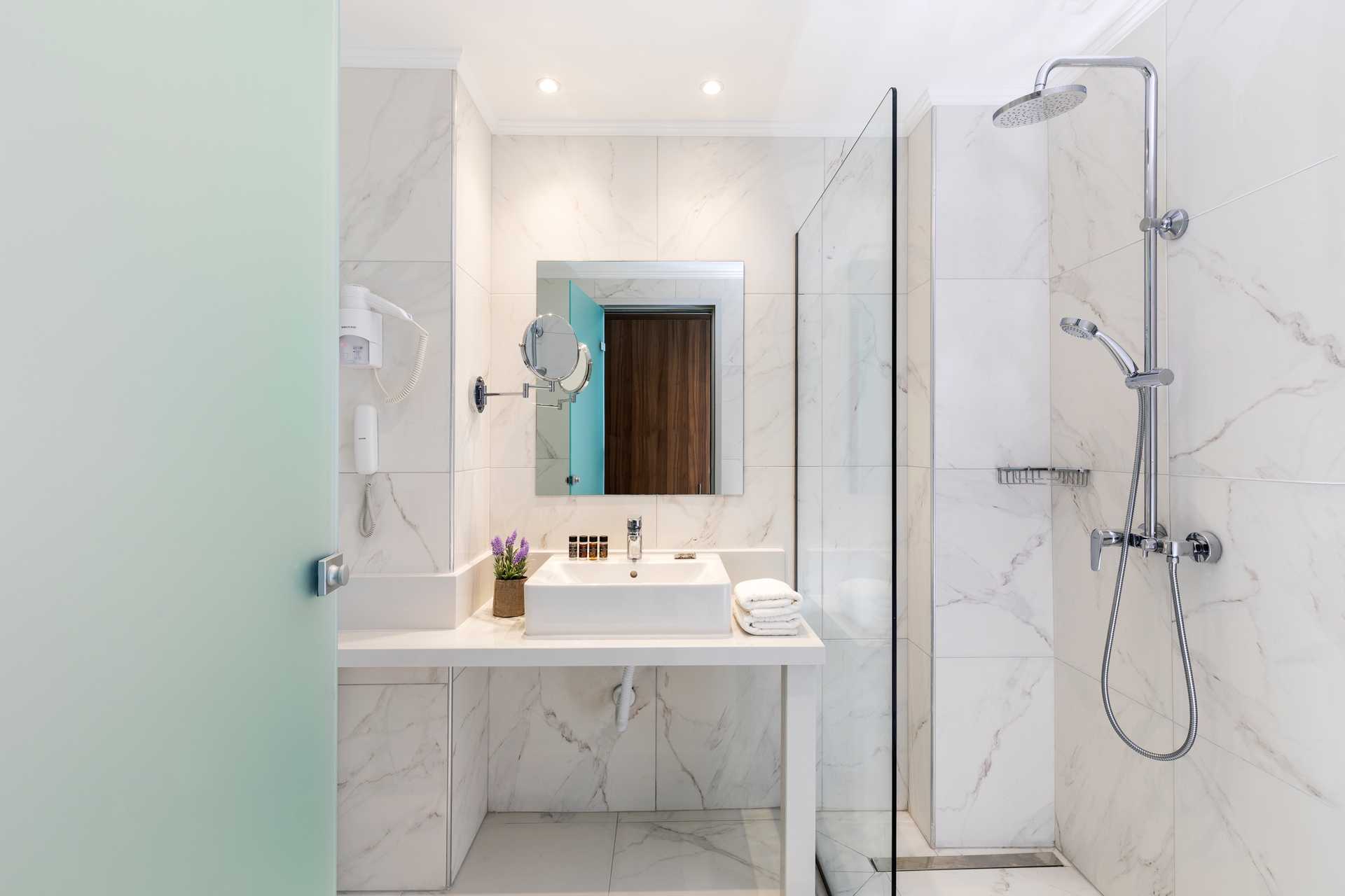 Kahden hengen huone parvekkeella, osassa merinäköala. Parivuode tai kaksi yhden hengen sänkyä. Mahdollisuus lisävuoteisiin kokoontaitettavassa sängyssä. Maksuton wifi ja ilmastointi. Ilmastointi on saatavilla kesä-syyskuussa. Tallelokero lisämaksusta. Jääkaappi. Vedenkeitin, kahvia ja teetä. Tv kansainvälisillä kanavilla. Hiustenkuivain. Amme ja wc. Siivous 6 krt/viikko.