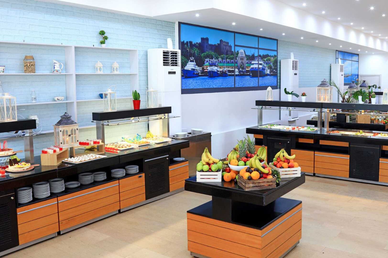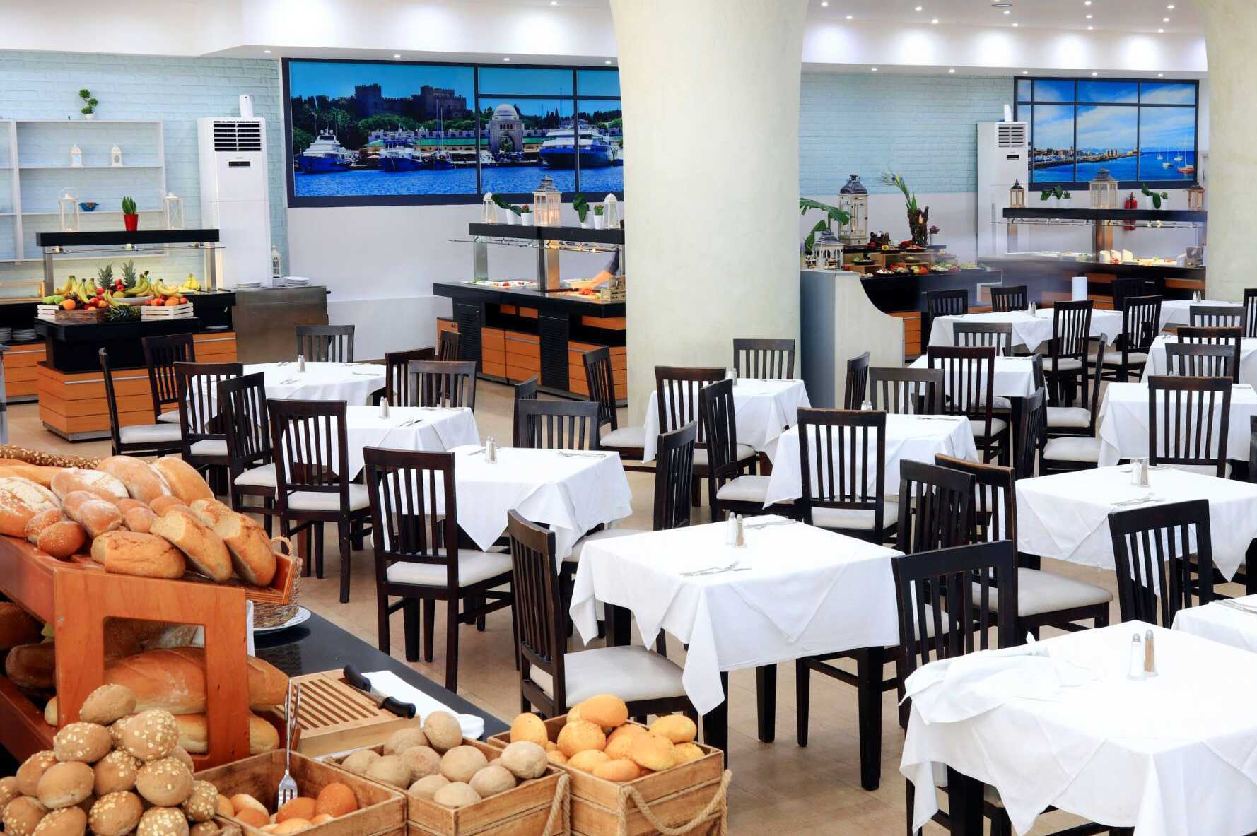 Blue Bay Resortissa on useita ravintoloita ja baareja. Aamiainen, lounas ja illallinen tarjoillaan hotellin buffetravintolassa Dionysos. Thalassa Ravintolassa voit nauttia brunssin ja lounaan. Iltaisin on mahdollista nauttia illallista à la carte -ravintoloissa Musses, jossa tarjoillaan paikallisen keittiön parhaita, ja Il Gusto, joka vie kulinaariselle matkalle italialaisen keittiön pariin. À la carte -ravintoloihin vaaditaan pöytävaraus. Huolellinen vaatetus. Useita välipalaravintoloita ja baareja, joissa tarjoillaan kevyitä aterioita päivän aikana, sekä useita allasbaareja ja rantabaari. Hotellissa on myös jäätelöbaari - maksullinen.
