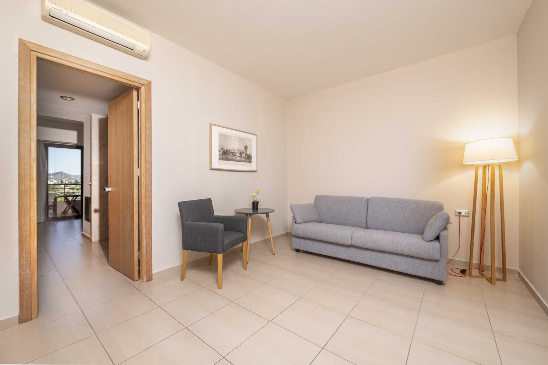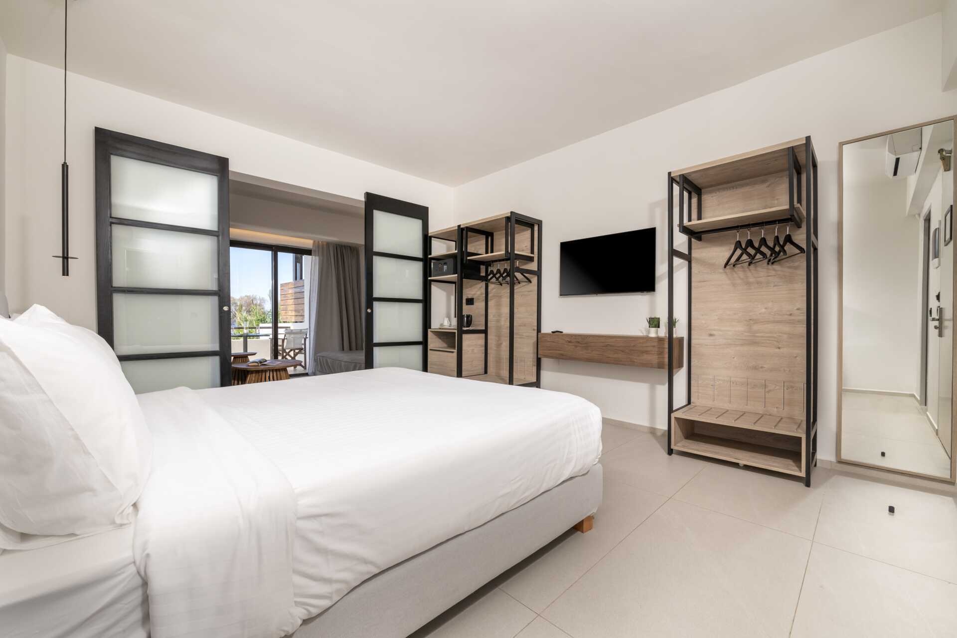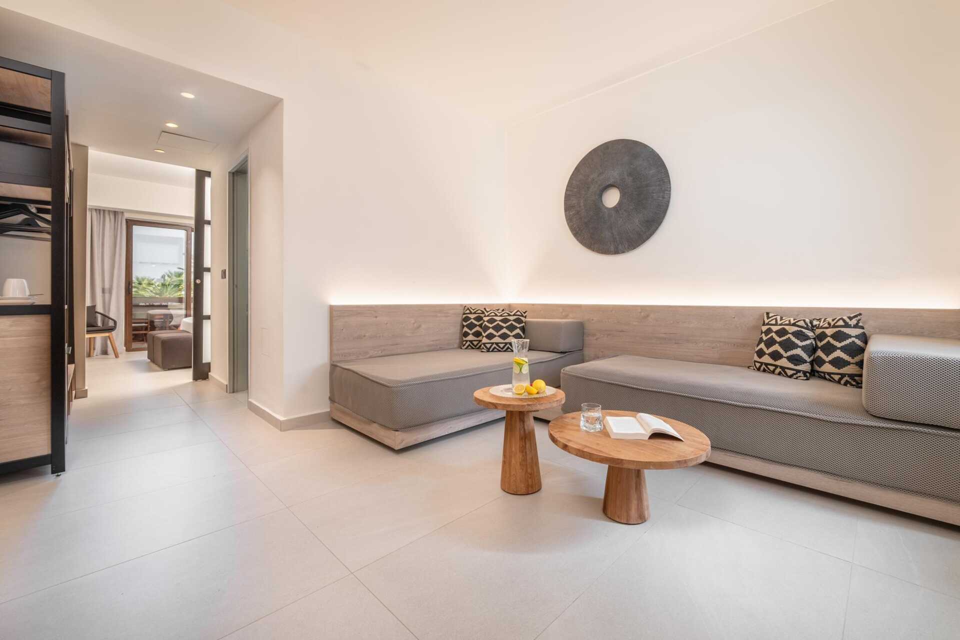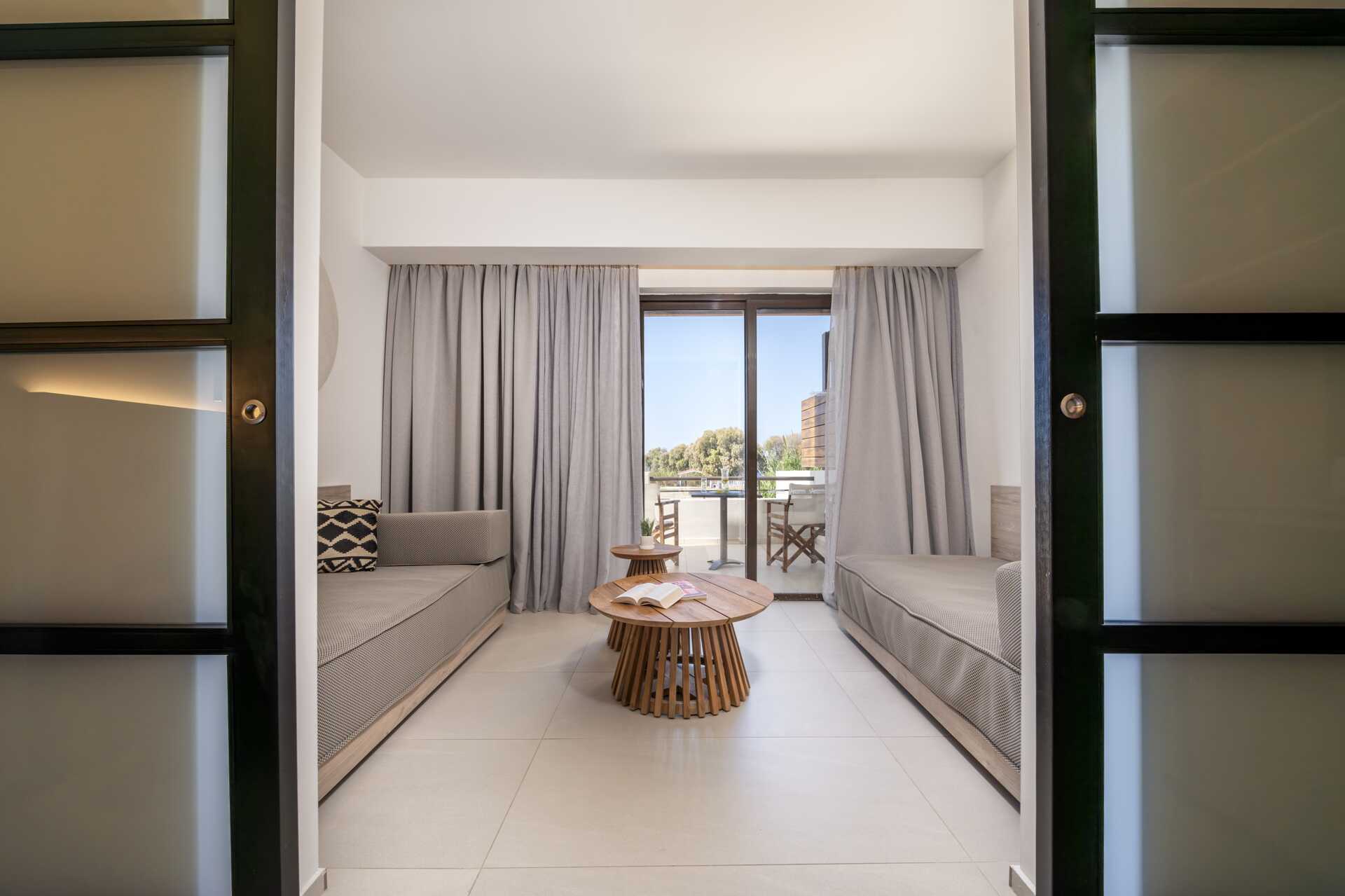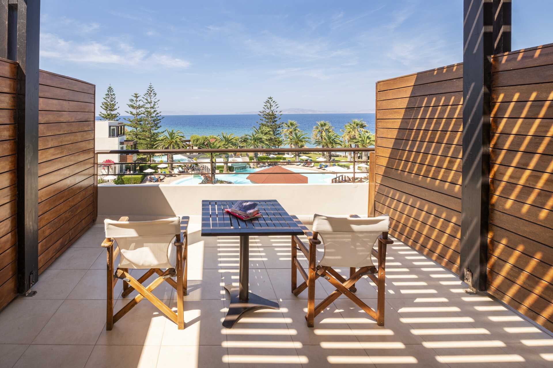 Sviitti jossa parveke tai terassi, joista osasta on merinäköala. Sviitti koostuu makuuhuoneesta ja olohuoneesta, joissakin huoneissa on ovi huoneiden välissä ja joissakin huoneissa on himmeä liukuovi. Kaksi yhden hengen sänkyä. Lisävuodemahdollisuus vuodesohvalla. Maksuton wifi, ilmastointi ja tallelokero. Jääkaappi. Vedenkeitin, kahvia ja teetä. Tv kansainvälisillä kanavilla. Hiustenkuivain. Kylpyhuoneessa kylpyamme tai suihku ja wc. Siivous 6 krt/viikko.