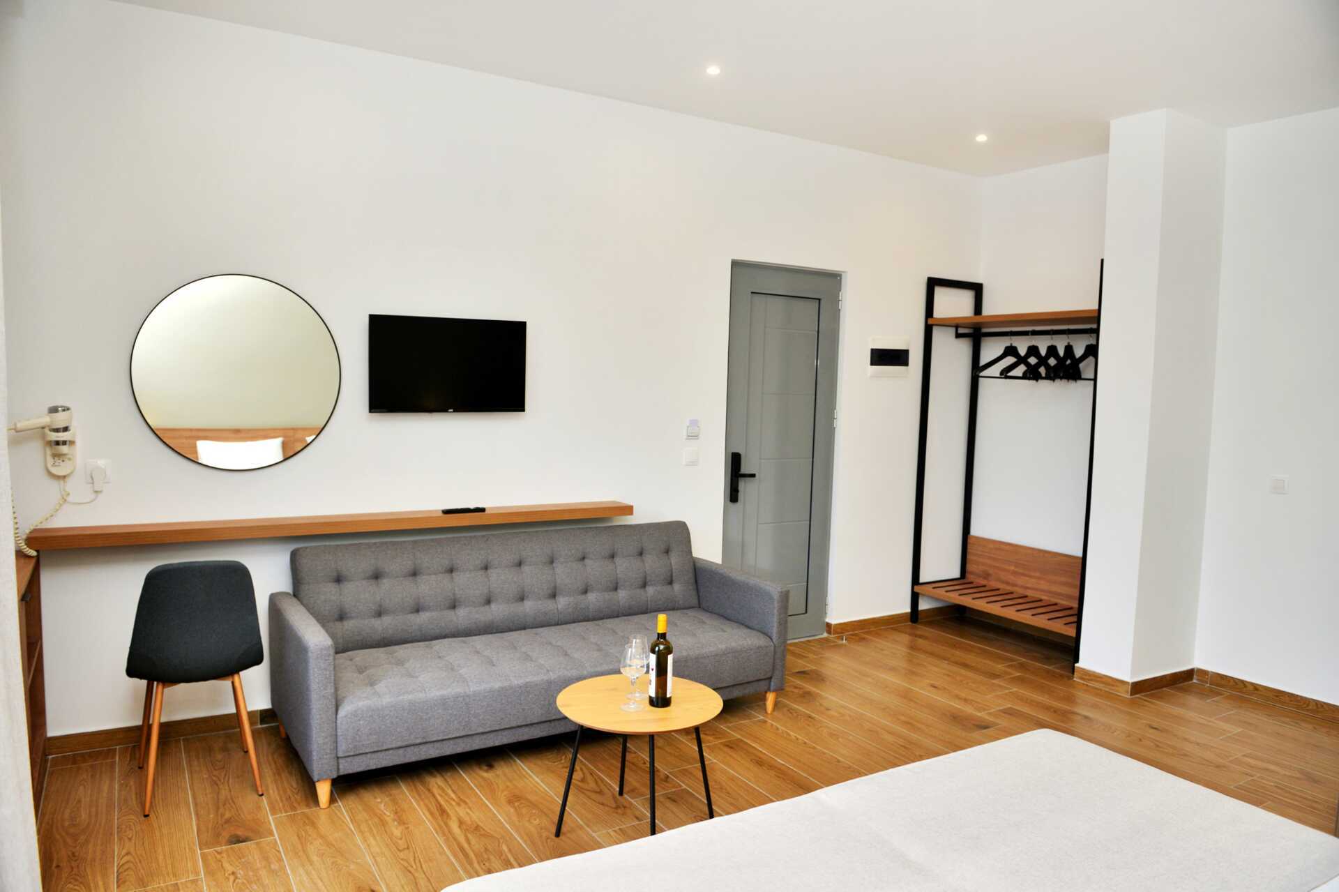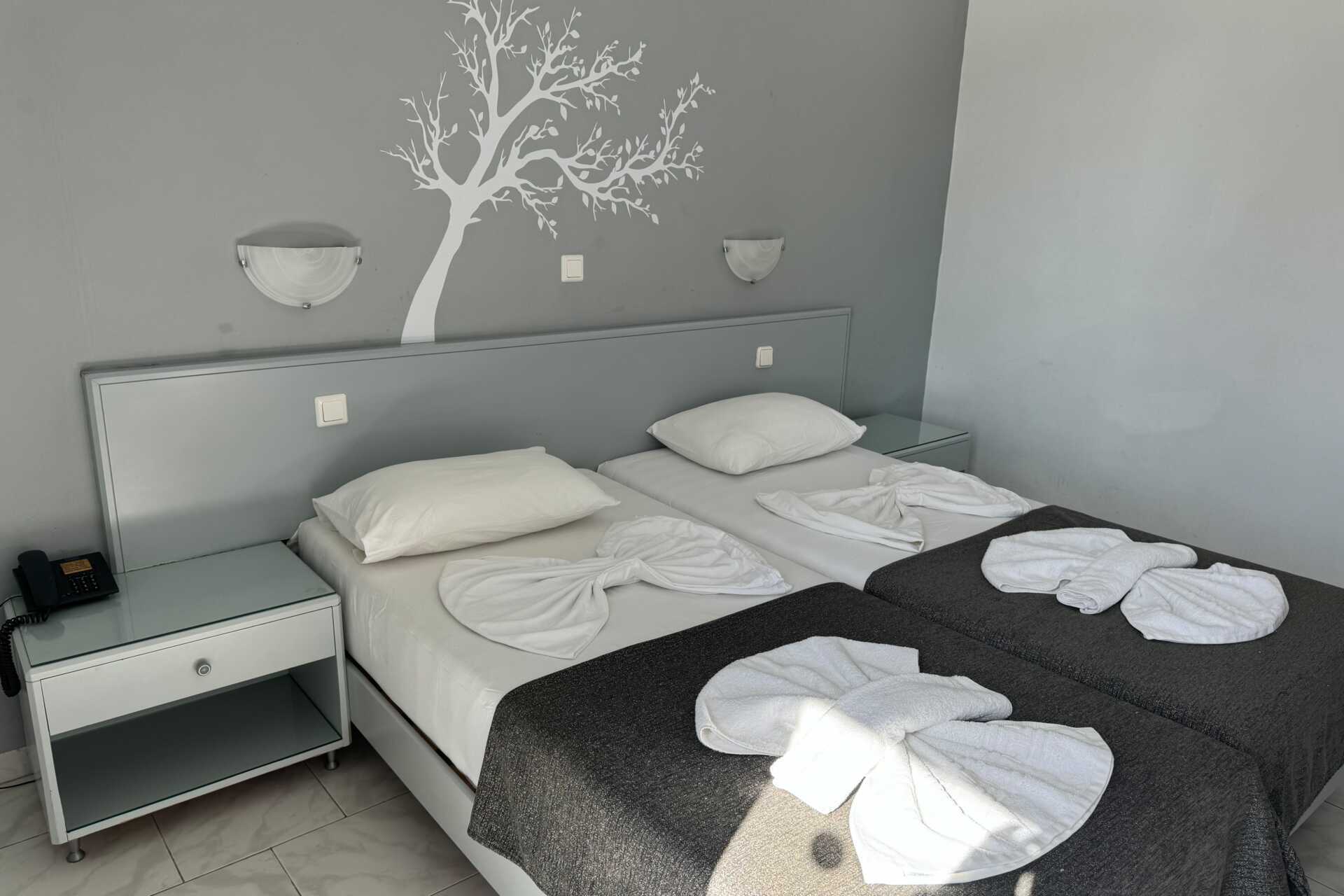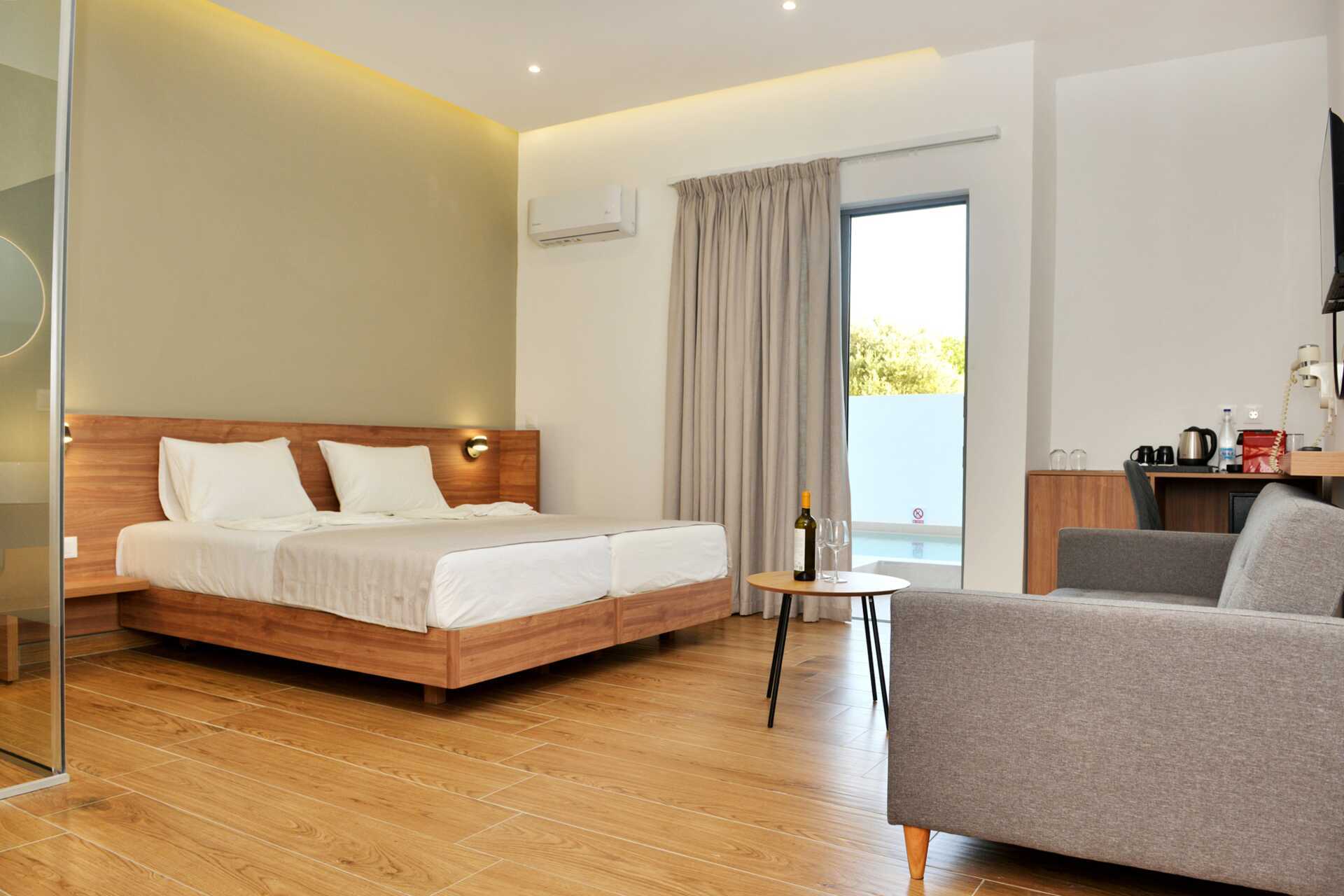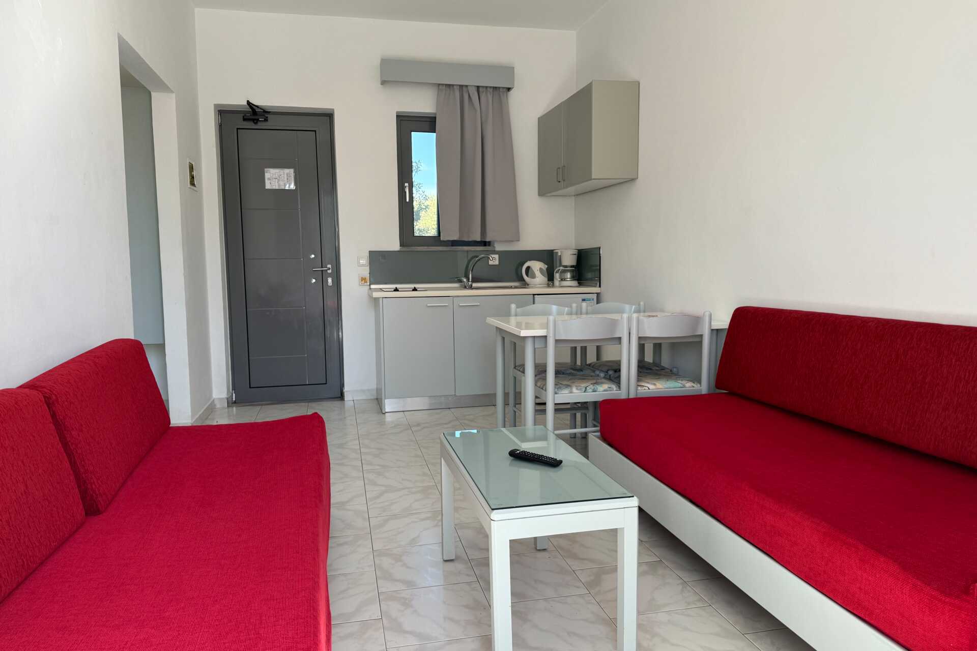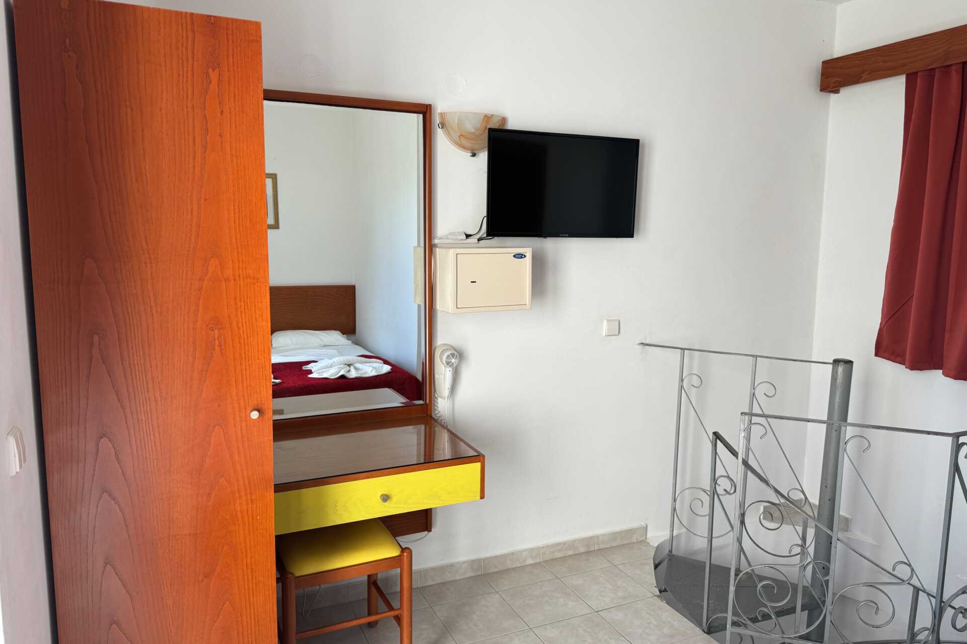 Superior -yksiö, josta on pääsy yhteiselle uima-altaalle ulkotilasta.. Huoneisto on suurelle allasalueelle päin. Yhdistetty makuuhuone ja minikeittiö. Kaksi yhden hengen sänkyä tai yksi parivuode. Minikeittiössä keittolevyt, jääkaappi, vedenkeitin, kahvinkeitin ja yksinkertainen keittiövarustus. Maksuton wifi, ilmastointi ja tallelokero. Tv kansainvälisillä kanavilla. Hiustenkuivain. Kylpyhuoneessa kylpyamme tai suihku ja wc. Siivous 5 krt/viikko.
