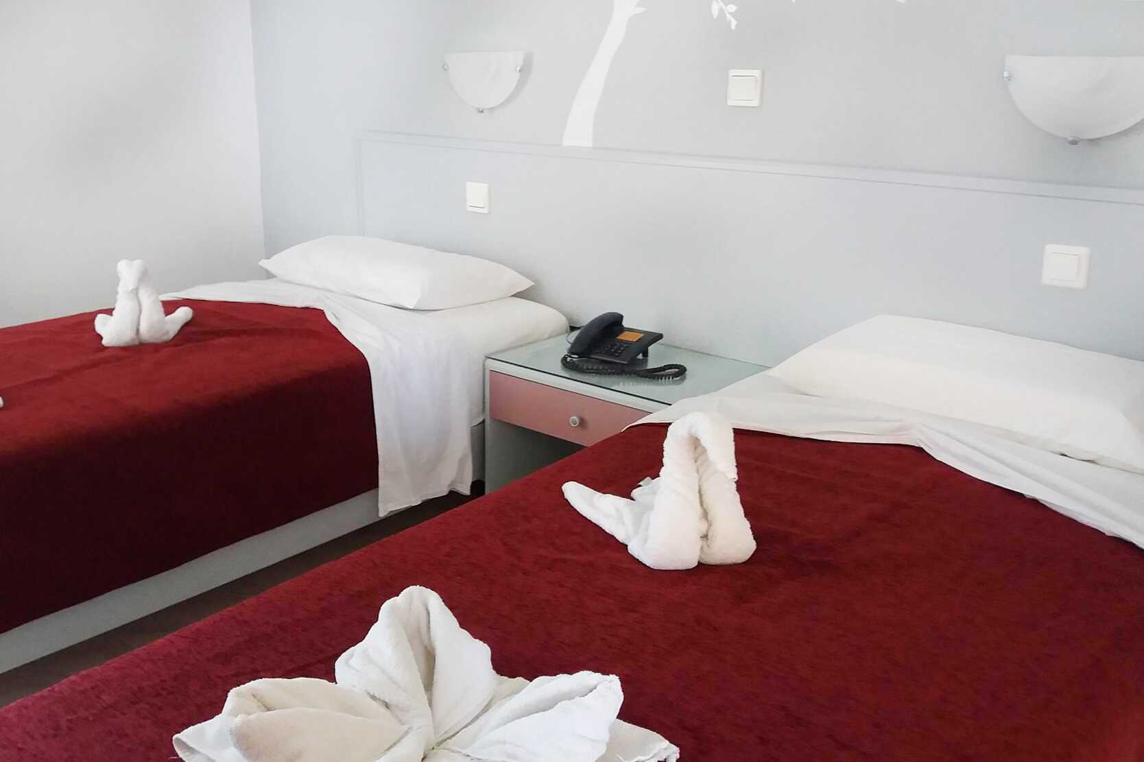 Kahden hengen huone terassilla ja jaetulla uima-altaalla. Perhehuoneesta on näkymä allasalueelle hotellin takana. Kaksi yhden hengen sänkyä tai yksi parivuode. Maksuton wifi, ilmastointi ja tallelokero. Vedenkeitin. Tv kansainvälisillä kanavilla. Hiustenkuivain. Lasiseinäinen kylpyhuone, jossa on kylpyamme tai suihku ja wc. Siivous 5 krt/viikko.