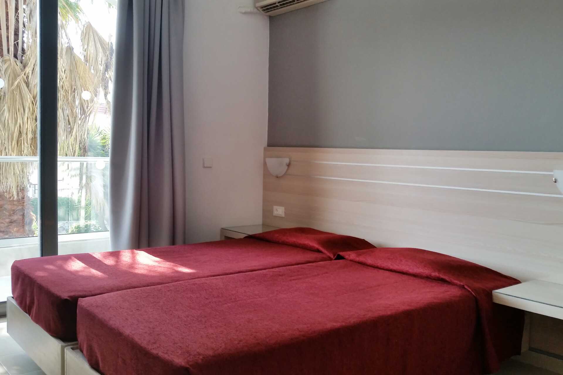 Yksiö parvekkeella ja näköalalla uima-altaalle. Huoneisto on joko suuren uima-altaan tai hotellin takana olevan uima-altaan puolella. Yhdistetty makuuhuone ja minikeittiö. Kaksi yhden hengen sänkyä tai yksi parivuode. Minikeittiössä keittolevyt, jääkaappi, vedenkeitin, kahvinkeitin ja yksinkertainen keittiövarustus. Maksuton wifi, ilmastointi ja tallelokero. Tv kansainvälisillä kanavilla. Hiustenkuivain. Kylpyhuoneessa kylpyamme tai suihku ja wc. Siivous 5 krt/viikko.