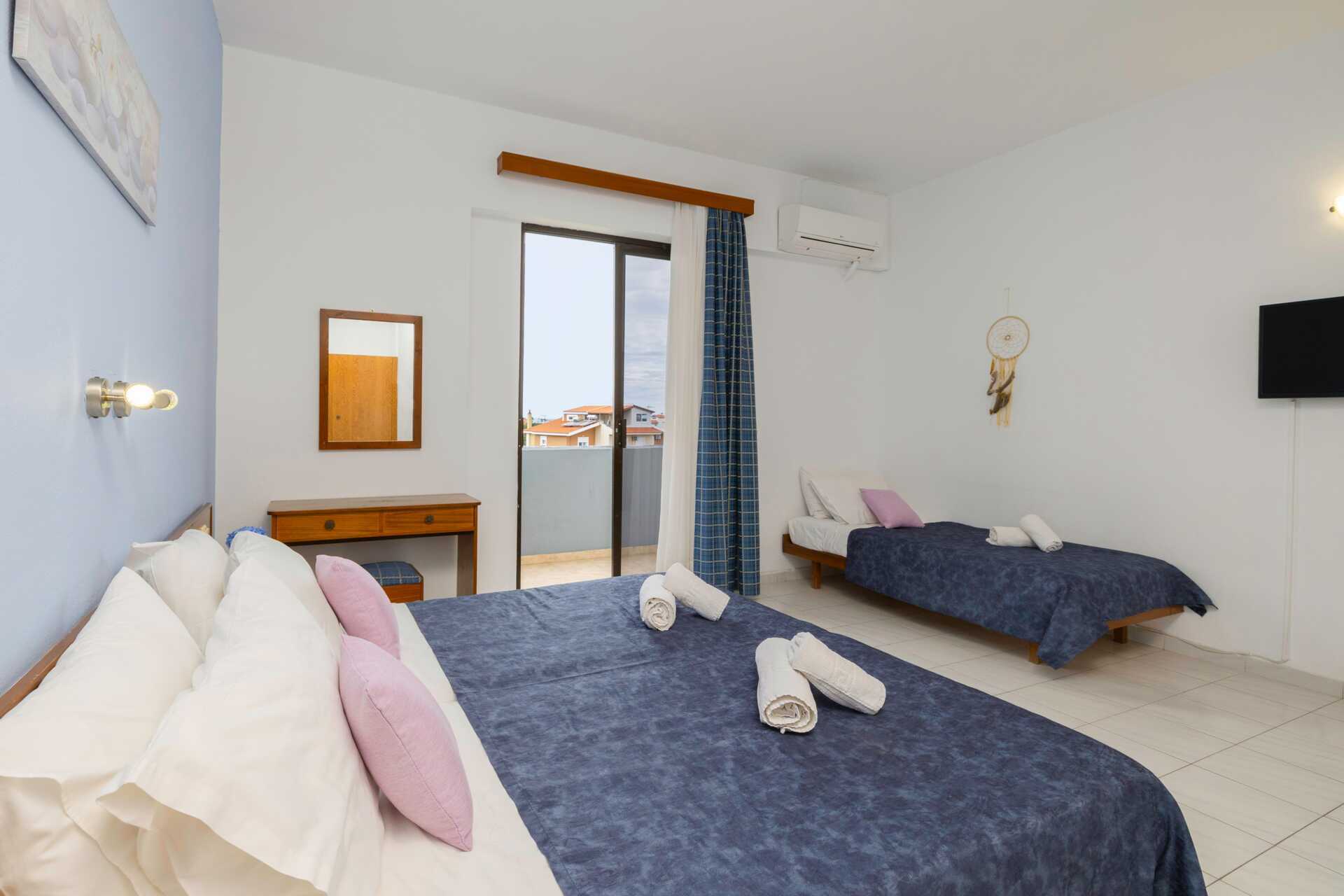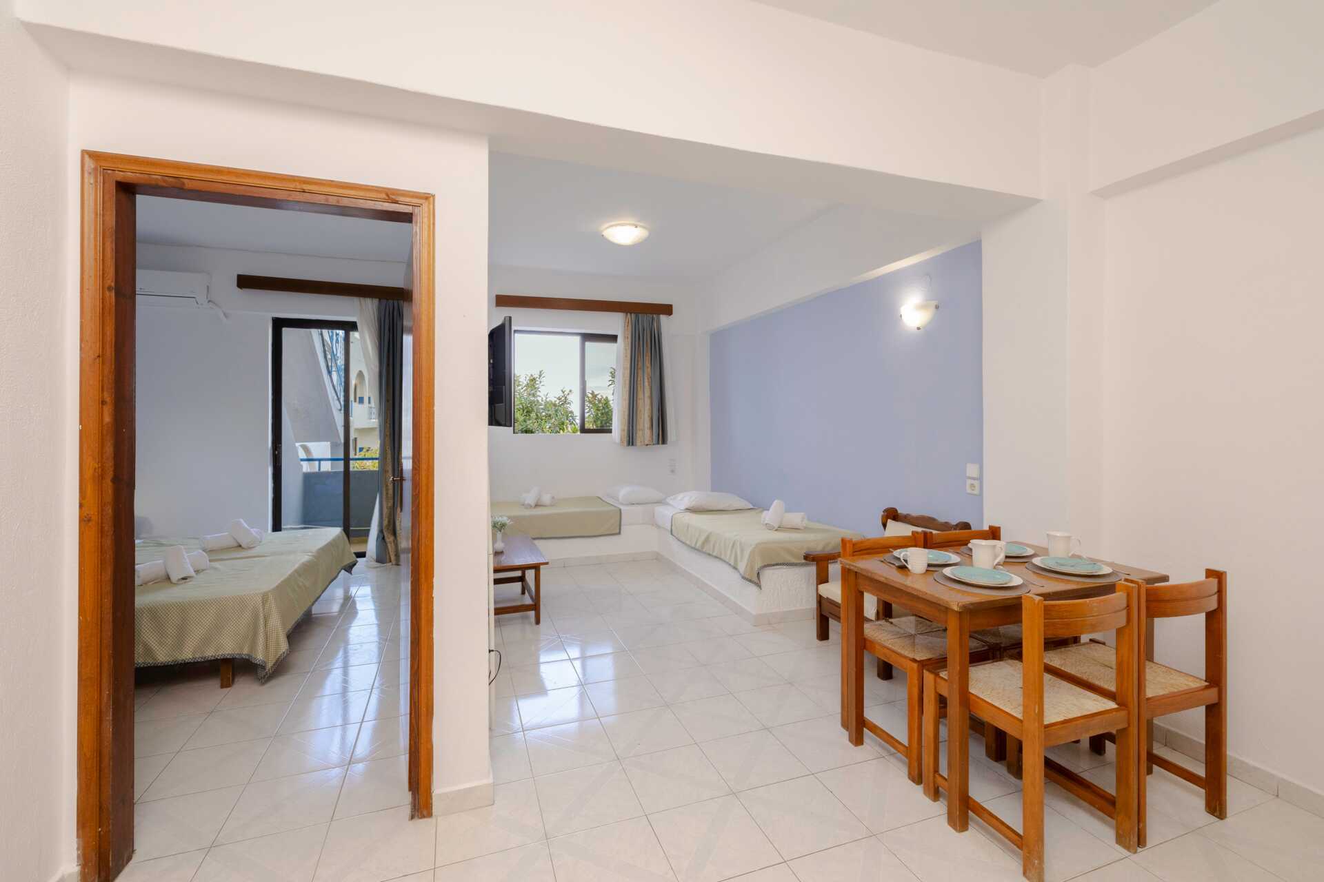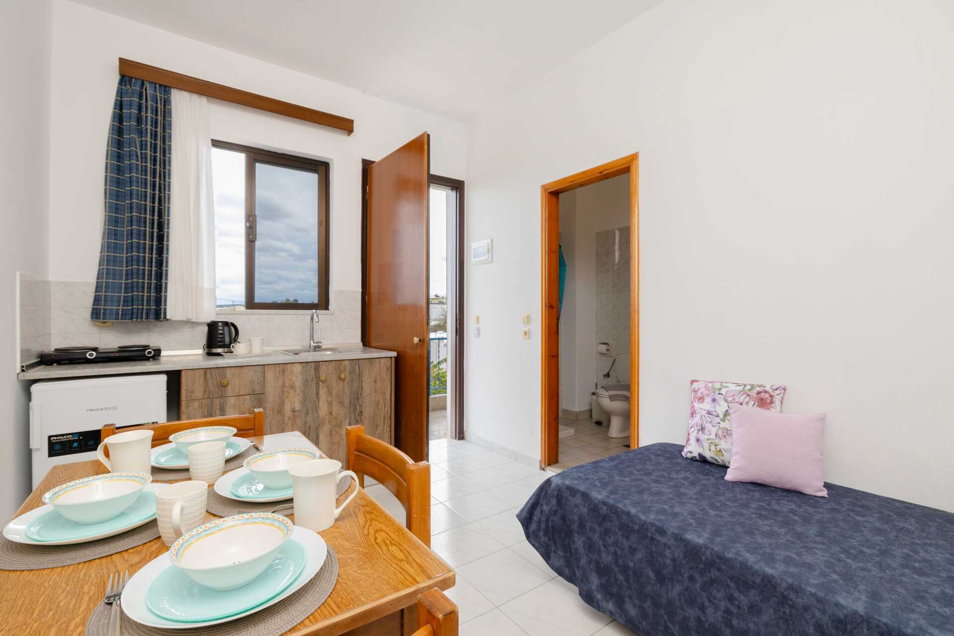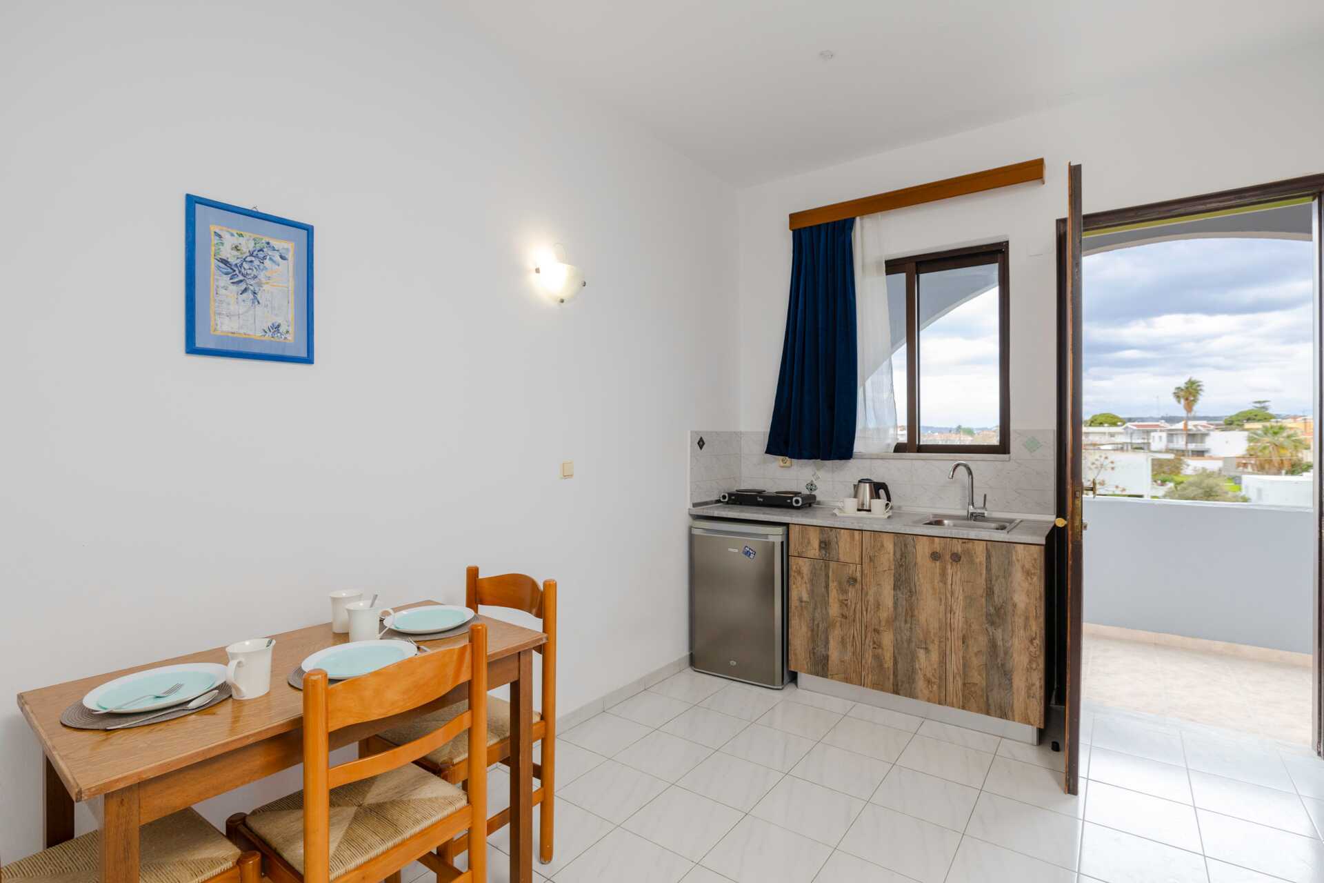 Yksiö parvekkeella tai maaparvekkeella. Yhdistetty makuuhuone ja minikeittiö. Kaksi yhden hengen sänkyä. Lisävuodemahdollisuus yhden hengen vuoteesta tai vuodesohvasta. Minijääkaappi, jossa on jääkaappi, keittolevyt, vedenkeitin ja peruskeittiövälineet. Maksuton wifi ja tallelokero. Ilmastointi lisämaksusta. Tv paikallisilla kanavilla. Suihku ja wc. Siivous 6 krt/viikko.