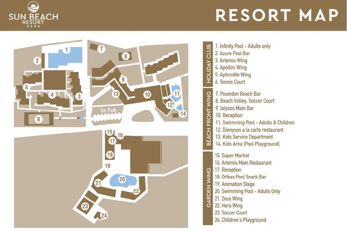 Maksuton wifi koko hotellissa. Jos haluat tutustua Rodokseen autolla, löytyy hotellilta myös pysäköintimahdollisuus. Sun Beach Resort sijaitsee Ialyssoksen sydämessä, jossa on runsaasti kauppoja, paikallisia pubeja ja ravintoloita. Käy tutustumassa muinaisiin raunioihin ja Rodoksen historiaan. Jos haluat vierailla vilkkaassa ja kauniissa Rodoksen kaupungissa, lyhyen kävelymatkan päässä hotellista on linja-autoasema, jolta bussit Rodoksen kaupunkiin lähtevät säännöllisesti. Hotelli koostuu kahdesta rakennuksesta, päärakennus - Beach Front -siipi ja sivurakennus nimeltä Garden wing. Lentoliikenne Rodoksen lentokentältä voidaan kokea häiritseväksi.