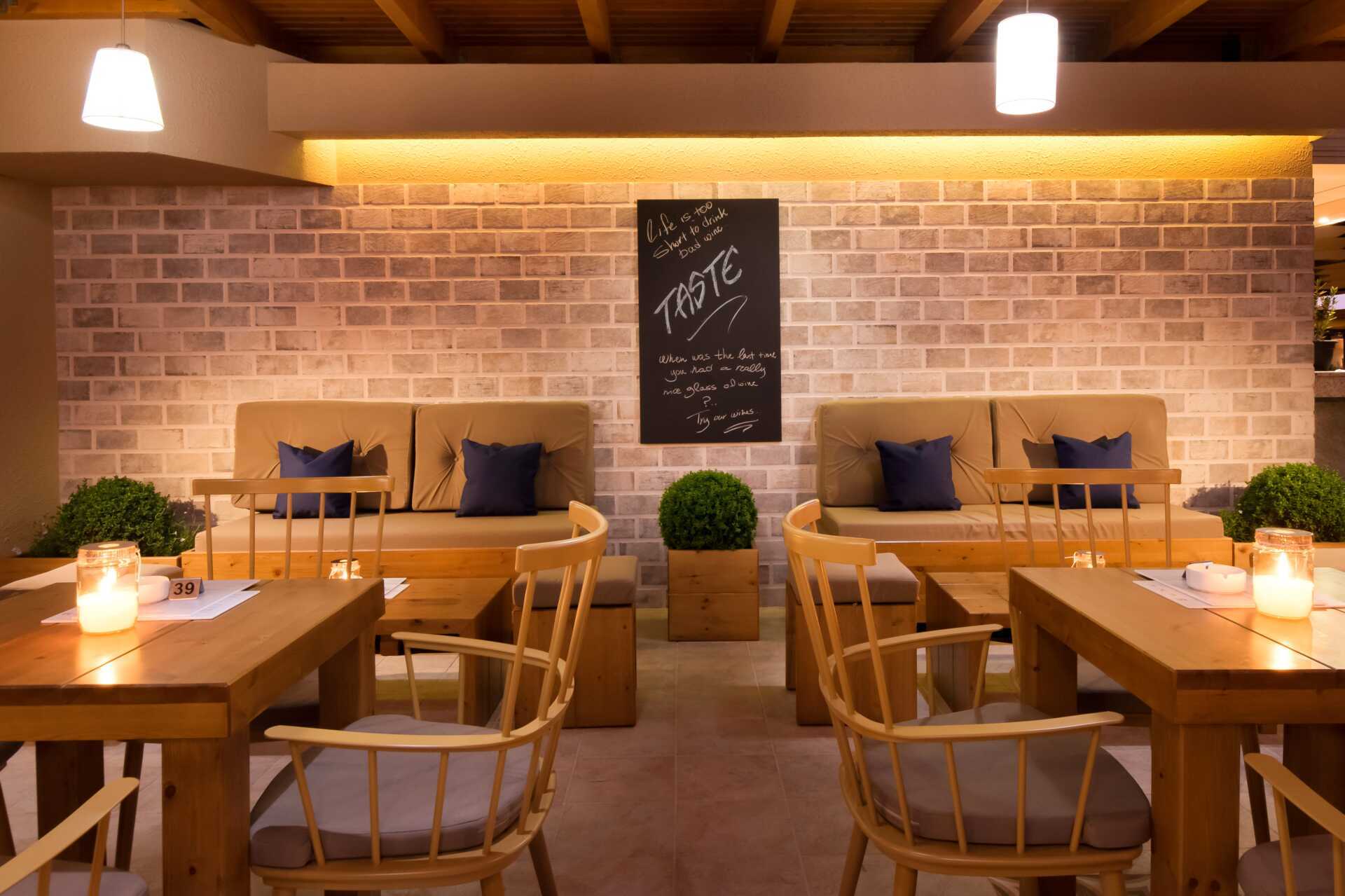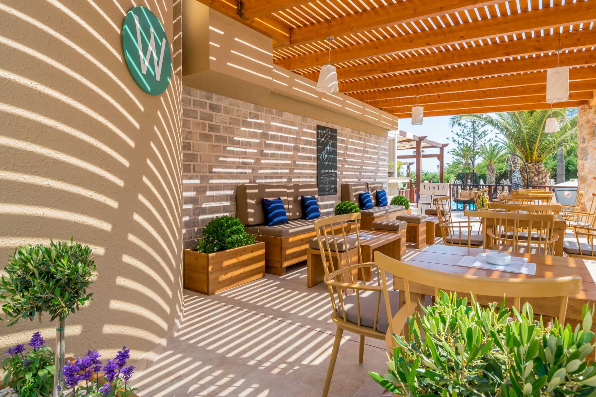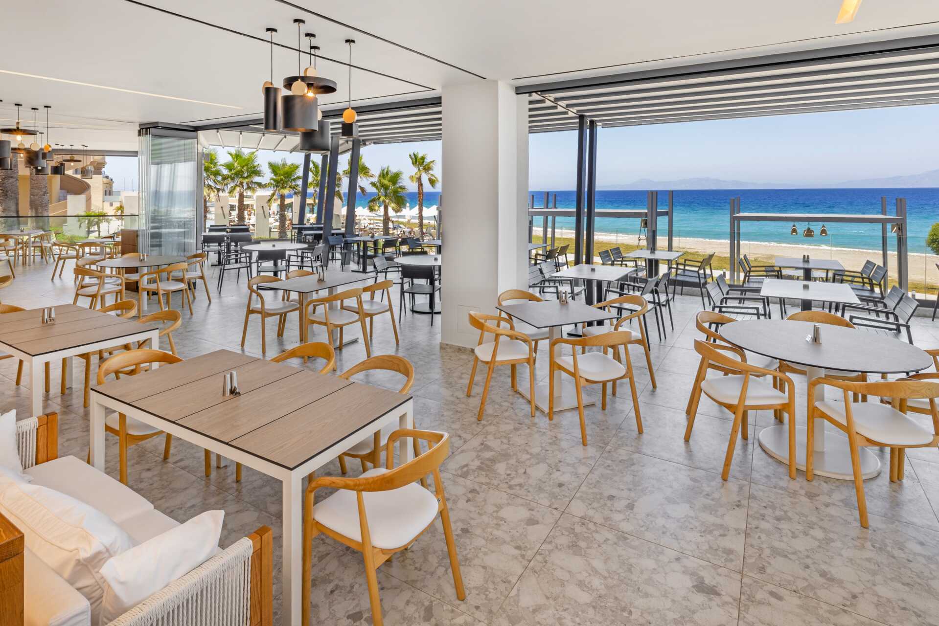 Hotellin pääravintola Artemiksessa tarjoillaan aamiaista ja päivällistä rennossa tunnelmassa. Toisinaan järjestetään teemailtoja, kuten street food, kreikkalaiset grilliherkut, italia sekä monia muita. Siisti pukeutuminen vaaditaan tähän ravintolaan. À la carte -ravintola Dionysos sijaitsee allasalueen päädyssä ja täällä tarjoillaan aamiaista, lounasta ja illallista. Toisinaan järjestetään teemailtoja, joissa iltaohjelmaa. Kahvi- ja viinibaari Taste tarjoilee paikallisia viinejä ja kahvia sekä hyvää italialaista kahvia.
