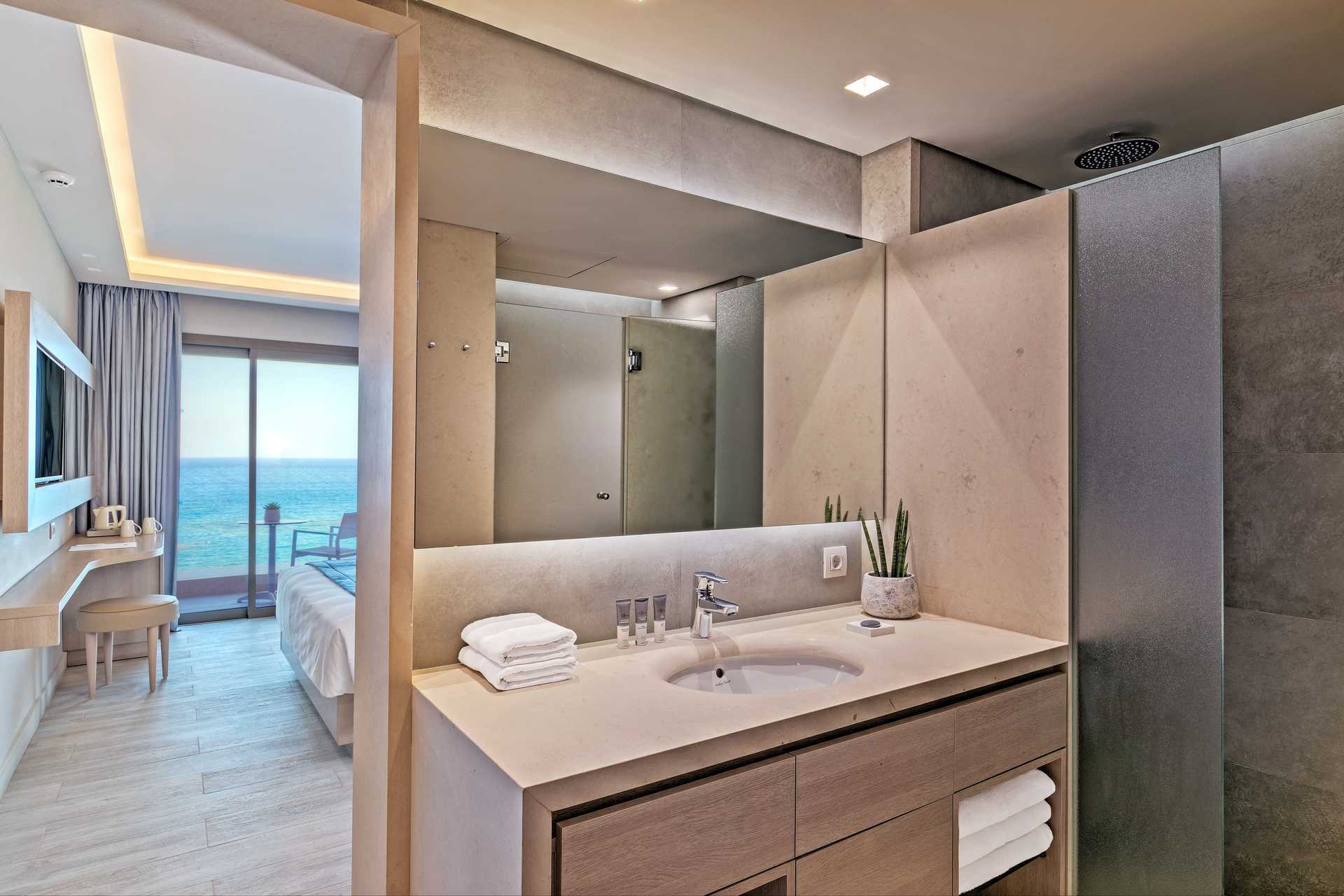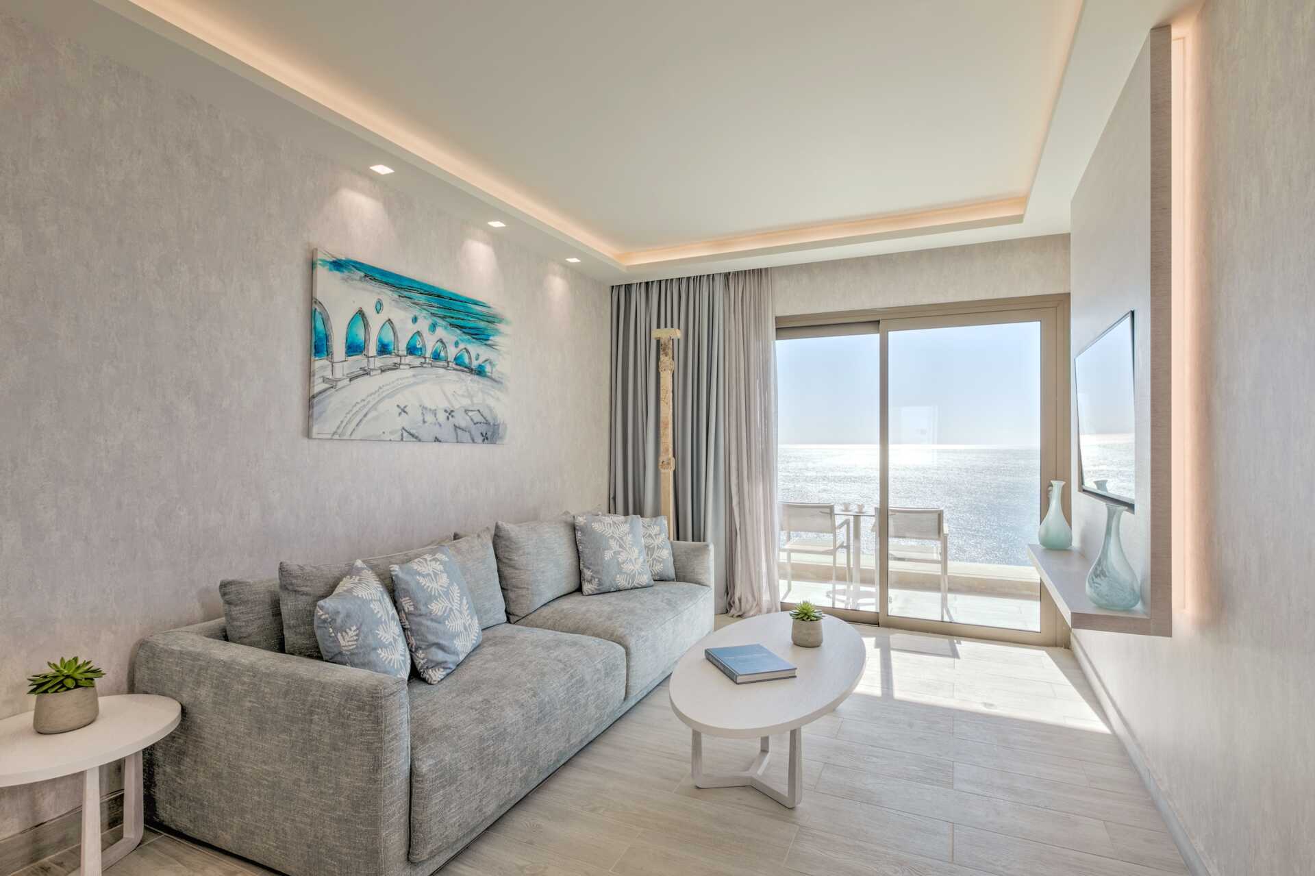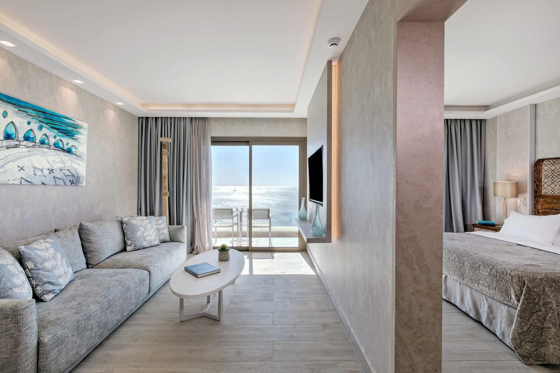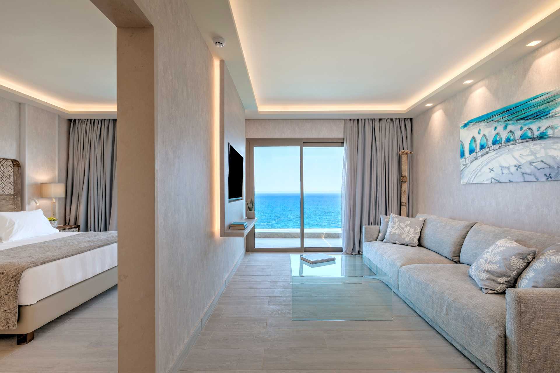 Sviittejä parvekkeella tai terassilla ja merinäköala. Sviitti koostuu makuuhuoneesta ja olohuoneesta. Parivuode. Jääkaappi sekä kahvin ja teen keittomahdollisuus. Nespresso-keitin ja maksuttomat kapselit. Tv satelliittikanavilla. Walk-in closet. Maksuton wifi, ilmastointi ja tallelokero. Hiustenkuivain. Amme, suihku ja wc. Kylpytakki ja tohvelit. Siivous 7 krt/viikko.