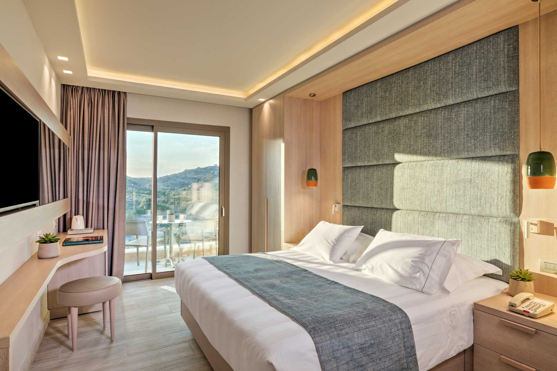 Deluxe-huone, jossa on parveke tai terassi ja merinäköala. Parivuode. Lisävuodemahdollisuus vuodesohvasta. Maksuton wifi, ilmastointi ja tallelokero. Pieni jääkaappi. Vedenkeitin, kahvia ja teetä. Tv kansainvälisillä kanavilla. Kylpytakit ja tossut. Hiustenkuivain. Amme ja wc. Siivous 7 krt/viikko.
