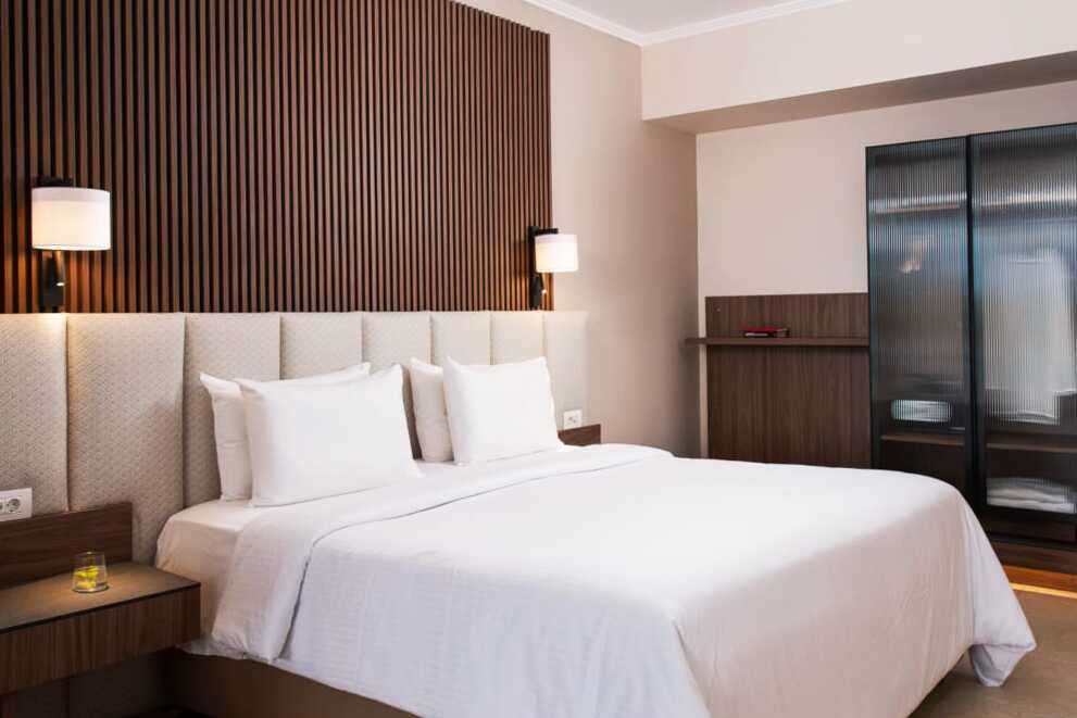 Juniorsviitti parvekkeella ja merinäköalalla. Kaksi yhden hengen sänkyä. Lisävuodemahdollisuus vuodesohvasta. Maksuton wifi, ilmastointi ja tallelokero. Jääkaappi. Vedenkeitin, kahvia ja teetä. Tv kansainvälisillä kanavilla. Hiustenkuivain. Suihku ja wc. Siivous 7 krt/viikko.