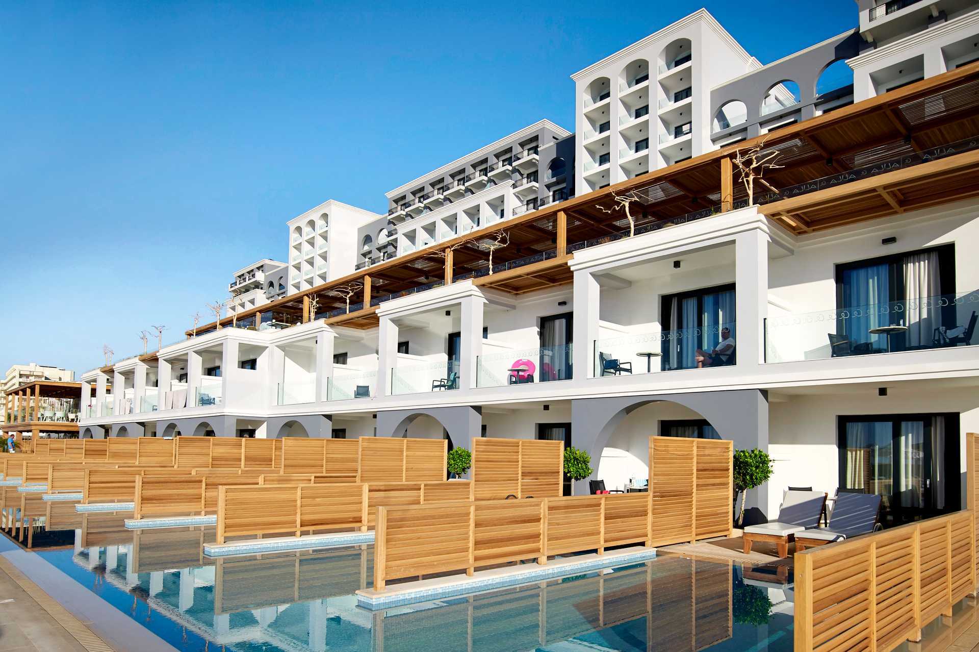 Perhehuoneita, joissa on ulkotila omalla altaalla ja rajoitettu merinäköala. Perhehuoneet koostuvat makuuhuoneesta, jossa on parivuode tai kaksi yhden hengen vuodetta, sekä olohuoneesta, jossa on lisävuodemahdollisuus vuodesohvasta. Huoneet voidaan jakaa himmeillä lasiovilla. Ilmastointi kahdessa erillisessä yksikössä, joita voidaan käyttää, kun huone jaetaan. Tallelokero ja wifi sisältyvät hintaan. Minibaari sisältyy hintaan - täytetään päivittäin. Vedenkeitin, kahvia ja teetä. Nespresso-kahvinkeitin - kapselit mukana ja täytetään päivittäin. Tv kansainvälisillä kanavilla. Kylpytakit ja tossut. Hiustenkuivain. Kylpyhuoneessa kylpyamme tai suihku ja wc. Siivous 7 krt/viikko. Alle 2-vuotiaat lapset lasketaan lisävuoteella majoittuviksi henkilöiksi.