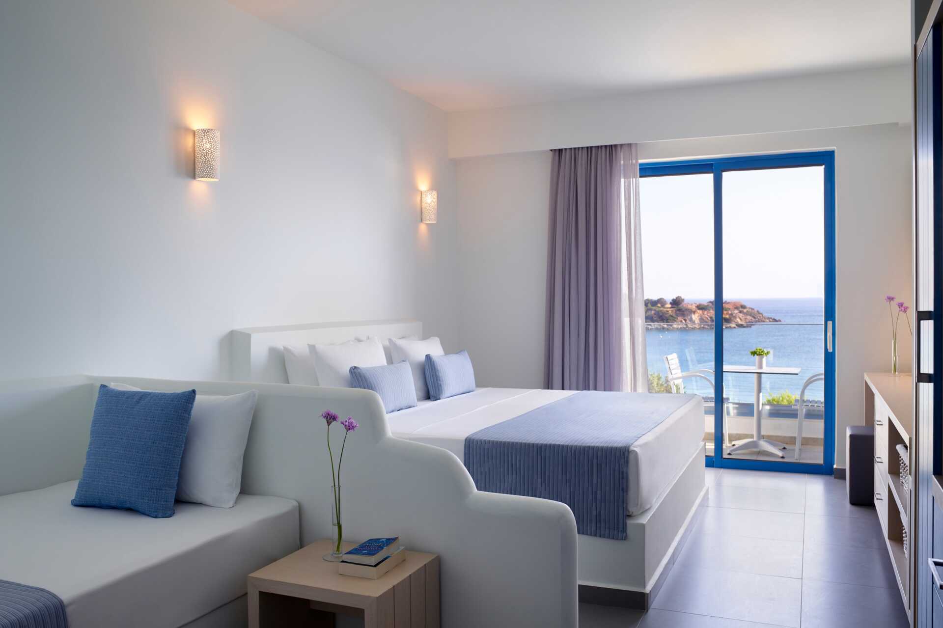 Great mid price hotel with probably the most friendly staff we've ever had in a holiday hotel ( apart from a very miserable girl serving at the pool bar ). Reception really helpful with anything you need, including a room to shower and change as we had a late flight back. The beach immediately below the hotel had crystal clear water but the guy was charging €25 for 2 beds and umbrella. The guy next to him was charging the same for 2 beds , no umbrella! And further down the beach the beds were €30+ . Do yourself a favour and walk round to Kavos beach further round the bay to the left ( you can go over the rocks and through the trees or its easy to actually walk along the edge of the sea - it doesn't get deeper than mid thigh) . The fabulous friendly and genuine greek guy was charging €10 for 2 beds with mattresses, umbrella and 2 bottles of water. He also has the taverna above the beach Amfilios which was open from 12 until around 10.30pm and was great authentic Greek fayre. As for the hotel room , we were lucky enough to be given a 2 bedroom apartment for the two of us and more storage than we've ever had anywhere including a full size ironing board and iron. My husband had been quite ill last year and we had to wait until he had finished all his treatment before we could finally get away on holiday and the hotel was nice and chilled out, although there seemed to be a lot of larger family groups arrive with lots of children in the 2nd week so we spent every day on the beach rather than by the pool. My one small criticism would be the towels are really small and barely fit around you. Otherwise its a great hotel and you can also use the facilities at the 2 sister hotels .