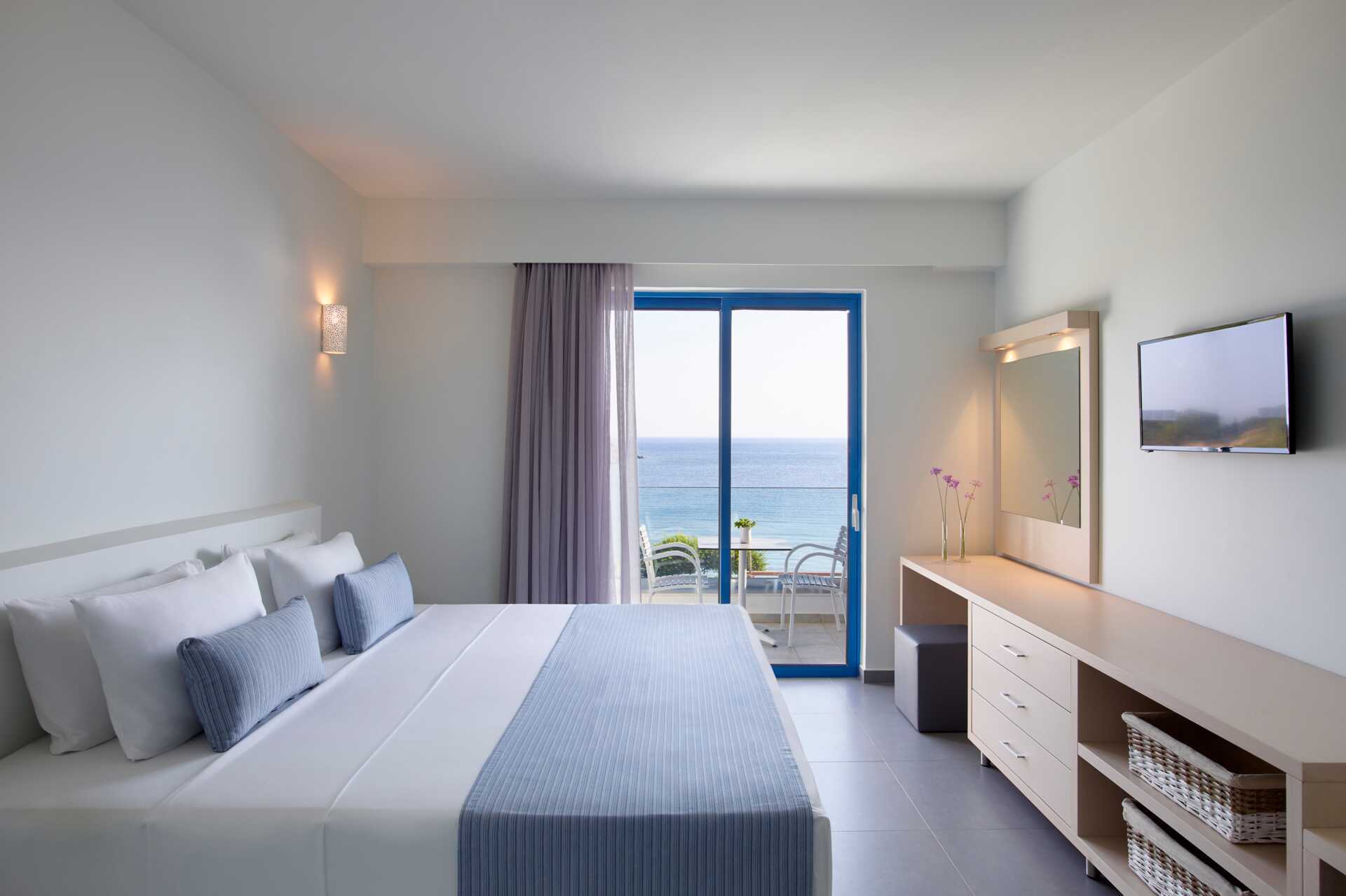 Kolmio parvekkeella tai terassilla. Kaksi makuuhuonetta sekä yhdistetty olohuone ja minikeittiö. Yksi makuuhuone parivuoteella ja yksi kahdella erillisvuoteella. Minikeittiö, jossa jääkaappi, keittolevyt, vedenkeitin, voileipägrilli, leivänpaahdin ja peruskeittiövälineet. Maksuton wifi ja ilmastointi. Tallelokero lisämaksusta. Tv kansainvälisillä kanavilla. Silitysrauta ja -lauta. Hiustenkuivain. Kylpyhuoneessa suihku ja wc. Siivous 6 krt/viikko.