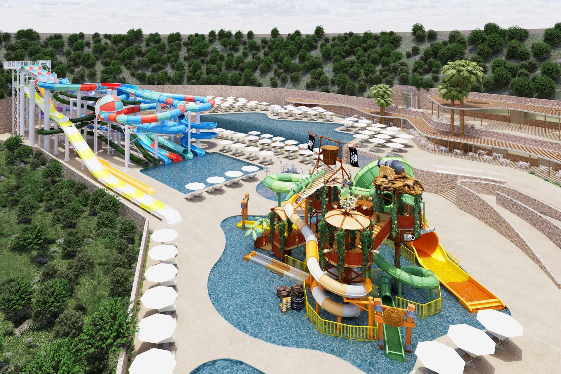 Vauhdikas vesipuisto, jossa on yksitoista vesiliukumäkeä, ja nuoremmille lapsille on matala uima-allas hauskoilla vesileikeillä. Jos haluat vain ottaa rennosti, voit rentoutua uima-altaalla, jossa on aurinkotuoleja ja -varjoja. Vesiliukumäissä on eri korkeusrajoitukset: seitsemän liukumäen vähimmäiskorkeus on 120 cm ja neljän lapsille tarkoitetun liukumäen vähimmäiskorkeus on 90 cm. Alueelle tulee myös buffetravintola, allasbaari ja à la carte -ravintola, jossa on tex-mex-ruokia. Vesipuiston kuvat ovat luonnoksia ja niitä päivitetään heti, kun Apollo saa todellisia kuvia hotellilta. Luonnokset voivat poiketa todellisuudesta.