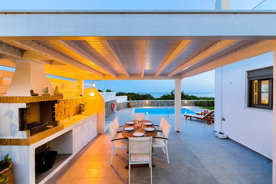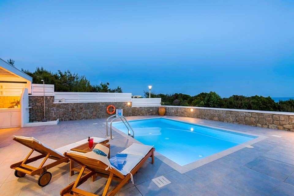 Tyylikkäässä huvilassa on tilaa jopa kuudelle hengelle, ja siinä on kolme kahden hengen makuuhuonetta, joissa kaikissa on taulutelevisio – yhdessä on oma kylpyhuone ja kahdessa oma parveke, jolta on näkymät puutarhaan ja uima-altaalle. Siellä on myös avoin olohuone, jossa on istuinalue, ruokailutila, taulutelevisio ja täysin varusteltu keittiö. Villa Sea La Viessä on aidattu puutarha, joka tarjoaa lisäyksityisyyttä, sekä grillausmahdollisuus ja ulkoistuinalueet ulkoilmaelämää varten. Yksityinen terassi, jolta on näkymät Välimerelle, on ihanteellinen paikka rentoutua Kreikan auringossa ja ihailla upeaa näköalaa. Sinulla on useita vaihtoehtoja auringonottoon – rentoudu kimaltelevan turkoosin uima-altaan äärellä tai kävele lyhyen kävelymatkan päässä polulla, joka johtaa koskemattomalle rannalle.