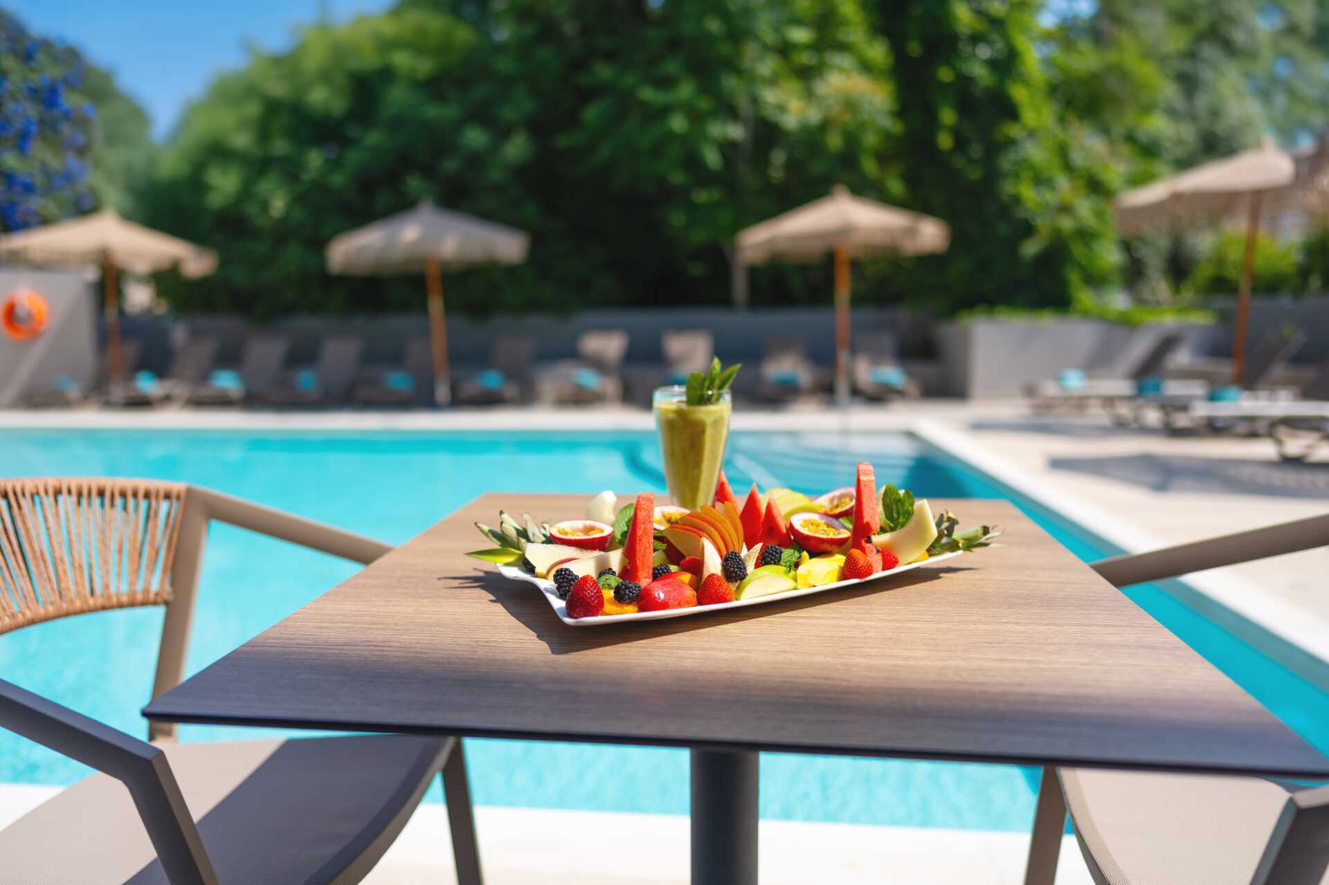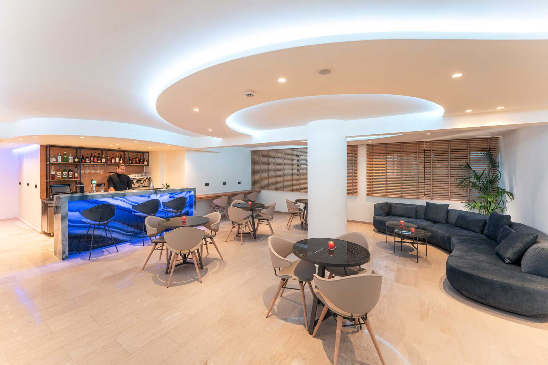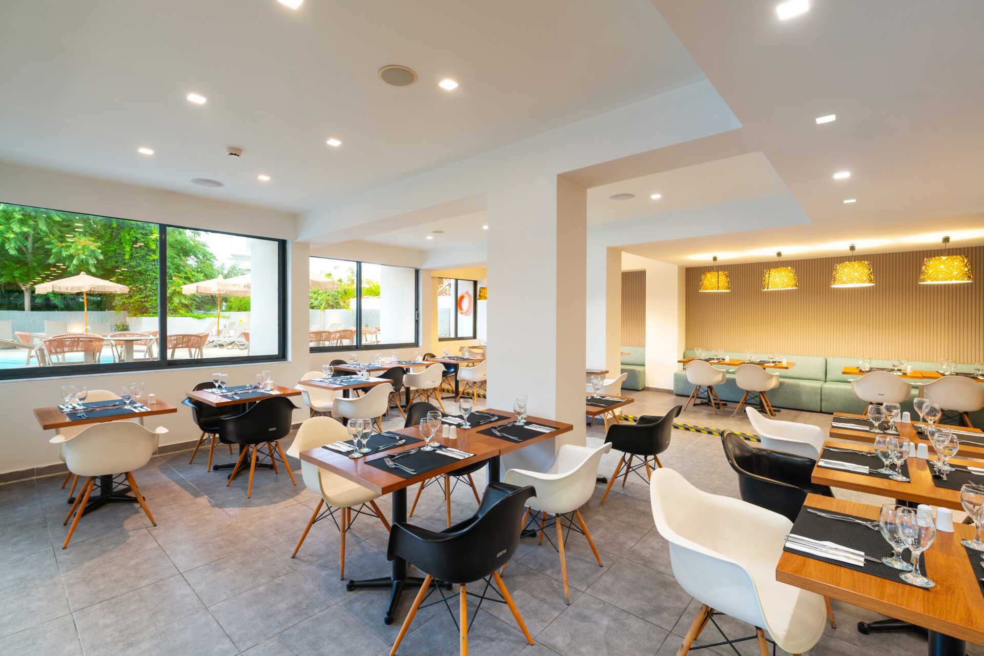 Hotellissa on hiljattain remontoitu ravintola, jossa on sekä sisä- että ulkotila. Ravintolassa tarjoillaan kreikkalaisia ja kansainvälisiä ruokia. Siellä voit nauttia aamiaisen ja illallisen buffetista. Lounas ja välipalat tarjoillaan baarissa. Siisti pukeutuminen.